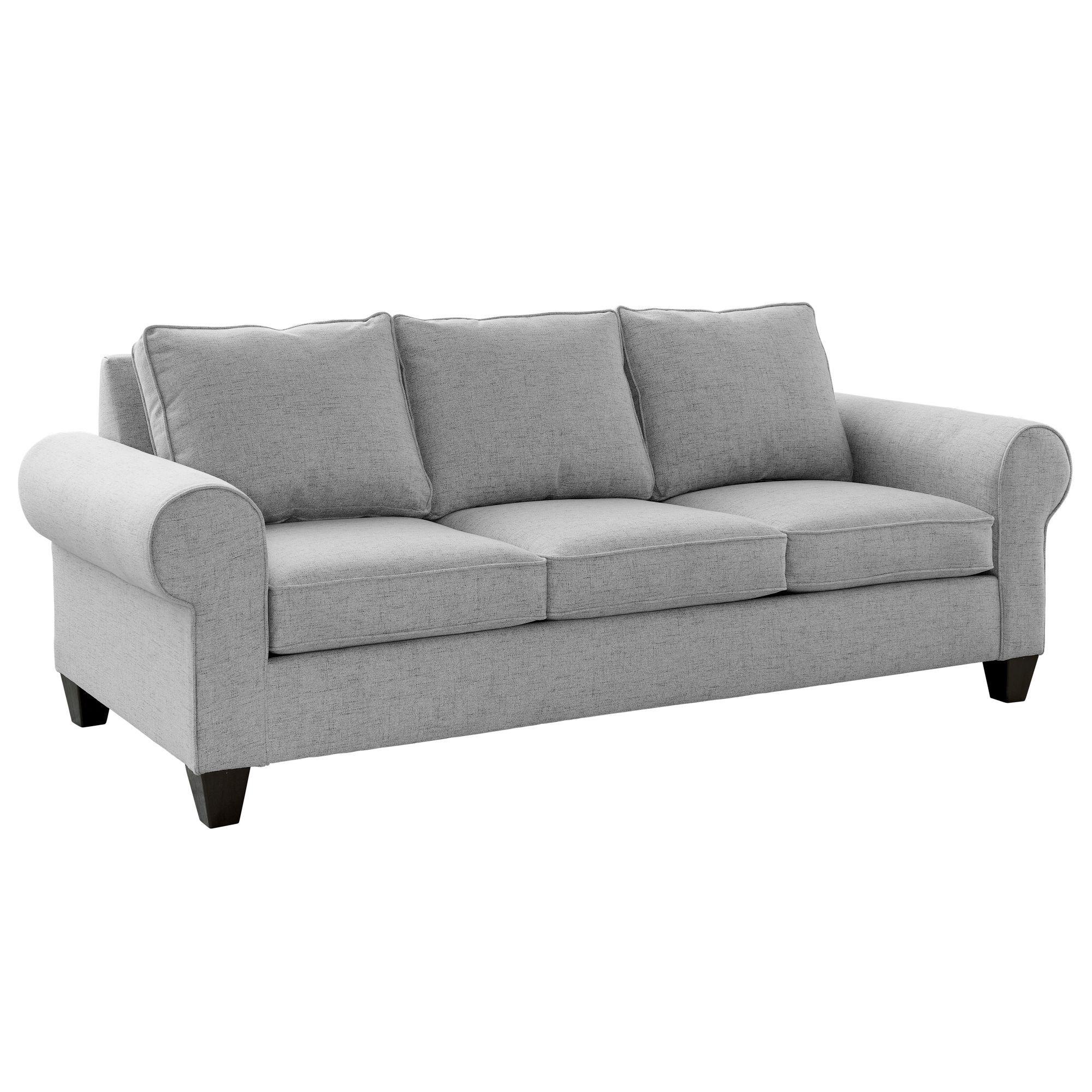 This sofa will provide your home with a beautiful spot to gather—perfect for lounging back with a book, snooze time, and everything in between. Complimented by rolled arms and dark wooden feet, this sofa provides comfort and neutral upholstery that will effortlessly blend into your living space. Reversible cushions extend the longevity and lets you hide any mishaps of everyday life. This sofa is sure to embrace company as they snuggle up and settle in any time, any day. 1 Year Limited Manufacturer Warranty