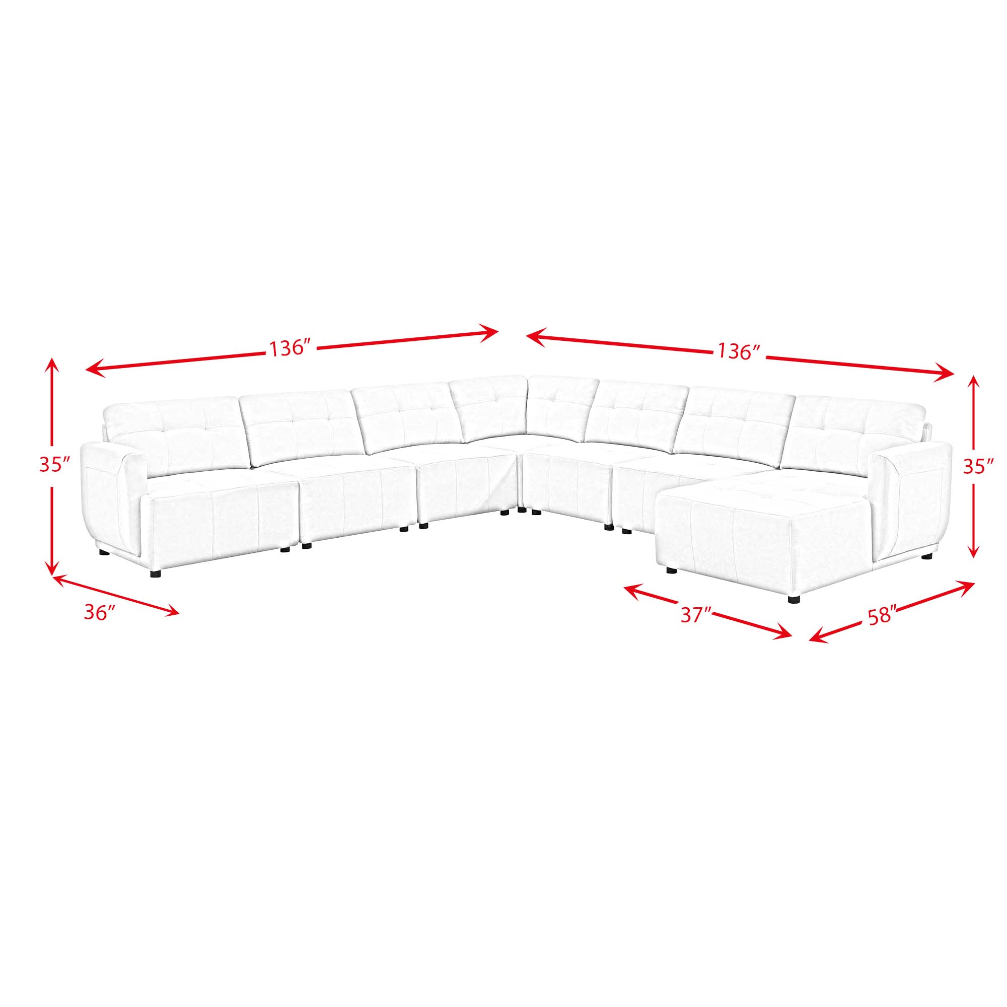 The Armani Modular Seating 7PC Sectional will look fantastic in your home! It is the complete entertaining space in one. Perfect for family movie night or hosting extended gatherings. Easily build your own sectional or leave the pieces freestanding. 1 Year Limited Manufacturer Warranty