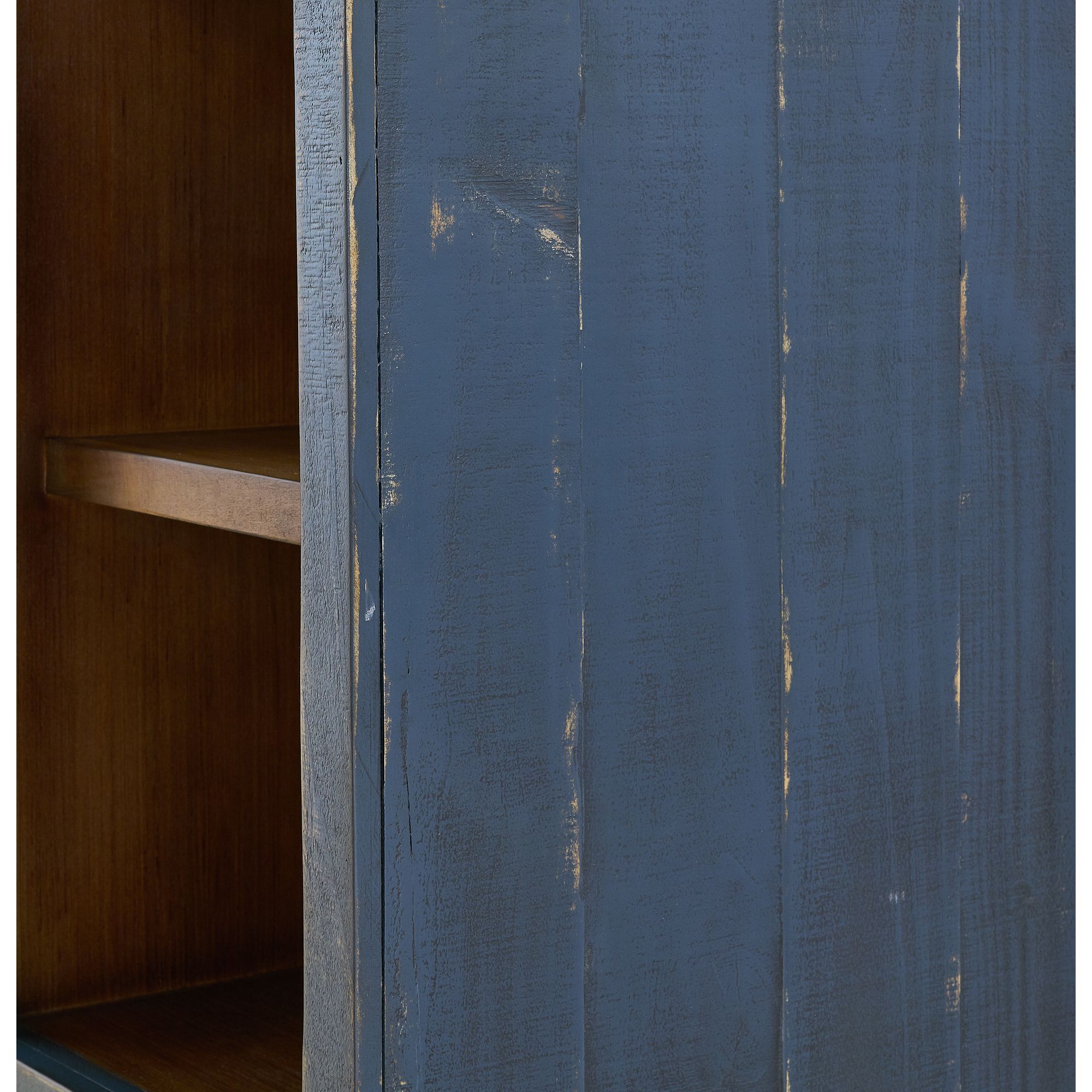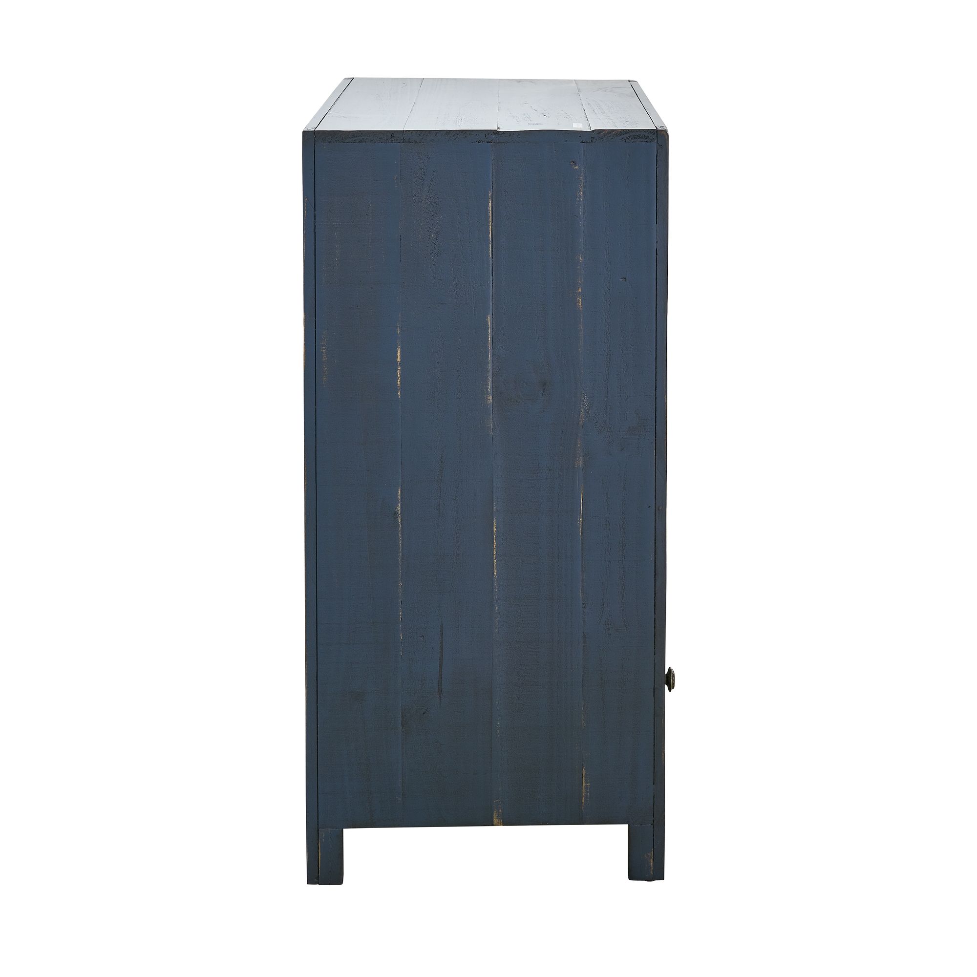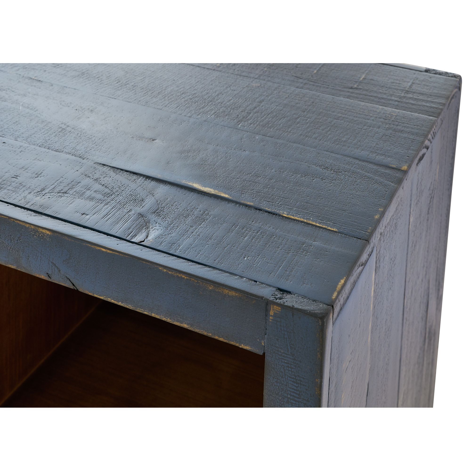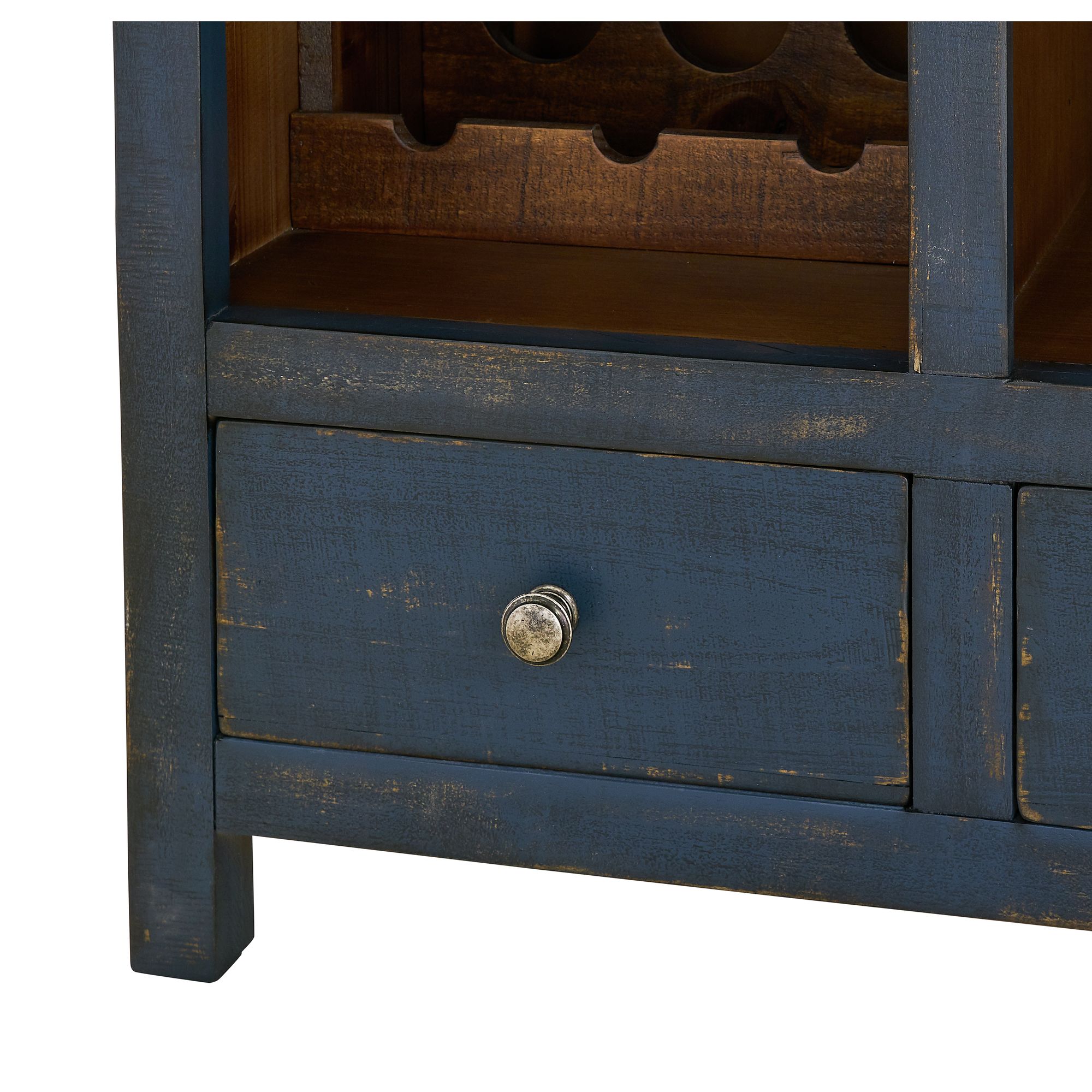 The August Wine Cabinet boasts farmhouse chic style perfect for storing away your favorite reds and whites. Crafted from solid brazilian pine, it features two shelves, wine rack, and two drawers. The adjustable shelves can be used for storing your favorite wine glasses and wine rack for storing wine bottles. Has light distressing for an aged appearance, this one of a kind wine cabinet will complement rustic/country theme homes. 1 Year Limited Manufacturer Warranty