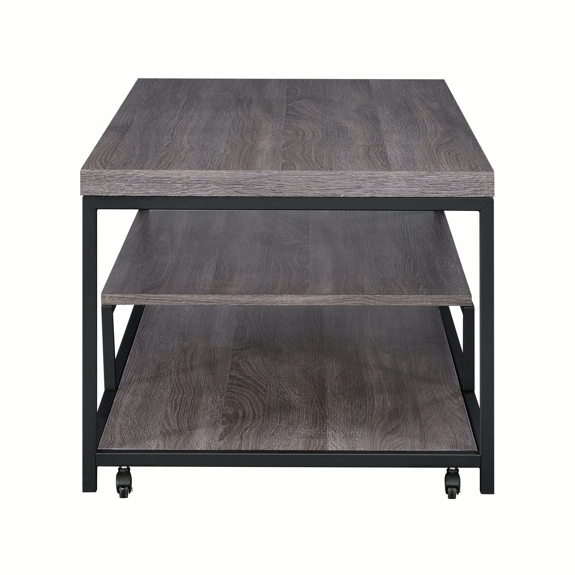 The Clemens 3PC Occasional Cocktail Table Set is the missing trio to your living room! This set comes with a coffee table and two end tables, making it the classic living room combination. The tables feature wooden tops and shelves and the base and legs are metal. There is plenty of shelf space to display your coffee table books and any decor you might have. The wood is finished in a weathered gray oak that will easily transition into any living space with any furnishings. Add this trio to your home today for an instant timeless look! 1 Year Limited Manufacturer Warranty