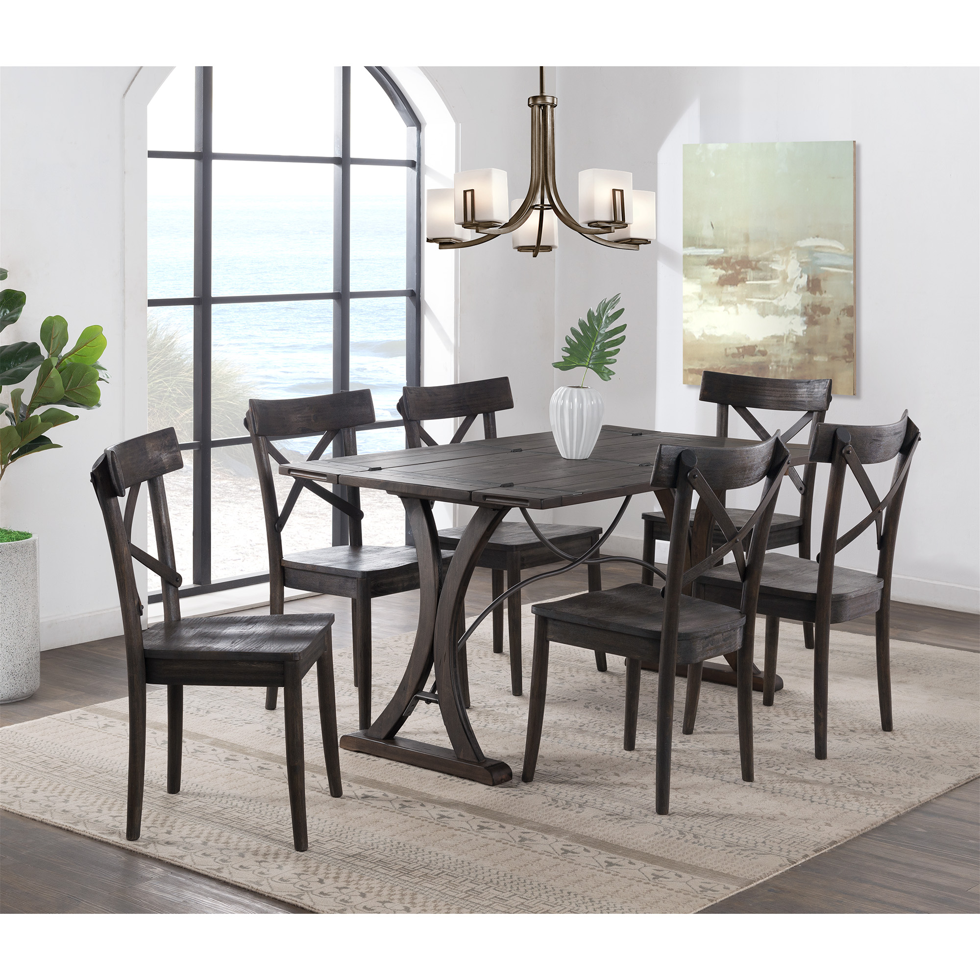 The New Bedford Folding Top Dining Table is a great addition to your home! This table features a folding table top with an intricate base. Once the table is completely folded out, use the support bars underneath for extra sturdiness. The table comes in a light beach finish, making it the perfect piece to fit with any decor. 1 Year Limited Manufacturer Warranty