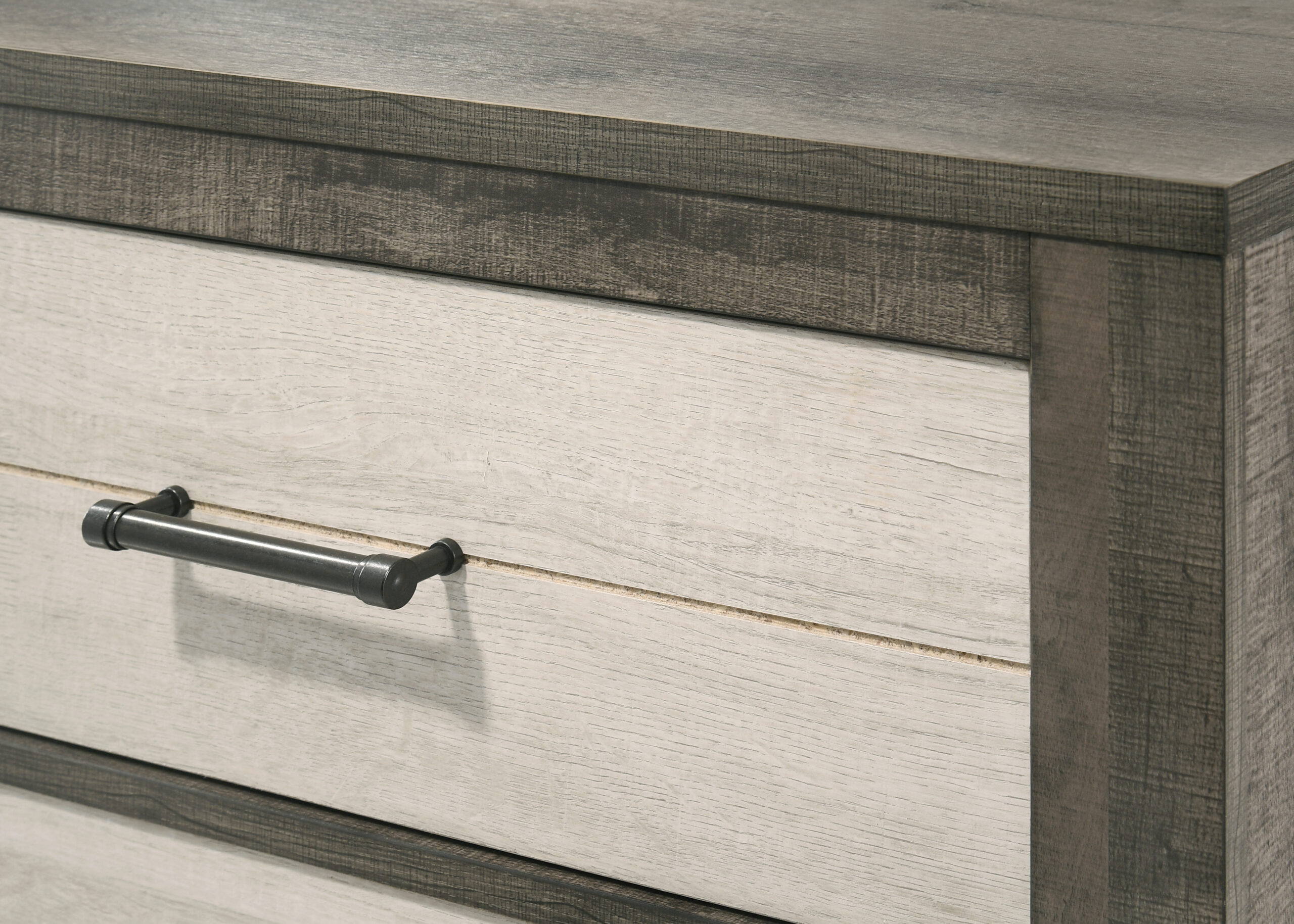 Create a serene and modern retreat with this thoughtfully designed bedroom collection, blending natural textures with contemporary charm. The centerpiece features a slatted headboard and footboard, highlighting a warm, wood-inspired finish that adds a sense of tranquility and organic appeal. The sleek, mid-century-inspired silhouette is carried through to the accompanying storage pieces, which boast clean lines, ample drawer space, and minimalist hardware for a streamlined look. Perfect for those seeking both style and functionality, this collection transforms your bedroom into a cozy, refreshing sanctuary with timeless aesthetic appeal.