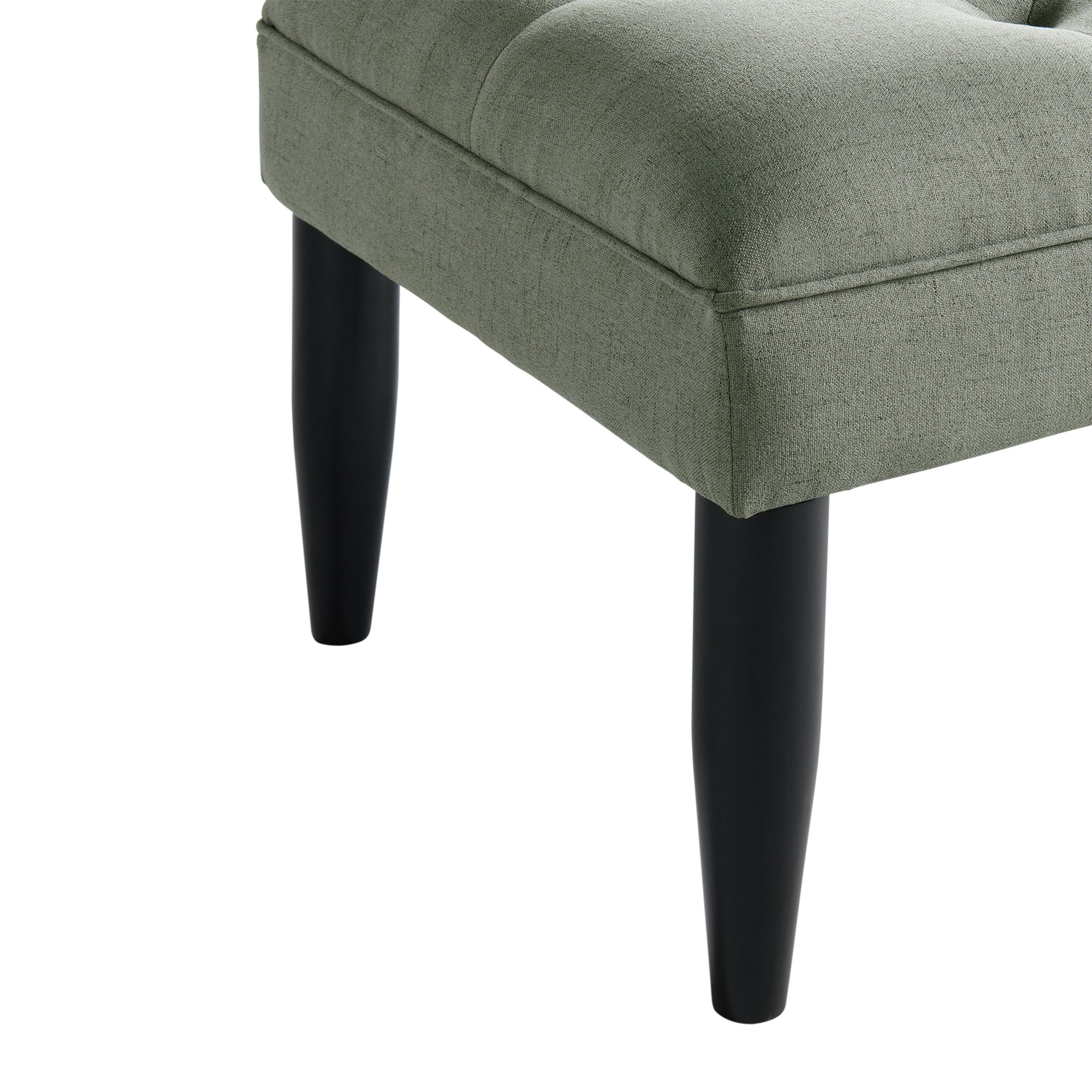 This lovely button-tufted Deegan bench will add instant charm and beauty to any setting. The bench features a nice cushion top that provides maximum comfort when seated. The bench is complimented by the espresso tapered legs, giving this an effortless chic look. 1 Year Limited Manufacturer Warranty