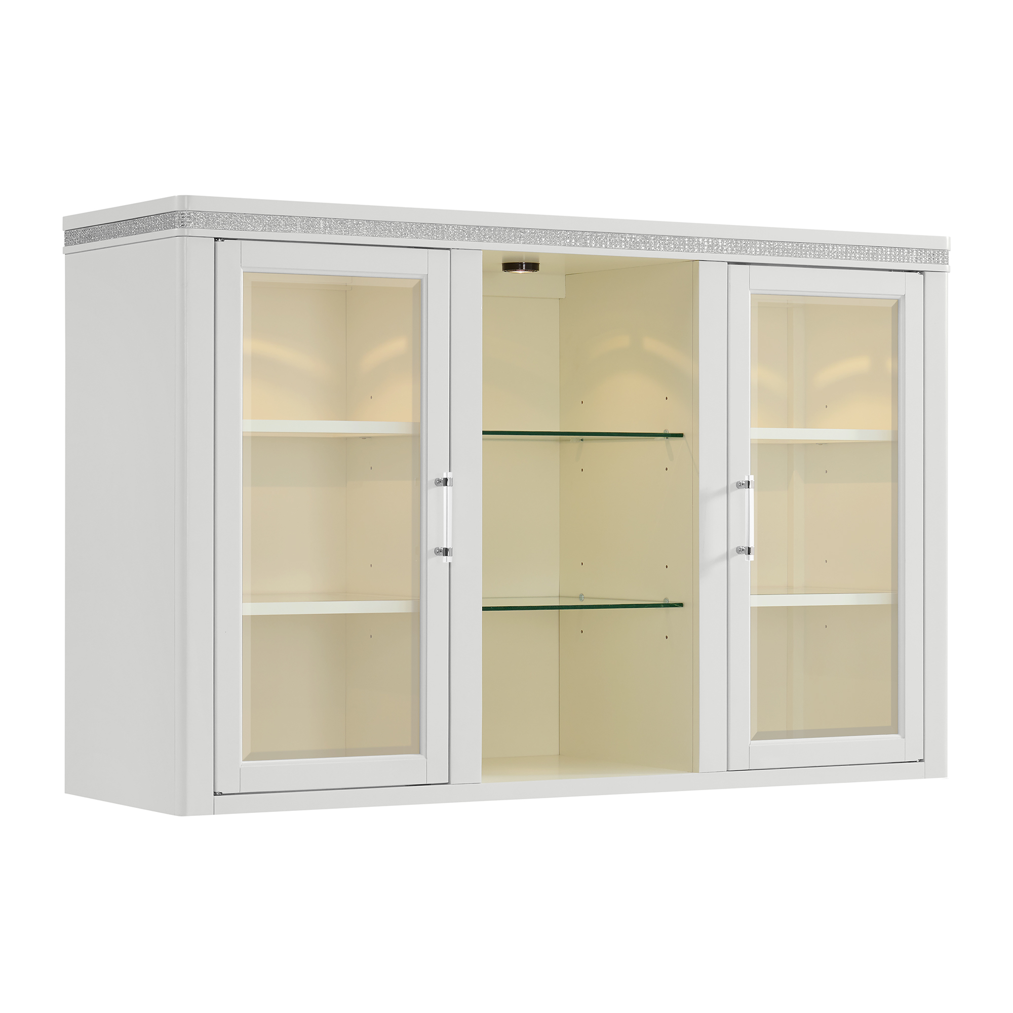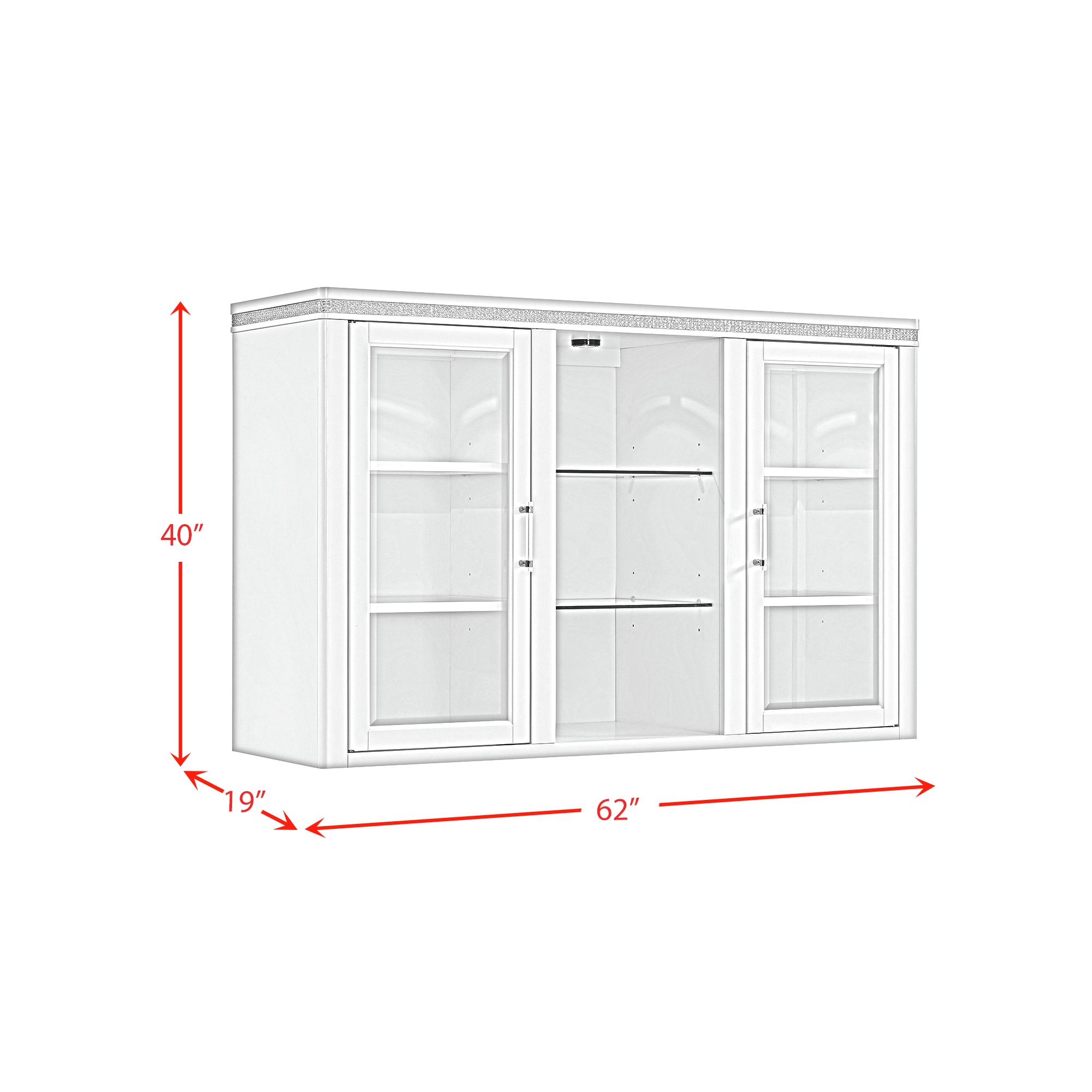 The Diedra Hutch exudes elegance and sophistication with its stunning white finish. It is a perfect dining piece for those who appreciate a modern and chic aesthetic. The glass shelves, diamond strip detail, and acrylic hardware add a touch of luxurious style and visual interest. Pair it with the Diedra Server to bring the perfect amount of functional storage with glamorous style to your home’s dining room.