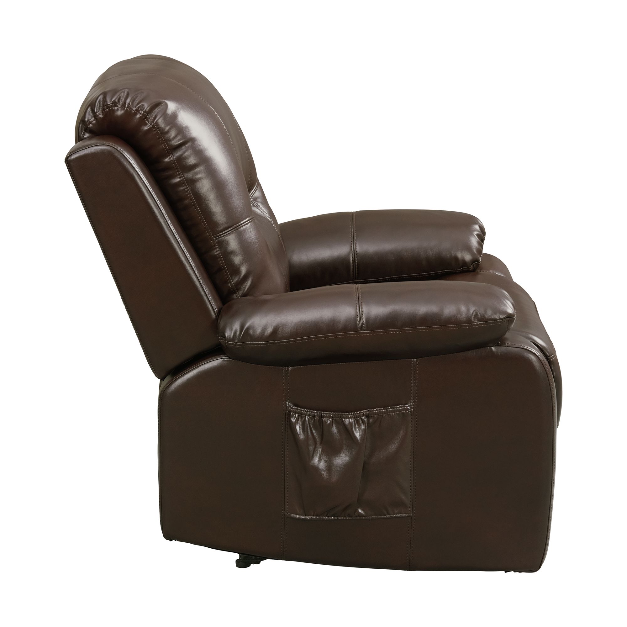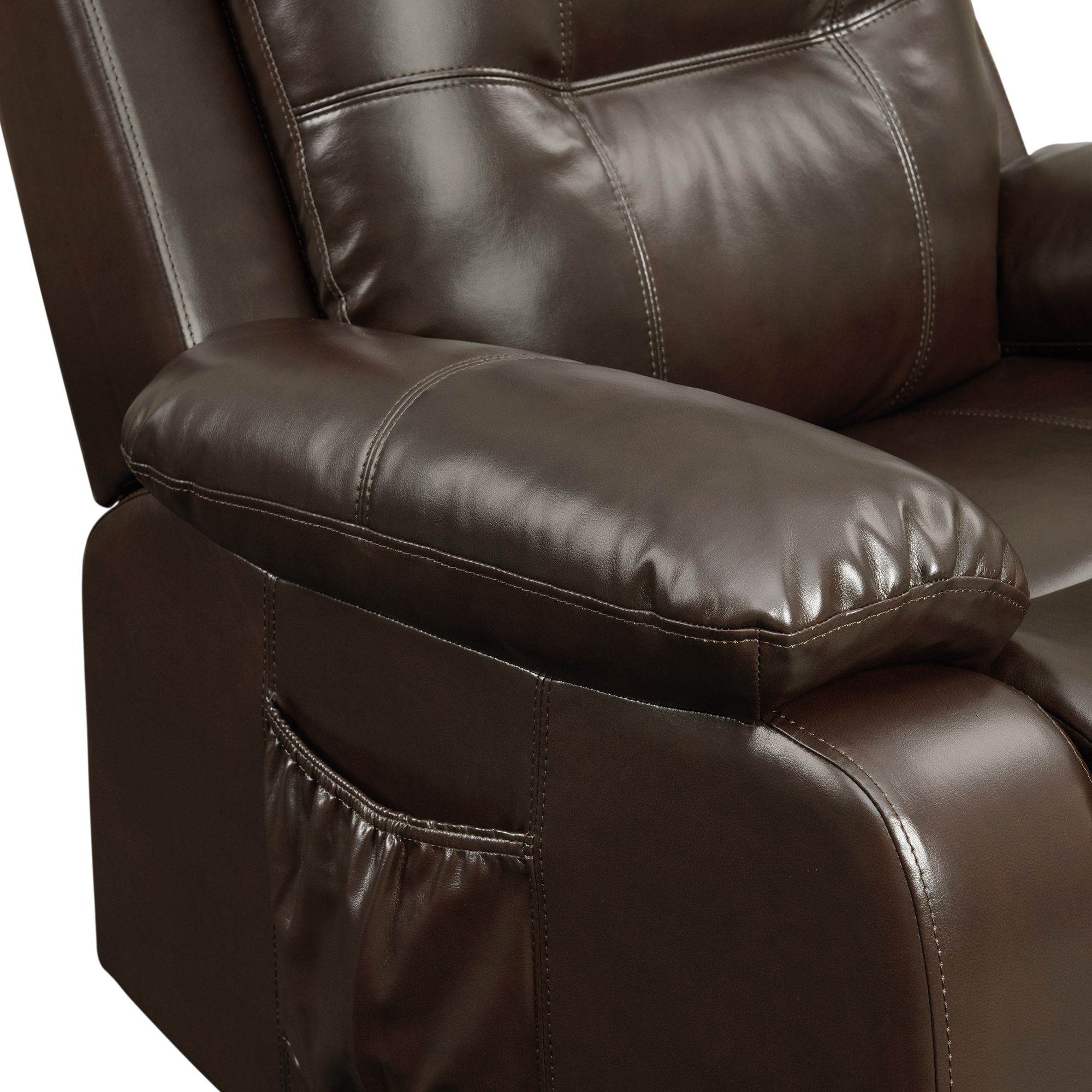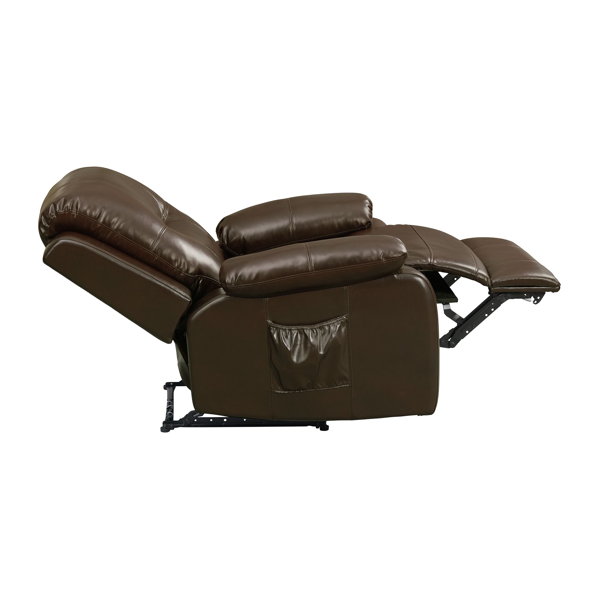 The Dylan Power Motion Lift Chair Recliner is the ultimate recliner for the man room or for the living room! This chair features power recline and power lift. In need of a little boost to get out of this super comfy recliner, simply press the button on the remote control and youre good to go! This recliner is dressed in a fashionable, faux leather fabric, give you the look of real leather but without the price of real leather. Add this power motion recliner to your home for ultimate relaxation. 1 Year Limited Manufacturer Warranty