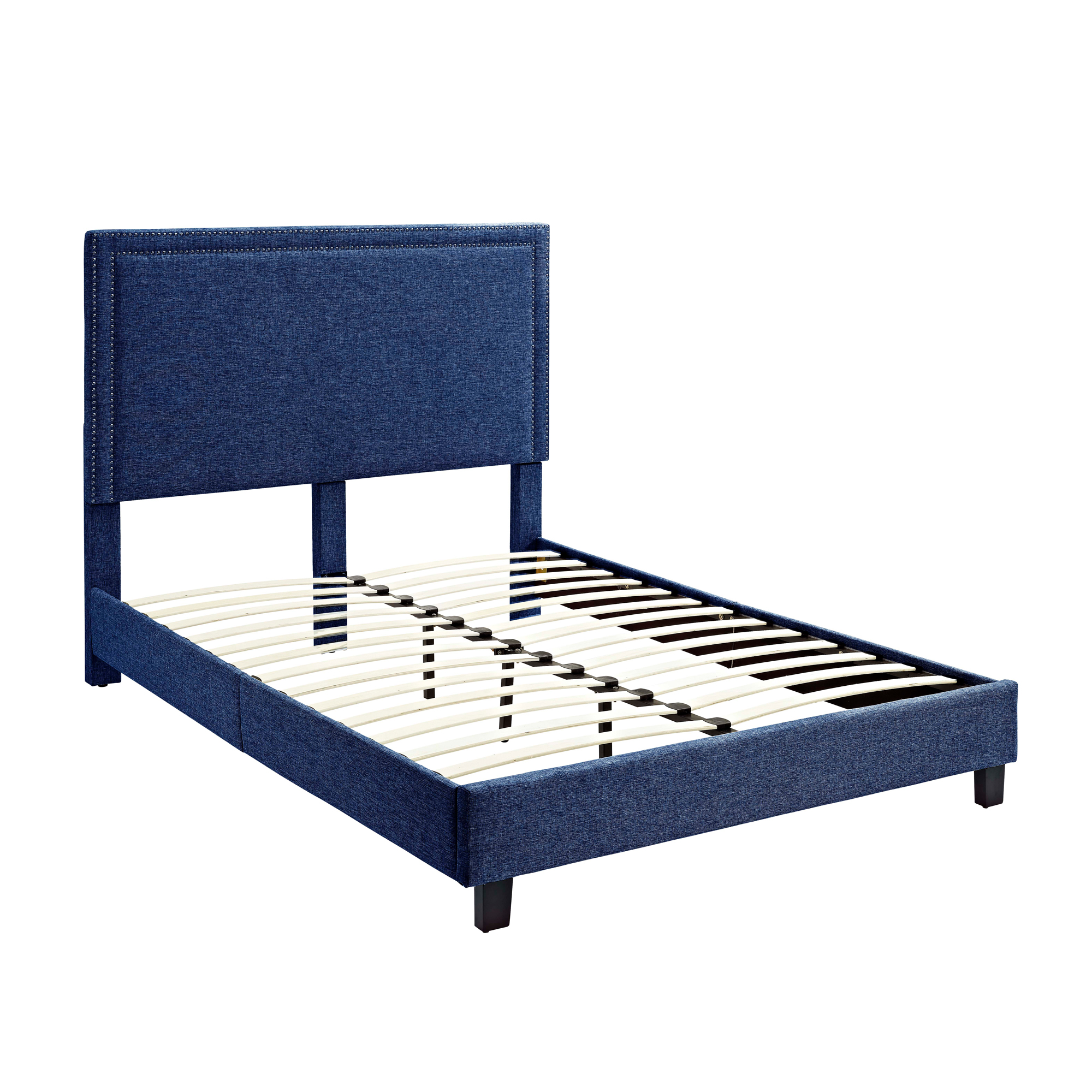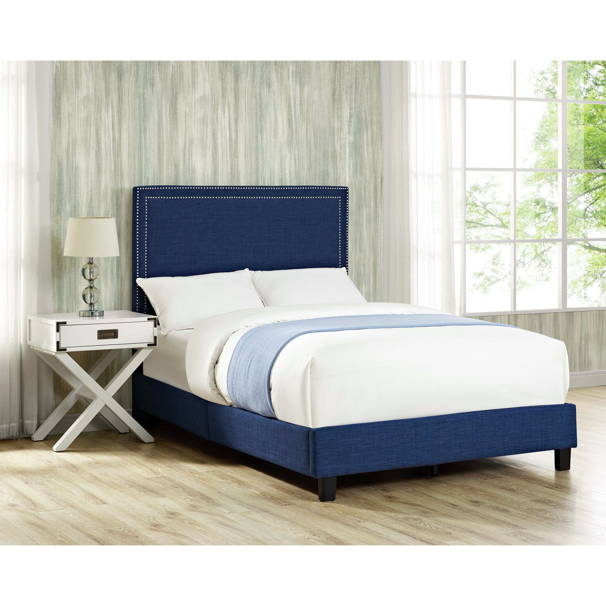 The Erica Upholstered Full Platform Bed will instantly give your bedroom the update youve been craving! This stylish upholstered bed features chrome nail head trim along the headboard. No box spring required here, thanks to the euro slats! The euro slats offer a flexible foundation for your mattress. Keep it classic or mix it up, by pairing the Erica Bed with the Erica Chair for a complete look! 1 Year Limited Manufacturer Warranty