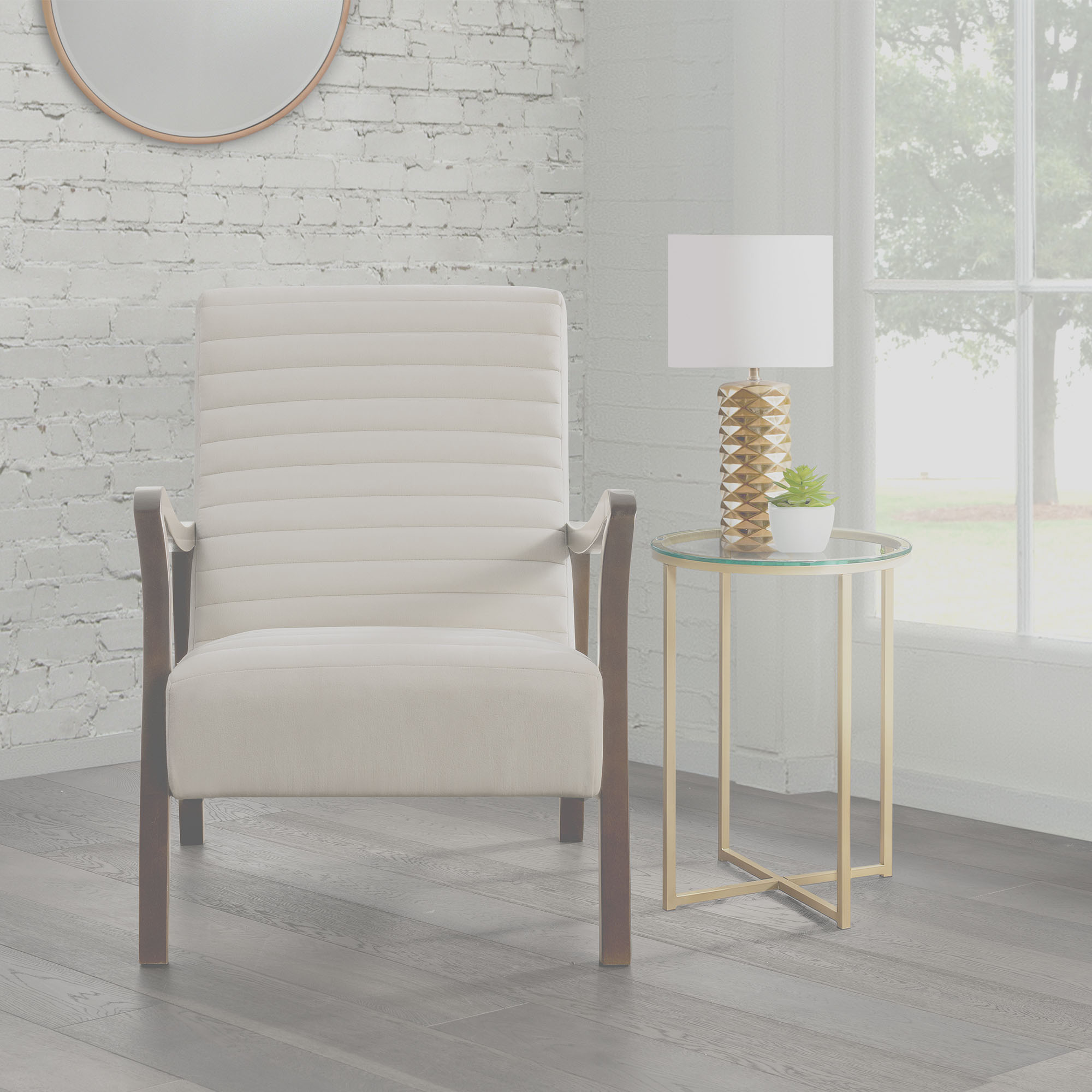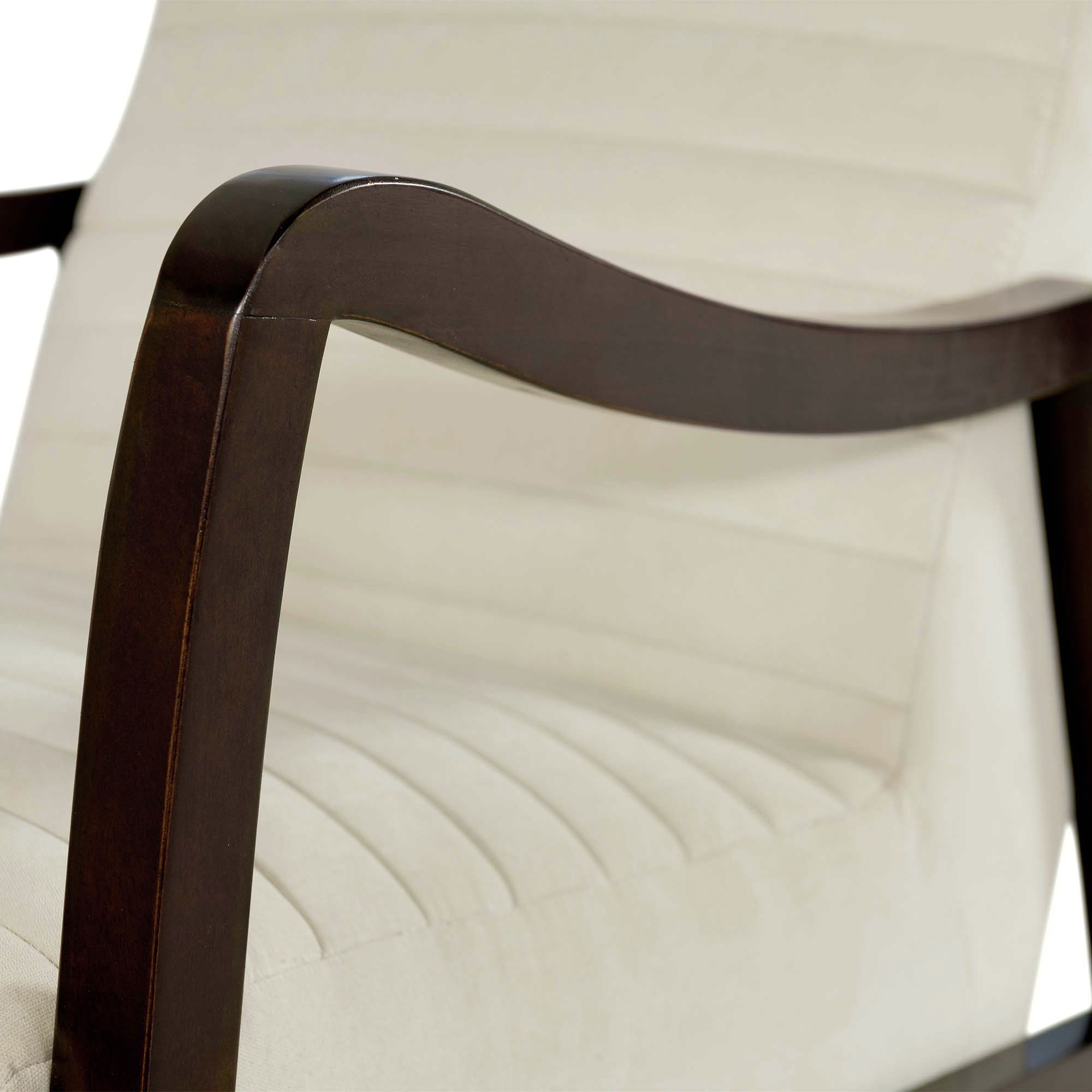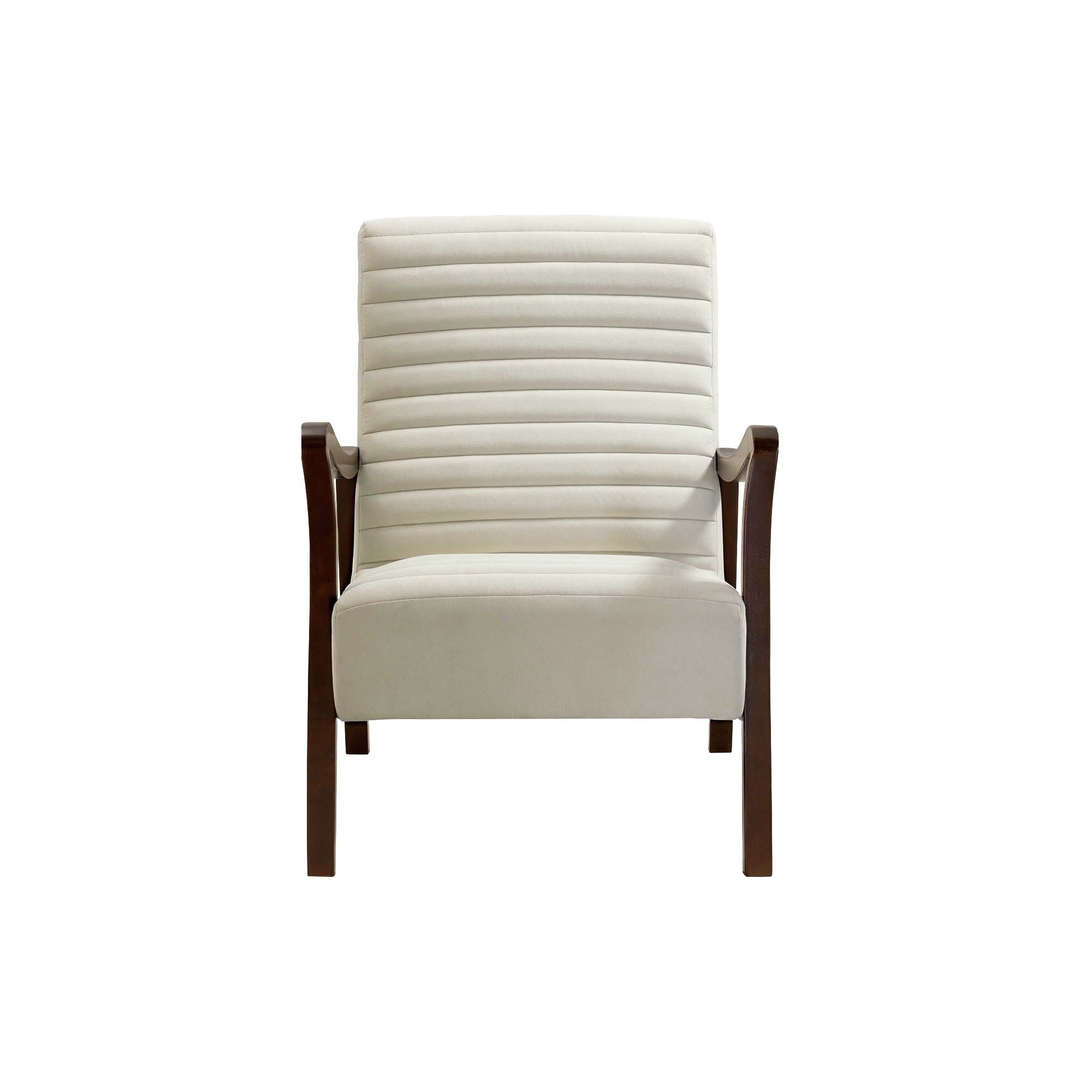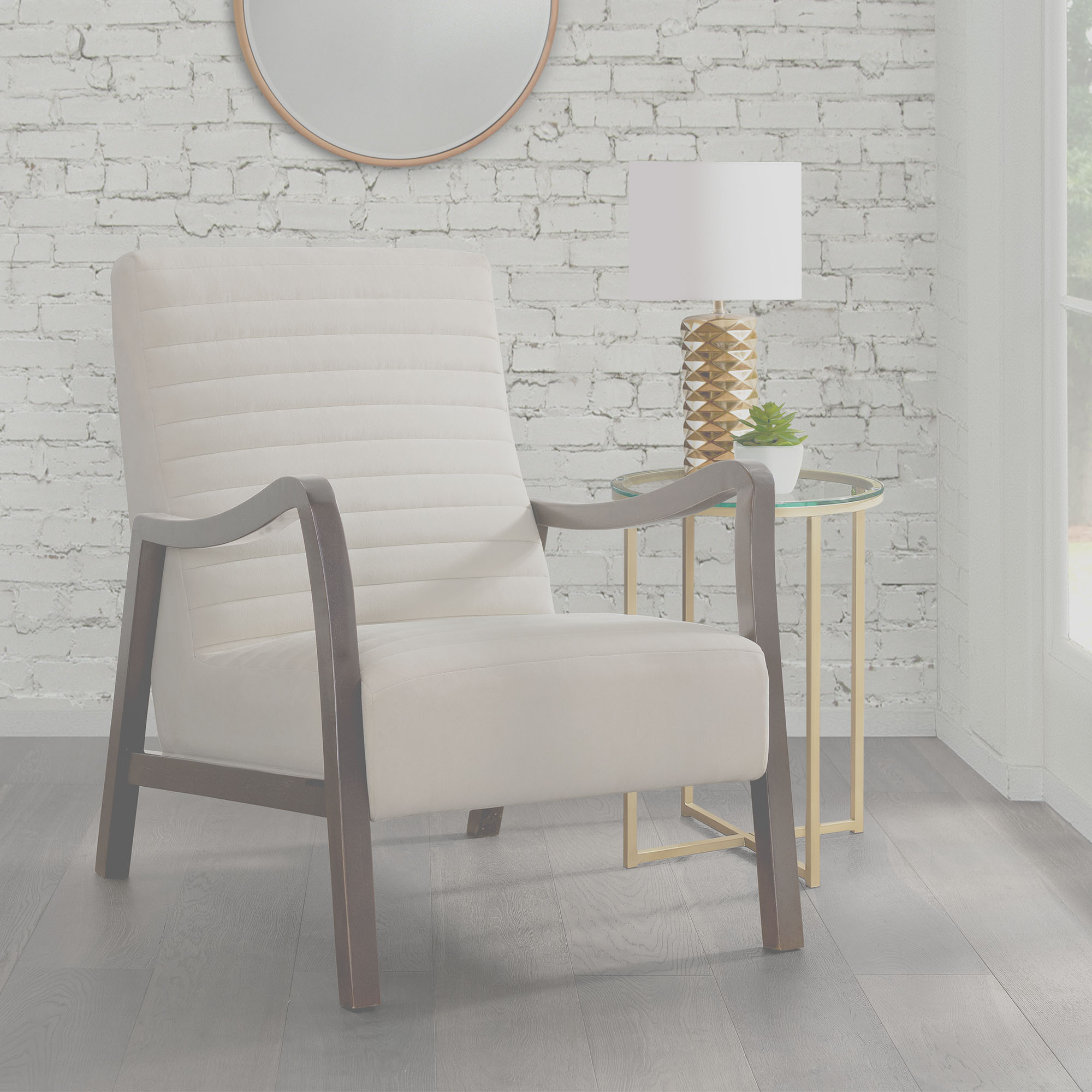 The Fairfax Chair is the transitional chair your home’s been missing! With a durable wooden frame and clean seam lines, this chair is the perfect accent addition. The neutral colors allow it to blend seamlessly with any existing style living room. The slightly-arched square armrests add a modern touch to a classic silhouette. 1 Year Limited Manufacturer Warranty