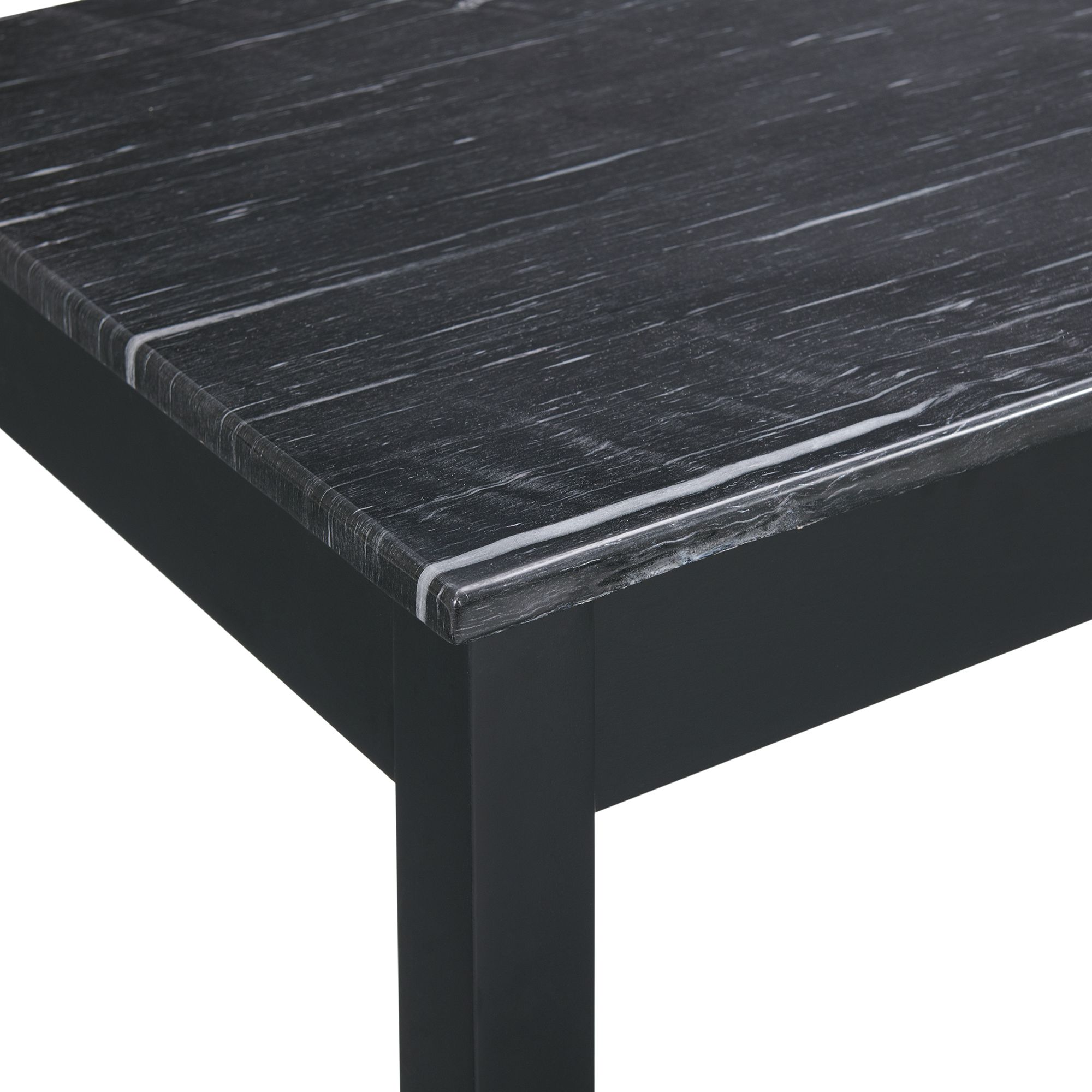 Faux marble paper veneer on MDF top; Rubber solid wood legs; Birch veneer on apron;Fabric Foam