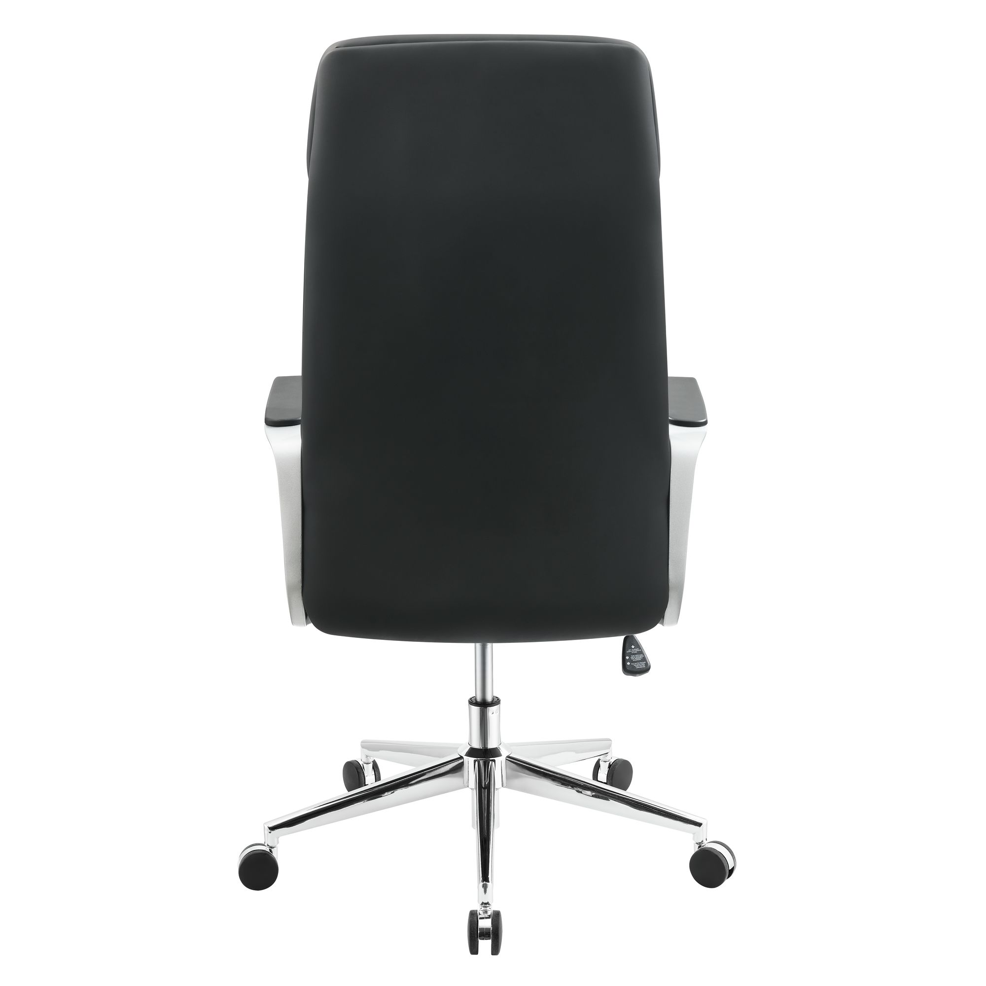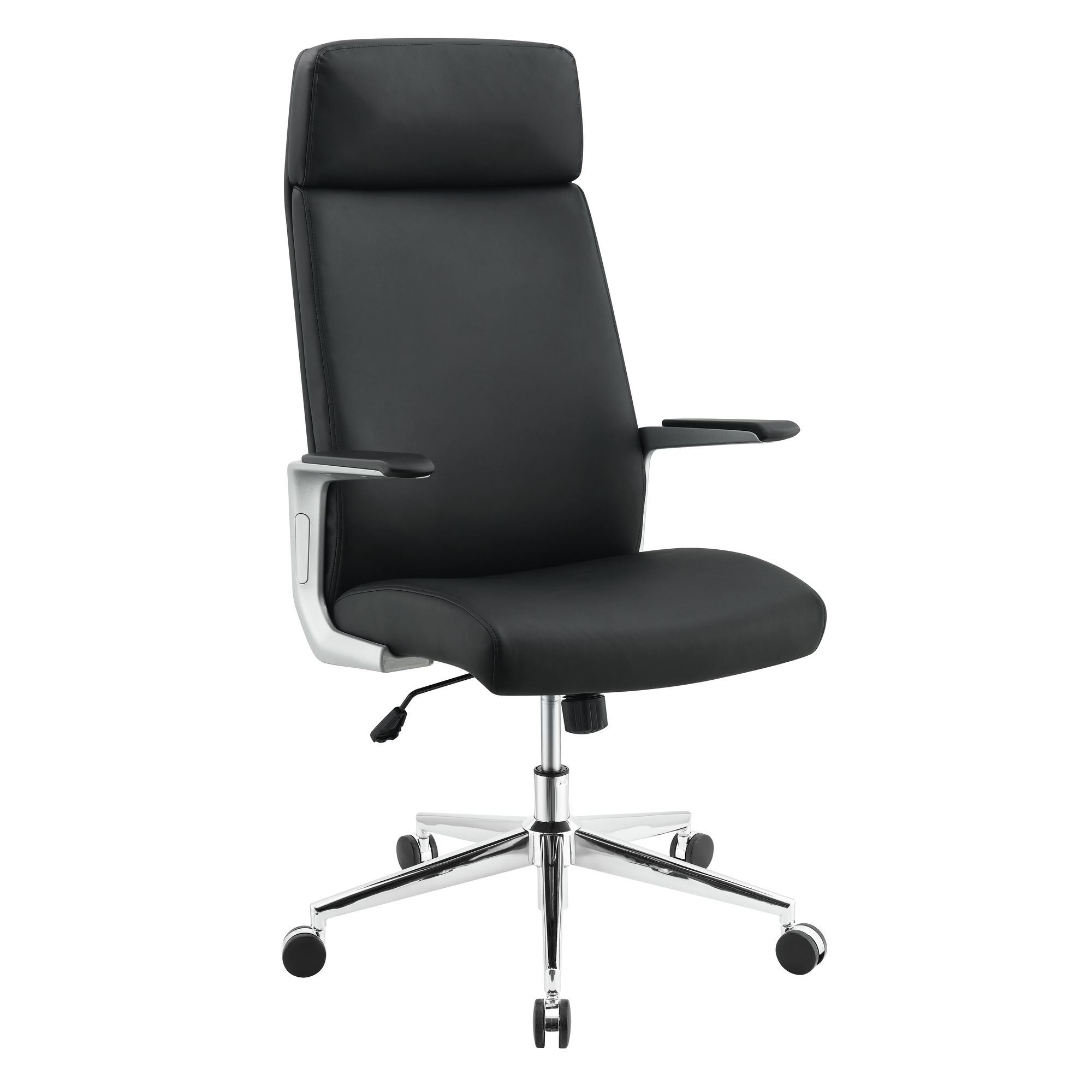 Frank Office Chair increases your productivity and upgrades your office space to really look and feel like a boss. Built with manufactured wood and metal, this executive chair is long lasting . Upholstered in trendy faux leather with foam fill. Flaunts an ergonomic s-shape contour designed to provide proper neck and back support. Work at the height that is best for you by adjusting the chair to sit high or low with the lever. Features five casters at the base for easy mobility over most floors. Ships in one box and requires light assembly. 1 Year Limited Manufacturer Warranty
