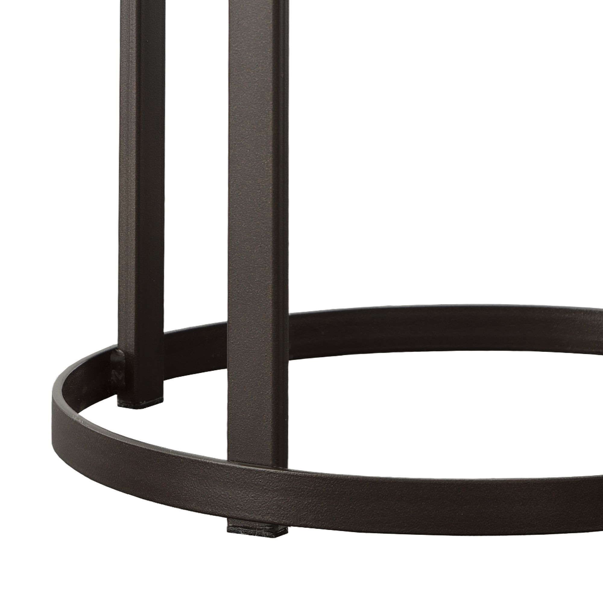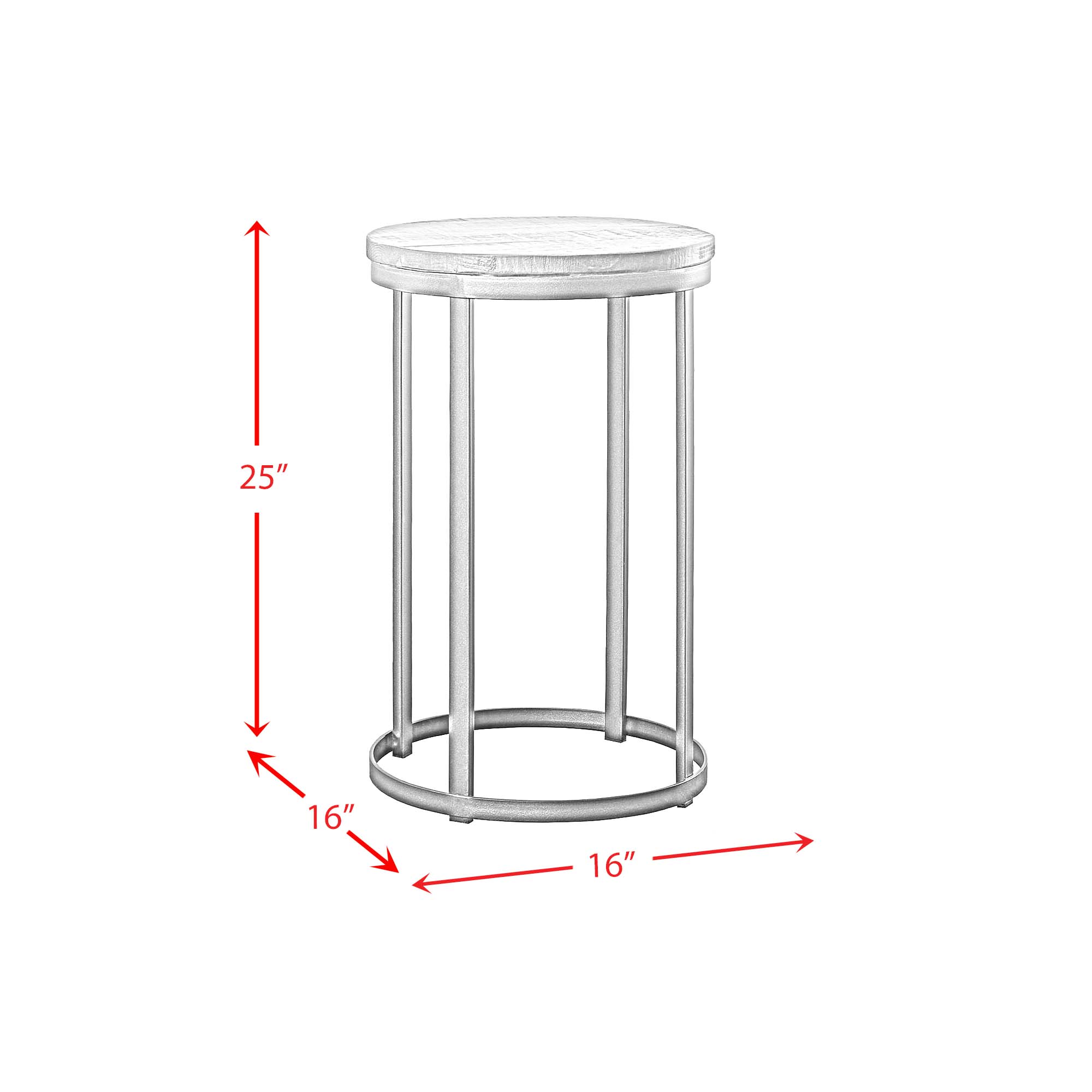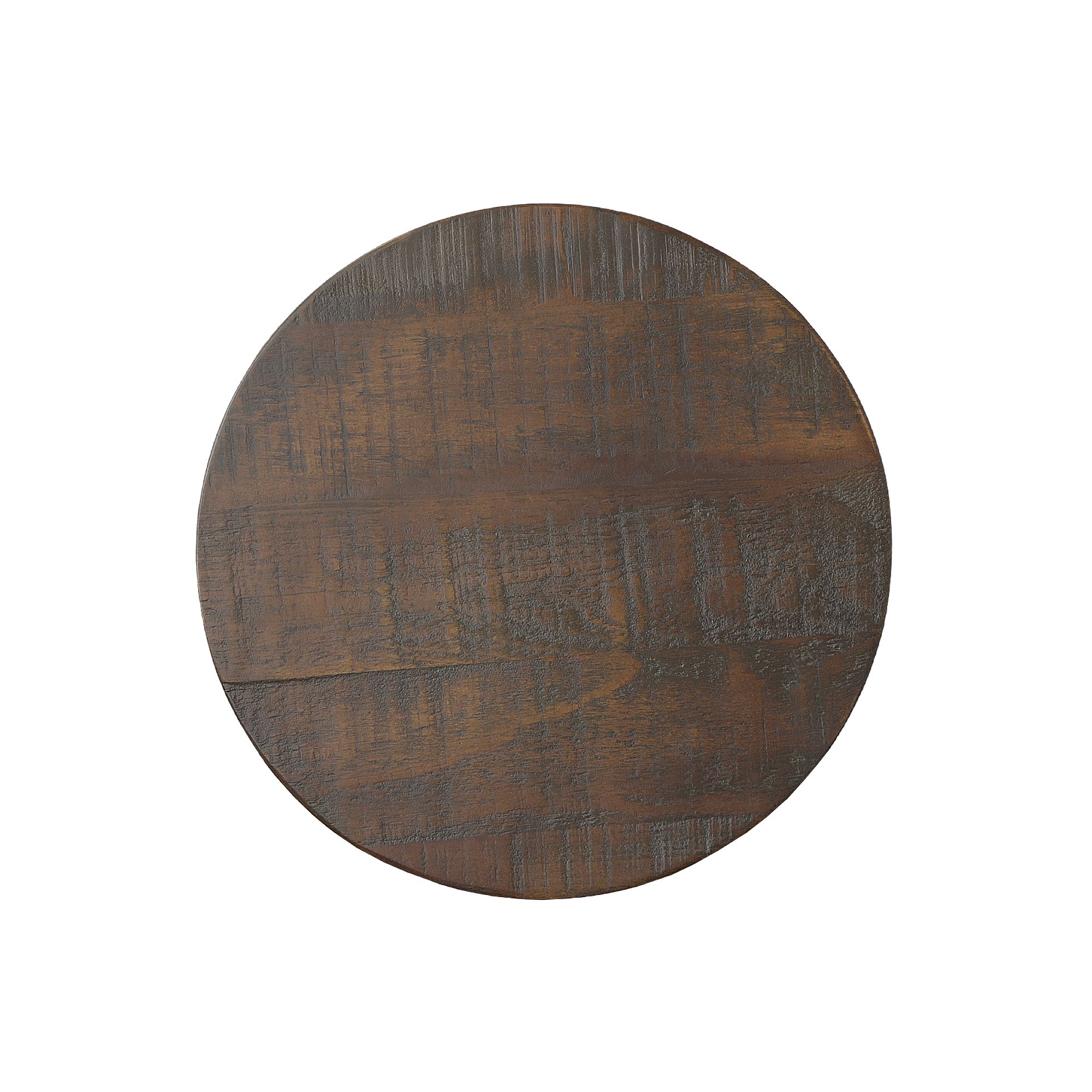 Bring home this industrial-styled end table featuring a black metal base that beautifully pairs with its dark colored table top constructed of solid pine. It accents some distressed markings that add lovely texture across the top. The size of the table also fits perfectly into smaller spaces. You will find this flexibility allows you to easily find the perfect spot to place this end table in your home. 1 Year Limited Manufacturer Warranty