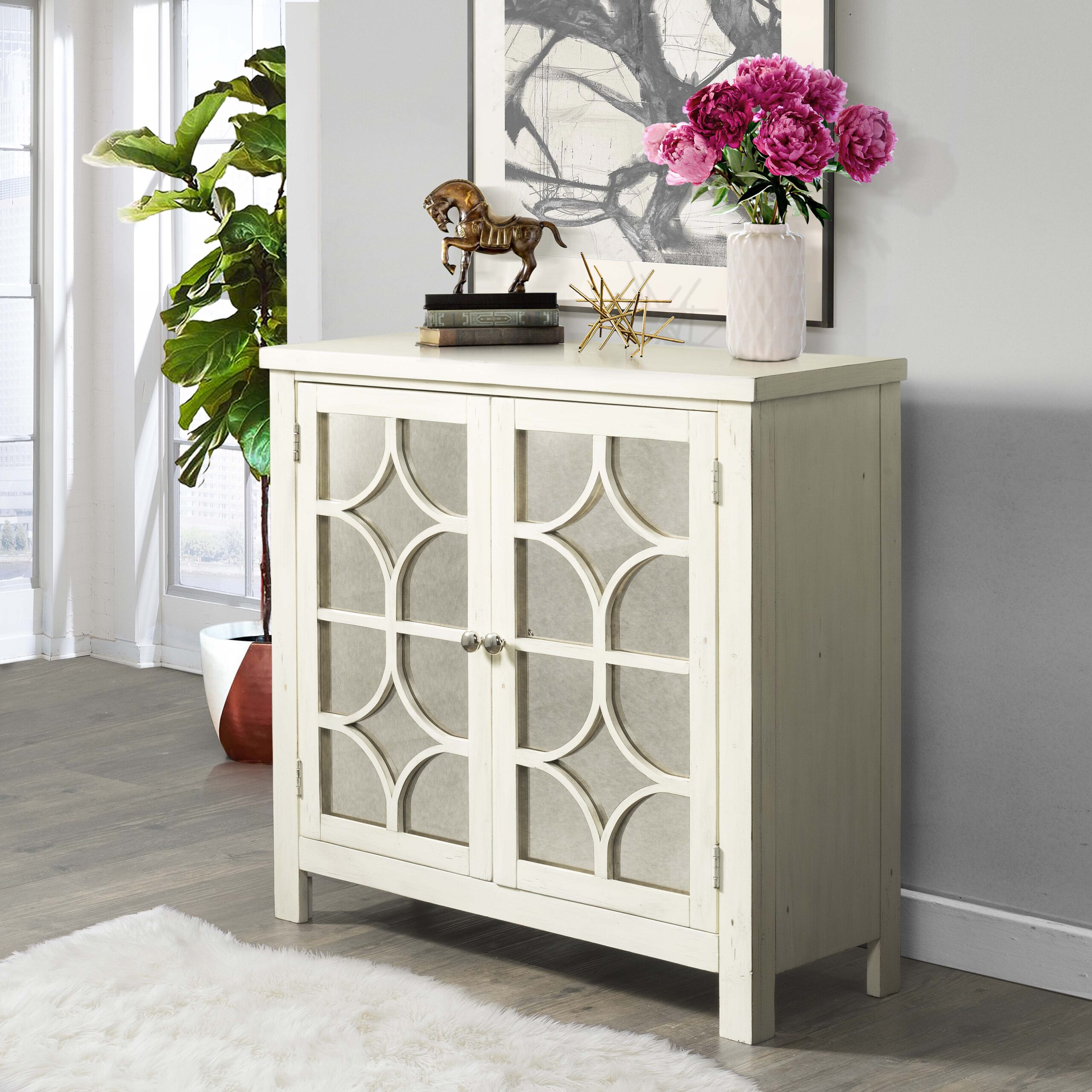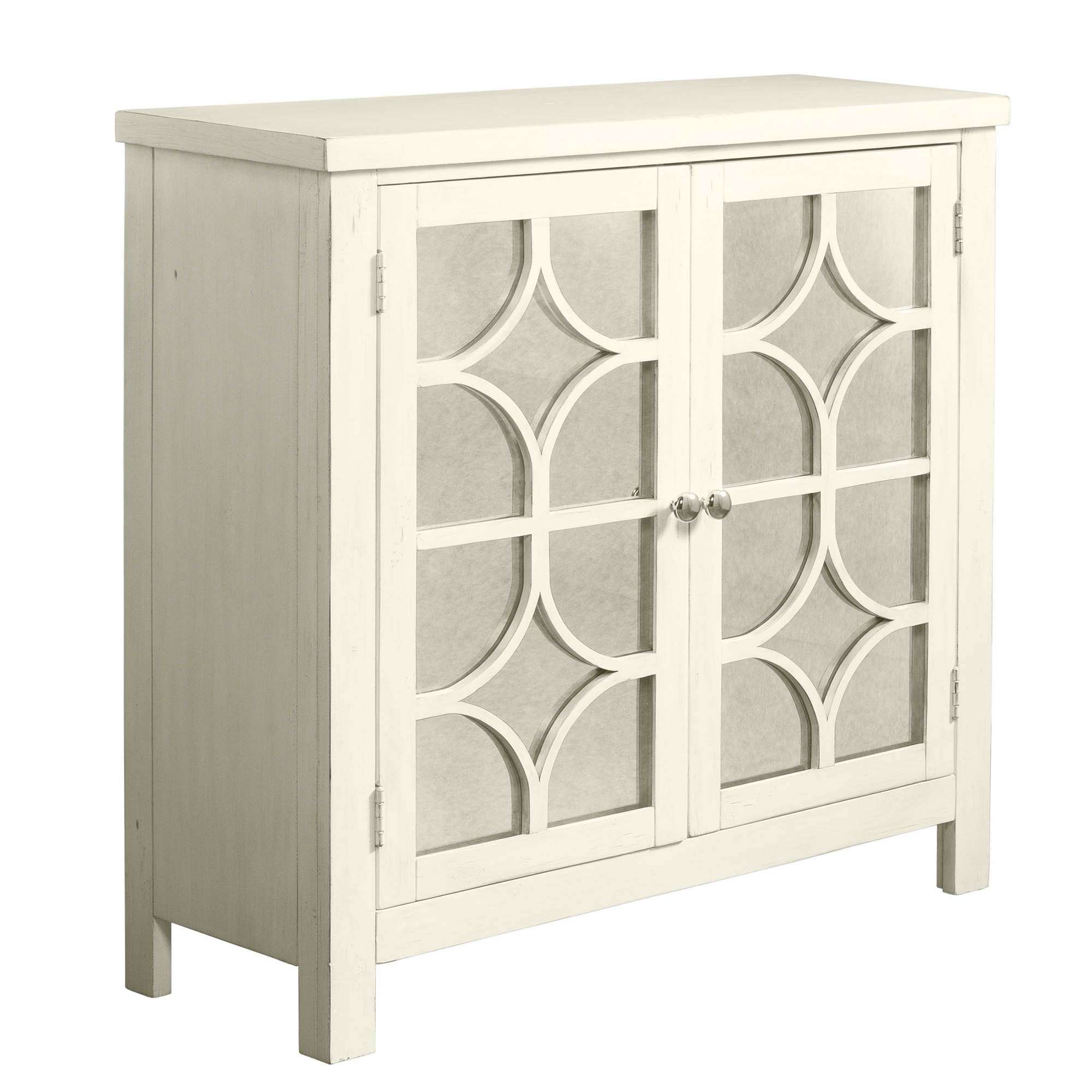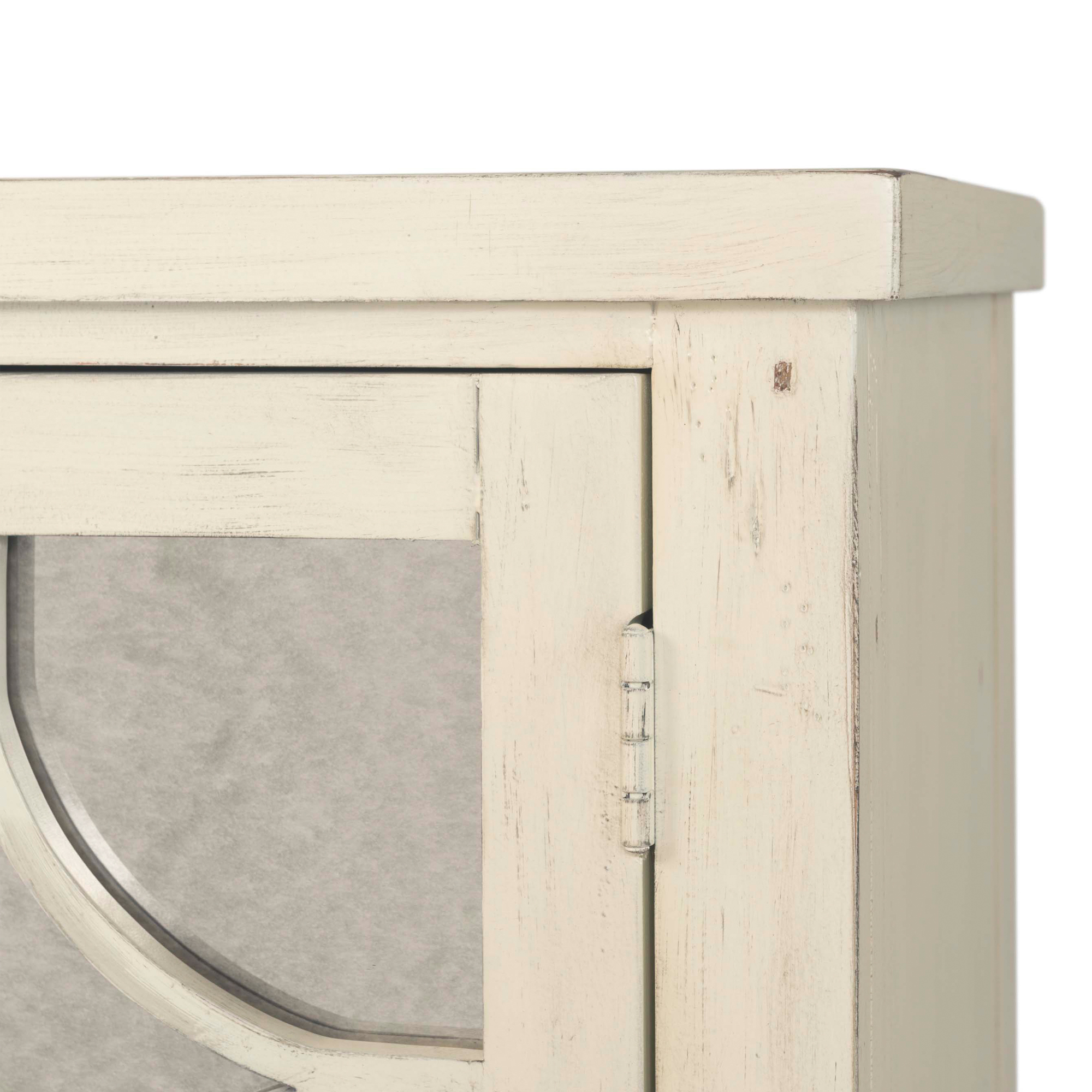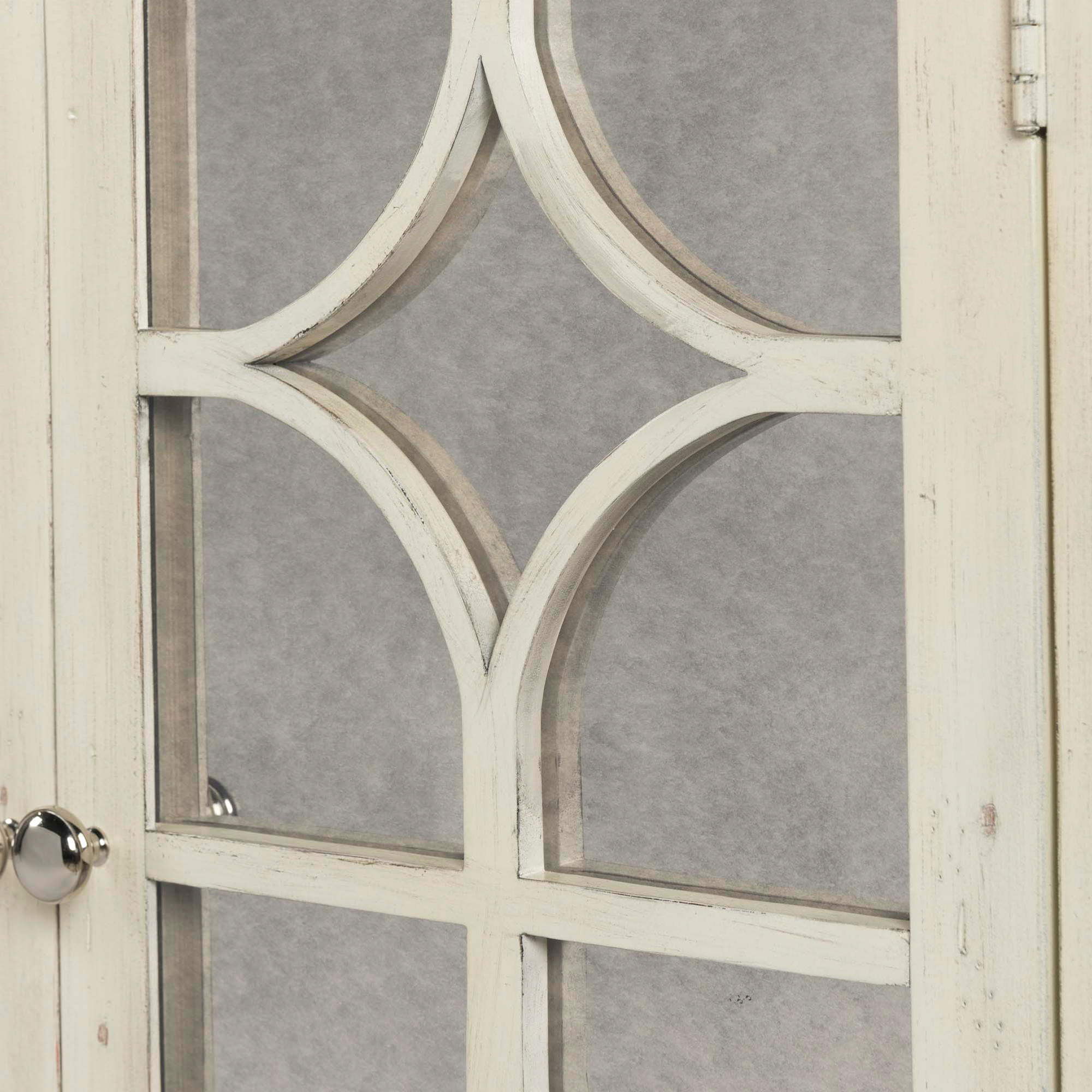 The Harris Accent Chest updates any room with its cool, rustic chic style! An antique mirror on the doors, highlight the intricate design work while the distressed finish completes the look. Open the doors to an adjustable interior shelf, ideal for storing away belongings. 1 Year Limited Manufacturer Warranty