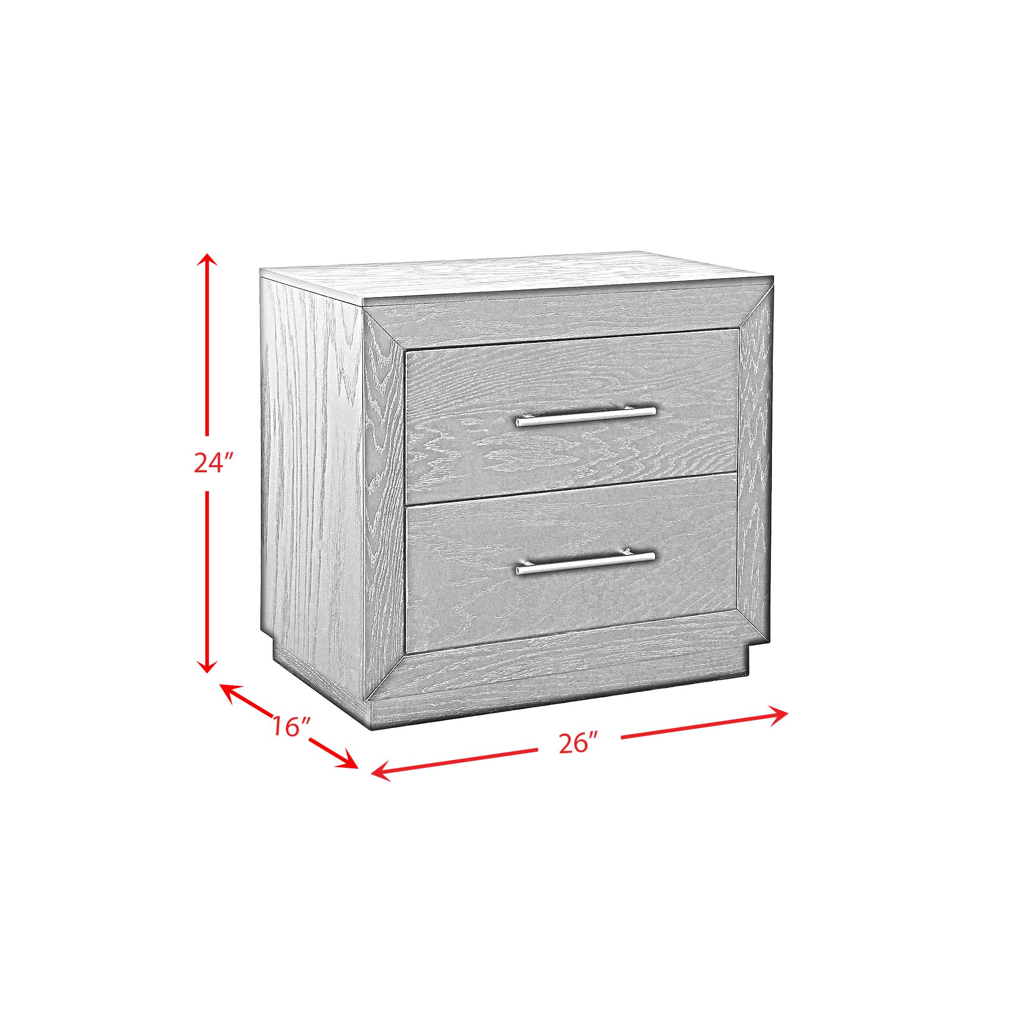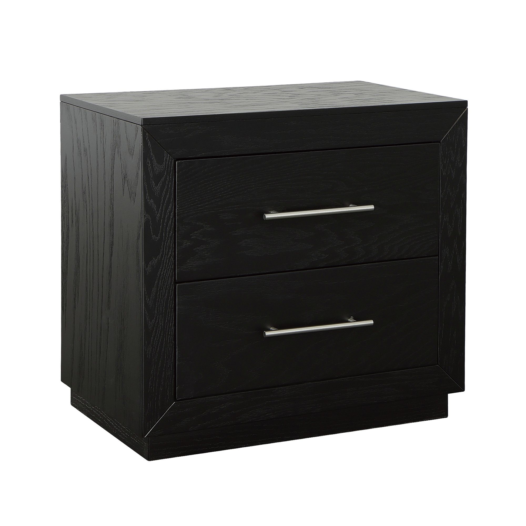 Evoke luxury and elegance with this nightstand featuring a dark, black finish. This case piece comes with long, easy-to-grab pull handles on each of its spacious drawers and features sleek edges throughout. Use it to easily place your nighttime essentials next to you while lying in bed—the nightstand will effortlessly keep these essentials on top or within a drawer with just the right amount of contemporary style. 1 Year Limited Manufacturer Warranty