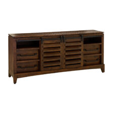 The Hugo Media Console in Brown is going to look stunning in your home! This console is constructed with solid, Brazilian pine and will instantly be a staple in your home for years to come. The sliding barn doors give this piece that perfect touch of rustic style you’re craving. The two cabinet doors have interior shelves that allow you to neatly store away your belongings. The natural tones and textures overtime will help make this piece a true one of a kind! 1 Year Limited Manufacturer Warranty