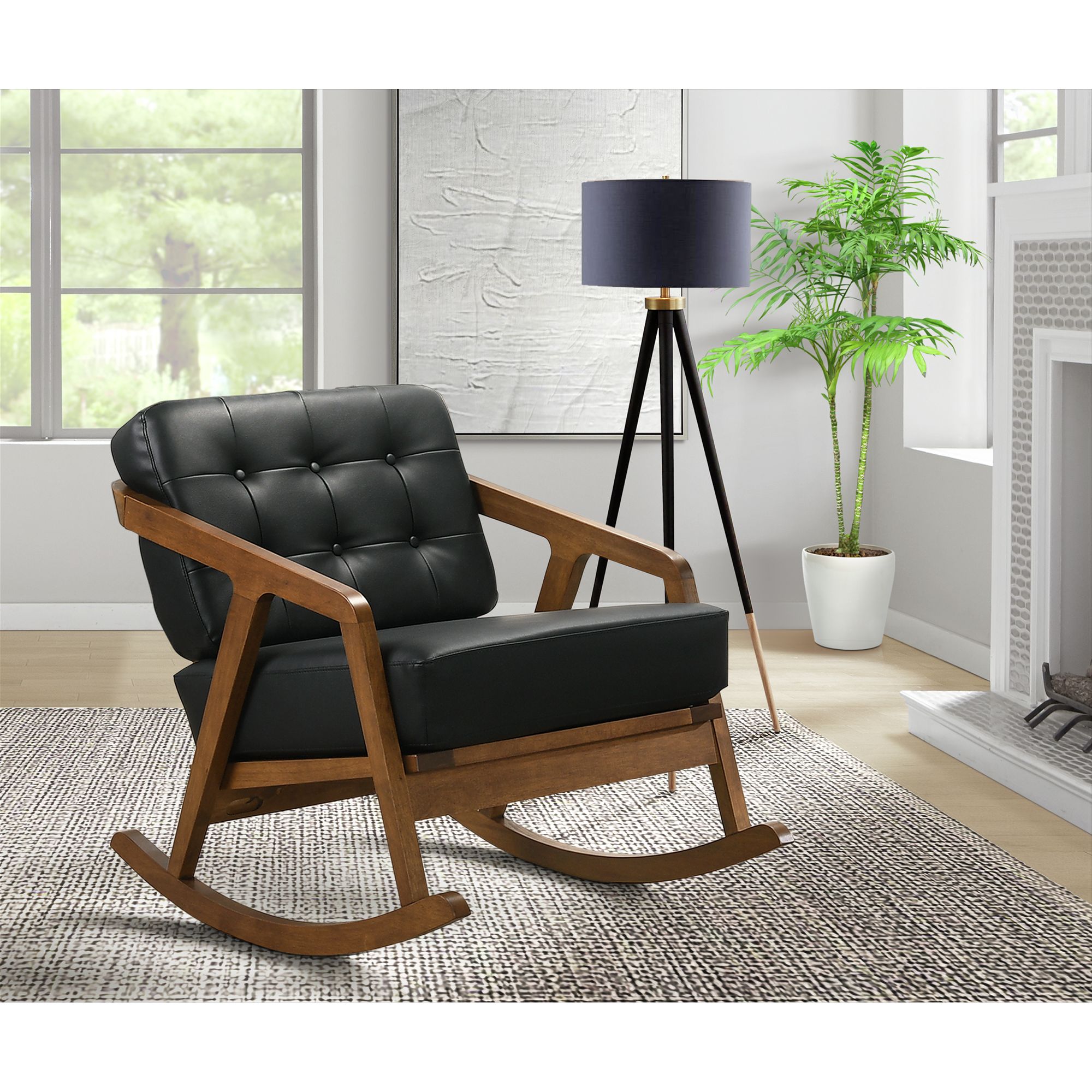 The Ingram Rocker is going to look fantastic in your home! This rocker will be standout in any room, from the living room or the bedroom. The button tufting on the back cushion instantly adds extra flair to this already stunning piece. The wooden frame is finished in a warm, pine that beautifully pairs with the color of the fabric. The faux leather fabric will give you the high end look of leather, but without the high cost. 1 Year Limited Manufacturer Warranty