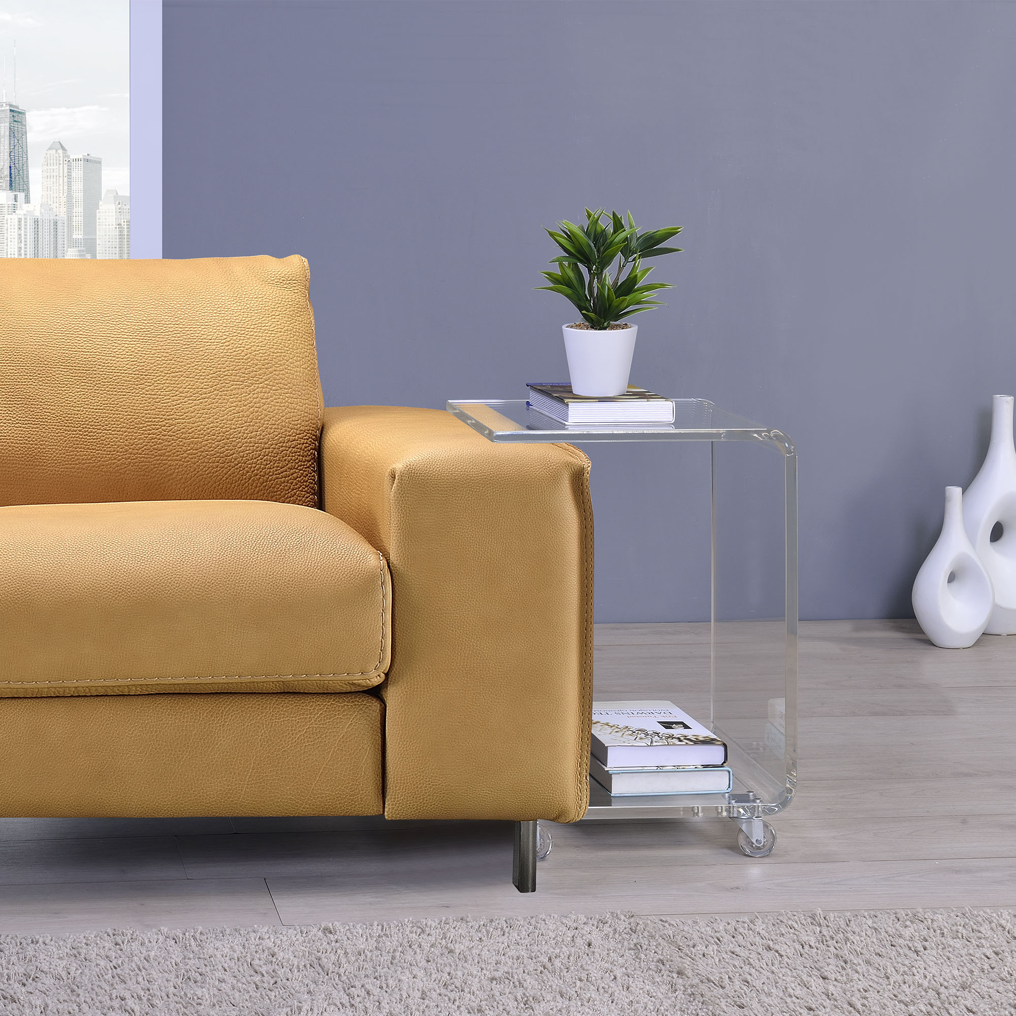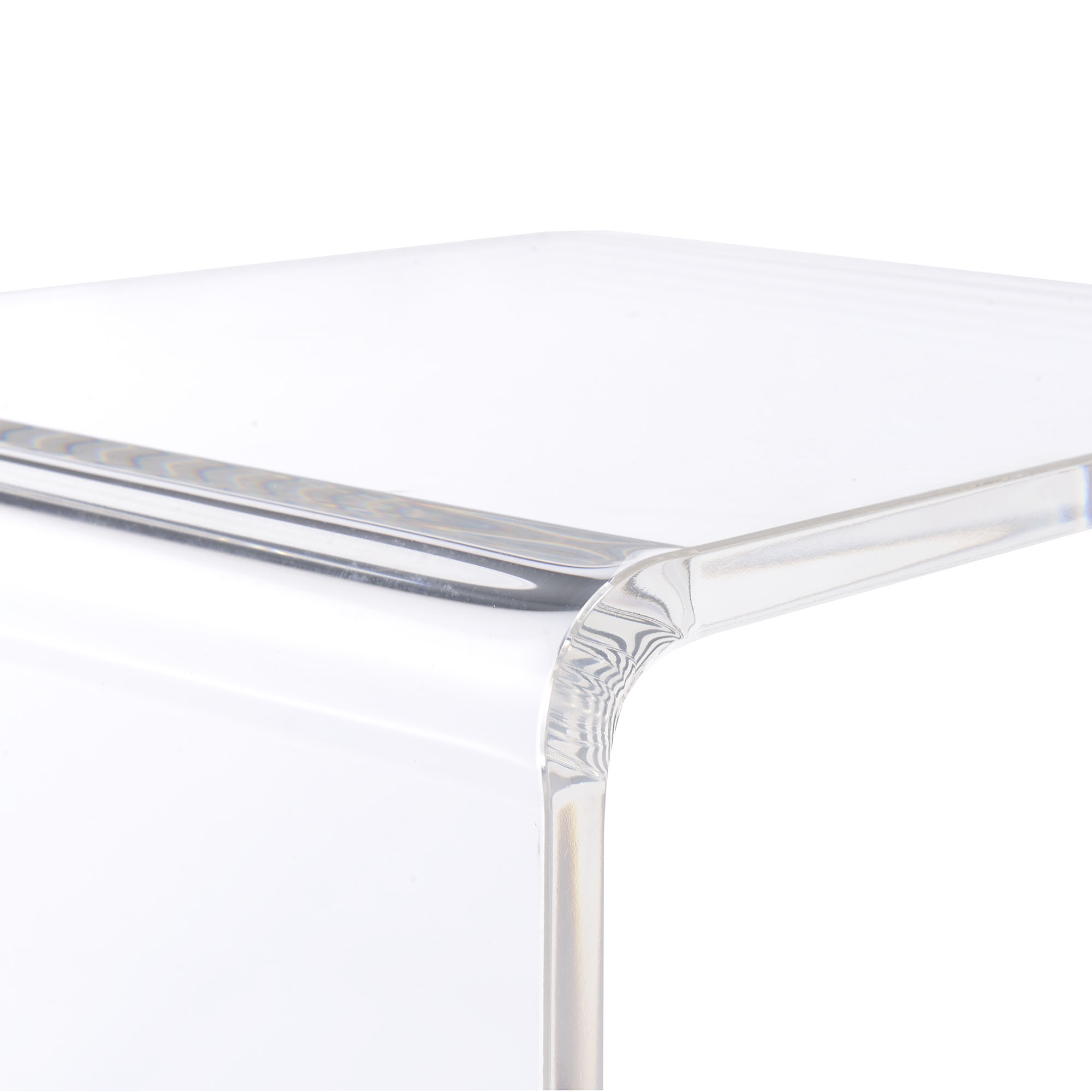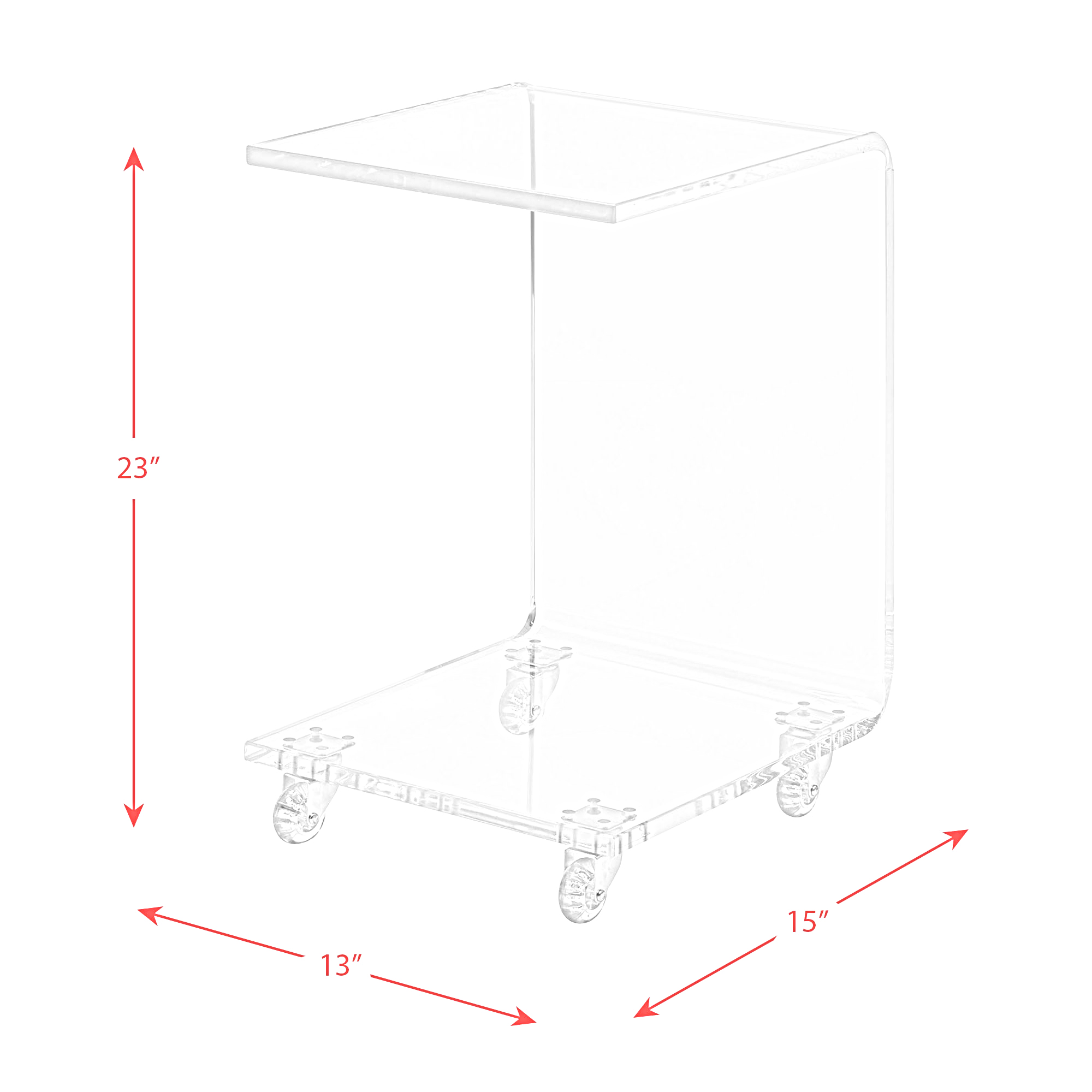 The Iris Acrylic Snack Table is the missing piece to your home! This table comes on clear casters. Dont worry if casters arent your style, they can easily be removed. Roll this snack table with ease up to your sofa and find a spot for your drinks and snacks while you binge watch your favorite shows. The shelf on the bottom lets you add your personal style with any of your favorite decor. The entire table is made out of clear acrylic, making it permanent staple in your home year after year. 1 Year Limited Manufacturer Warranty