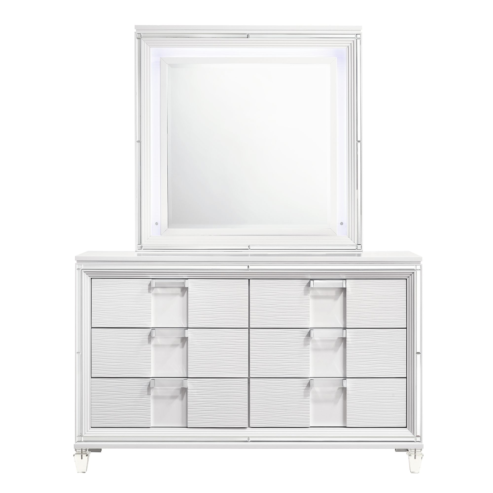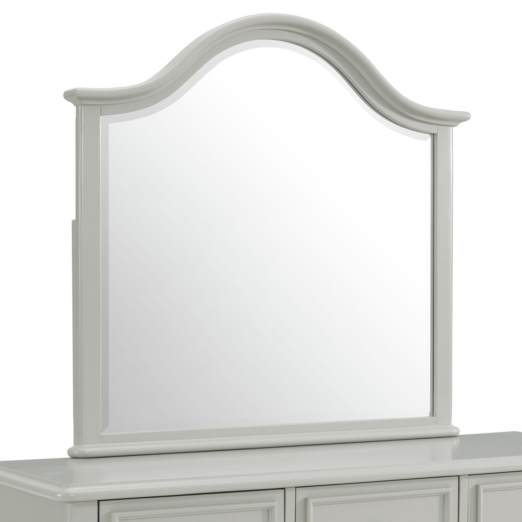 The Jesse Dresser & Mirror features a charming design with delicate accents. Keep your little one organized with its four large drawers. Perfect for storing clothes and three smaller drawers, ideal for more delicate items. Arched cabriole feet and crystal-like knobs accent this piece while a delicately arched mirror complete this piece. 1 Year Limited Manufacturer Warranty