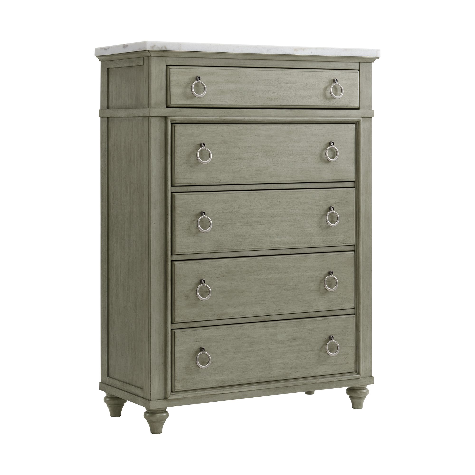Kendari 5-Drawer Chest w/ White Marble Top in Grey