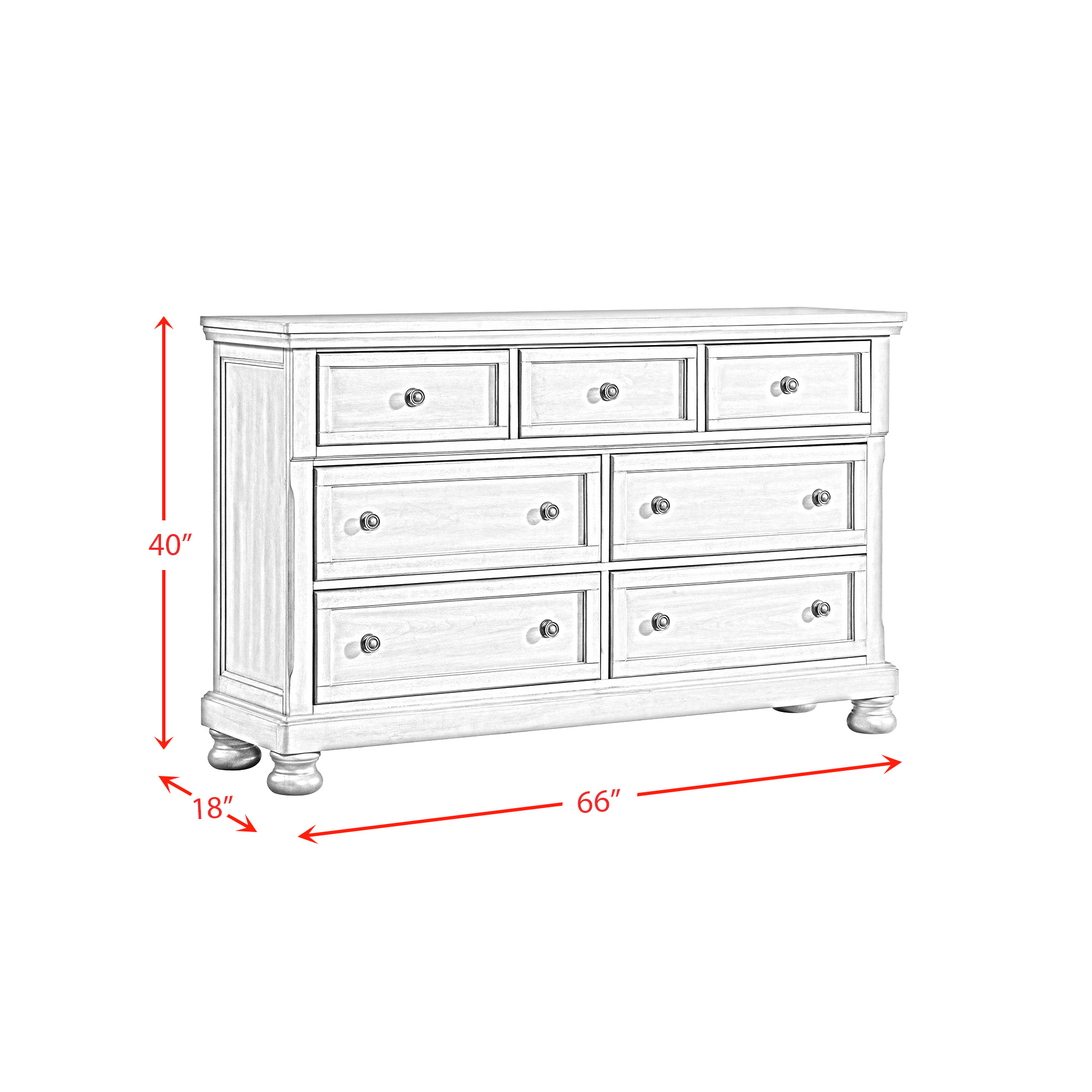 The Kingston 7-Drawer Dresser is the perfect addition to your bedroom! This bedroom dresser comes with seven, spacious drawers; perfect for keeping all of your belongings neatly and properly stored away. The top middle drawer has a hidden drawer for you to store away your more valuable items. The top drawer is felt-lined and will keep your delicate items in perfect condition. The bottom drawer features a dust proofing layer, keeping your belongings protected. Bevel edges and bun feet complete the look of this horizontal dresser. Thanks to its traditional design and warm, walnut finish, this dresser will be a staple in your home year after year. 1 Year Limited Manufacturer Warranty