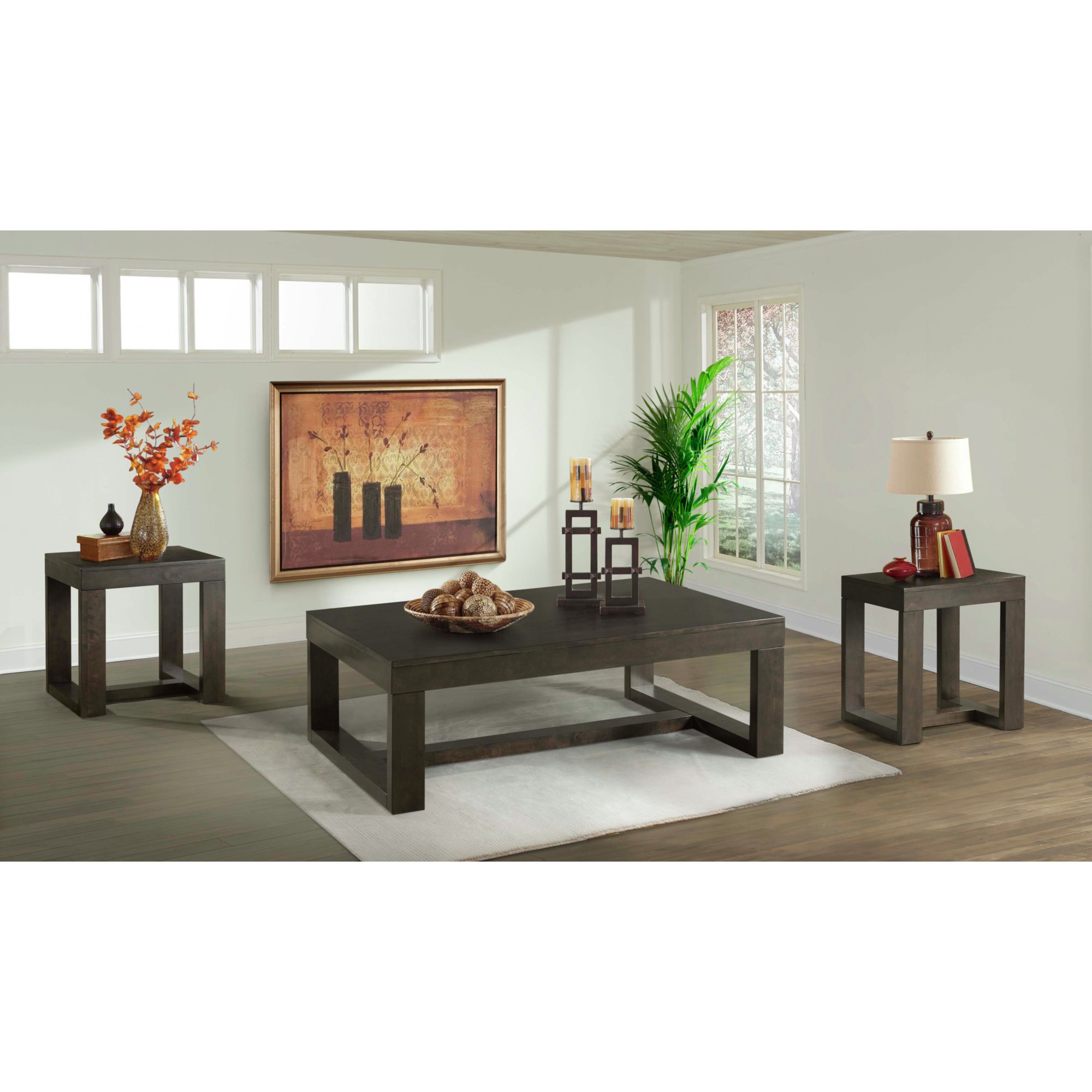 The Laurel 3PC Occasional Table Set is the best way to update your living room! This set comes in a dark walnut finish and features contemporary legs. Style the set together or mix it up, to transform your home into your own sanctuary. 1 Year Limited Manufacturer Warranty