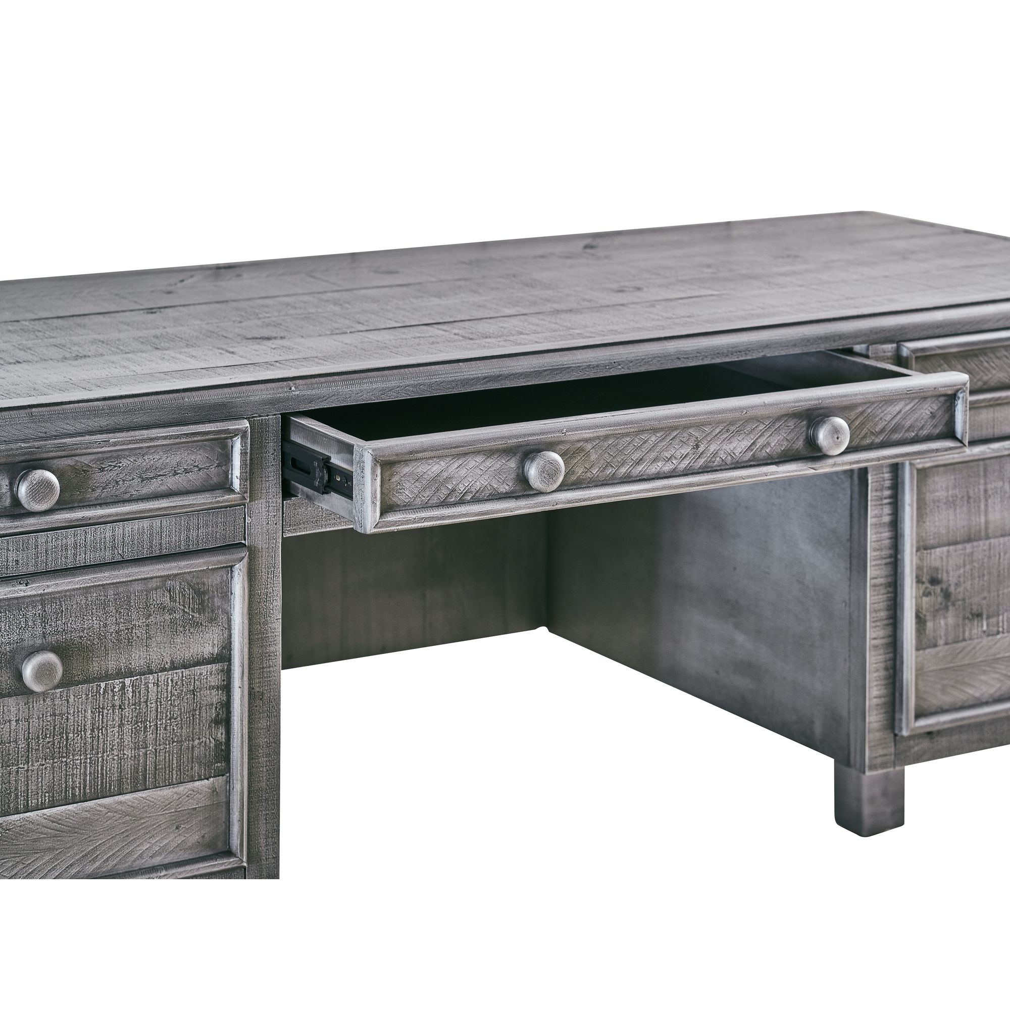The Leo desk and shelves can turn any space into an office. The grey, rustic look will brighten any room, and the transitional style allows this piece to be very versatile. Solve all of your organizational and storage problems with this beautiful desk! 1 Year Limited Manufacturer Warranty
