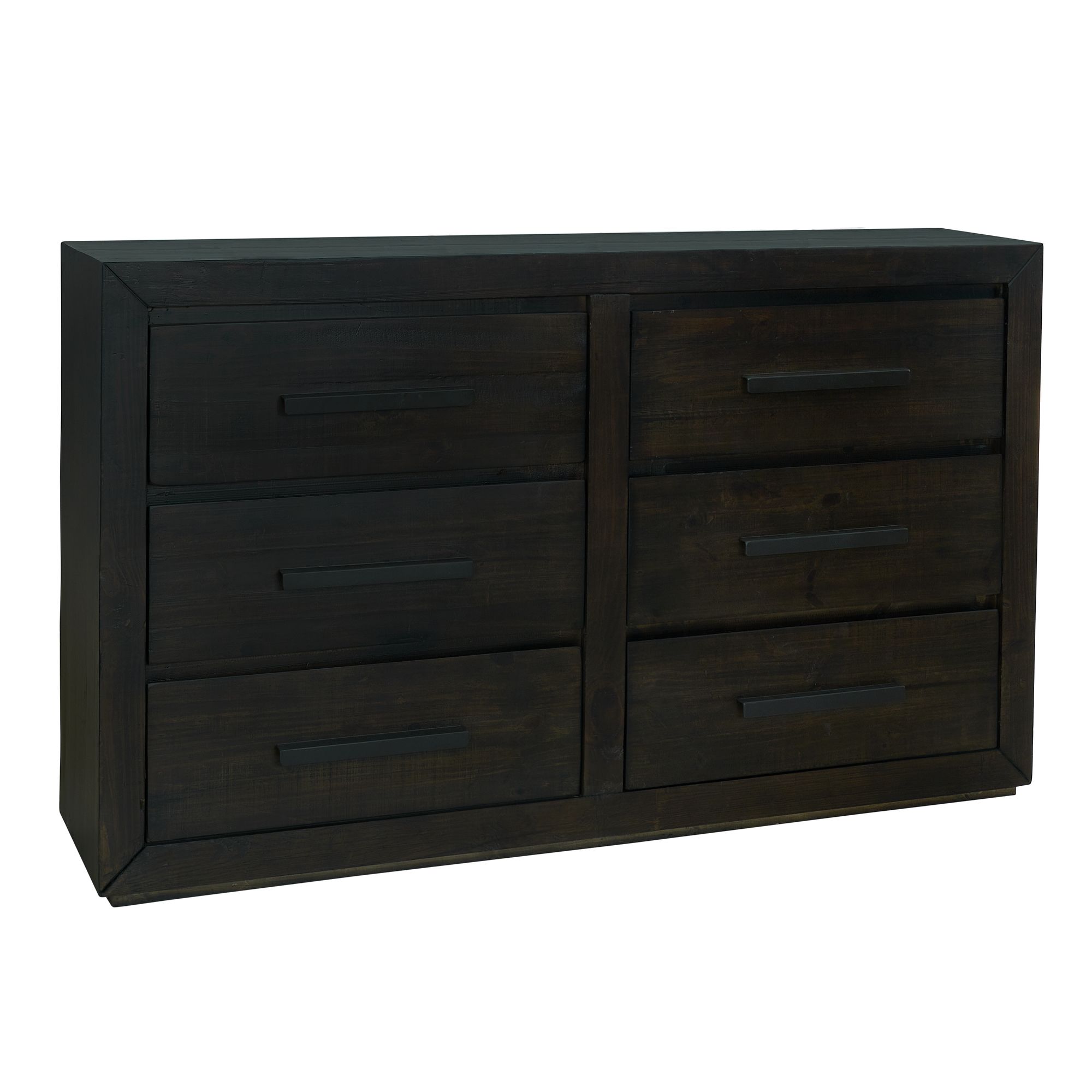 A dresser that features a beautiful dark, solid pine with subtle indentions throughout for some rich, rustic character. Clean lines and metal bar hardware add a touch of contemporary sophistication, while each drawer provides spacious storage space for all the essentials. Every detail comes together to create a simple and stylish piece to add in any bedroom. 1 Year Limited Manufacturer Warranty