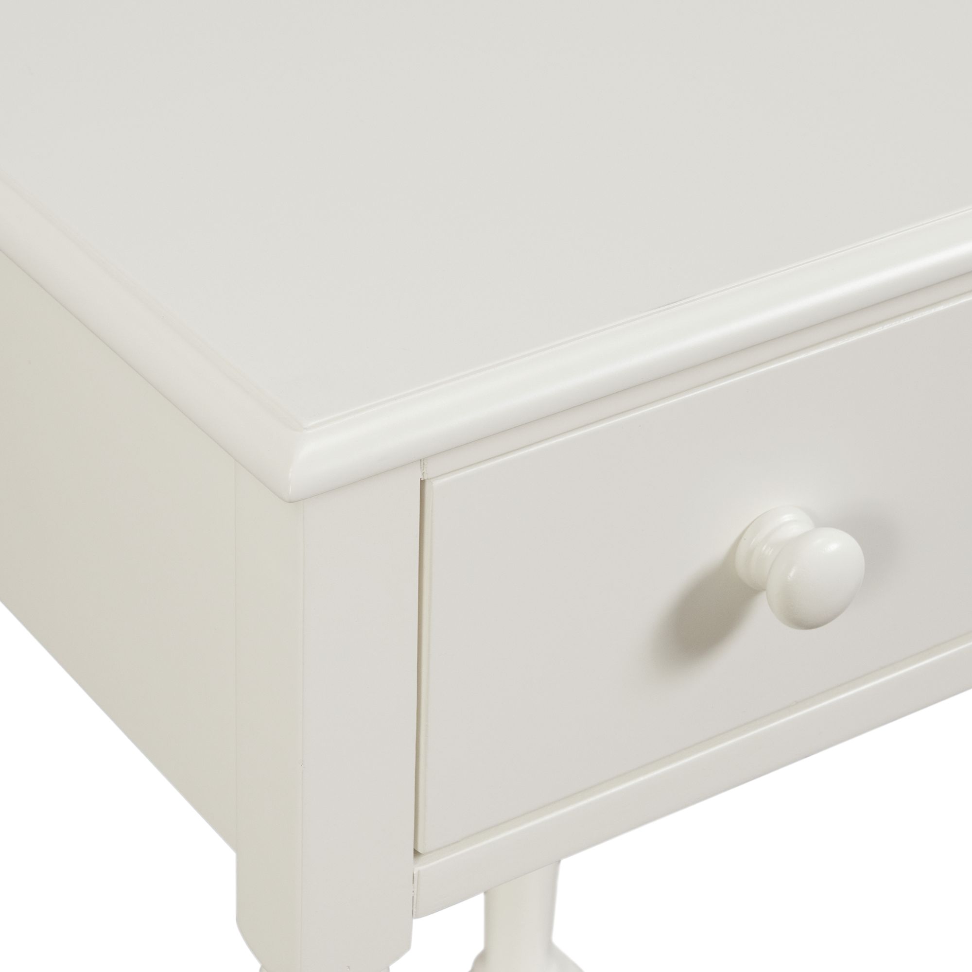 The Moana Nightstand lends a touch of cottage-chic charm to any space in your home. Featuring a spacious pull out drawer, one open bottom shelf, and a USB port. The lower shelf is perfect for displaying your favorite indoor plant or favorite magazines. This side table is simple and petite, perfect for small spaces. This neutral nightstand will blend with any bedding in your bedroom or guest room. 1 Year Limited Manufacturer Warranty