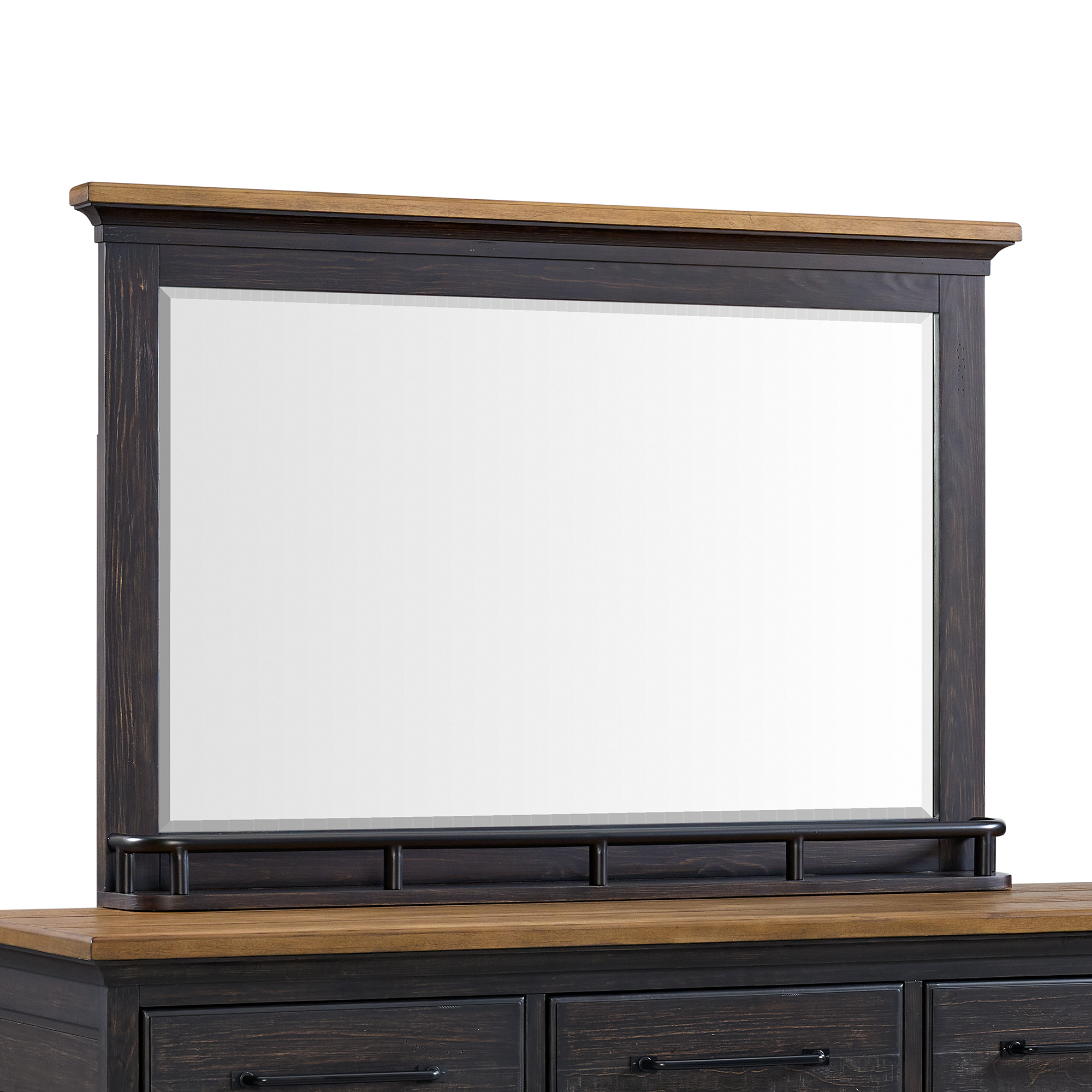 The Montrose Dresser and Mirror Set in Espresso and Brown effortlessly blends timeless design elements with modern practicality. The aesthetic dual-toned finish adds visual interest, while the high-quality pine veneer enhances durability. Felt-lined top-row drawers provide extra protection for your delicate items, and a compartmentalized jewelry tray allows easy organization. To further this set’s appeal, the landscape-oriented, framed mirror’s perimeter features an elegant bevel. For a refined and practical addition to your bedroom, the Montrose Dresser and Mirror Set delivers in both quality and style. 1 Year Limited Manufacturer Warranty