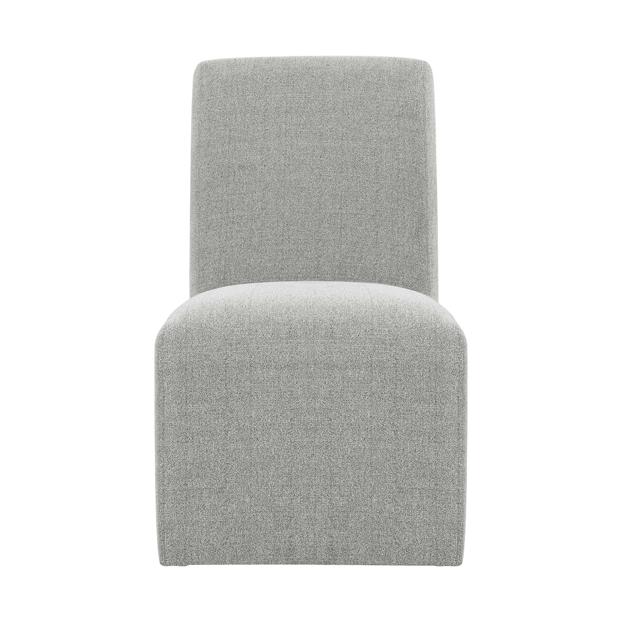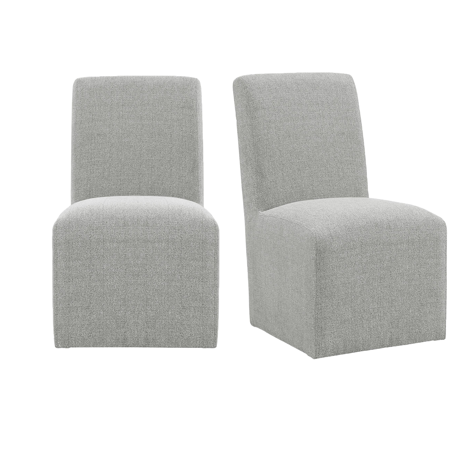 The Nero Side Chair Set is a great addition to your dining table. This set includes two dining side chairs. The transitional design of the chair, easily accessorizes with any standard dining table style. Both chairs are fully upholstered from top to bottom in a linen like fabric, which will give you and your guests comfort while at the table. While it appears these chairs sit flush on the floor, they actually have casters underneath the chair base for mobility. Therefore, you can arrange the chairs however you choose in your dining area. Be sure to check out the matching arm chair set as well! 1 Year Limited Manufacturer Warranty