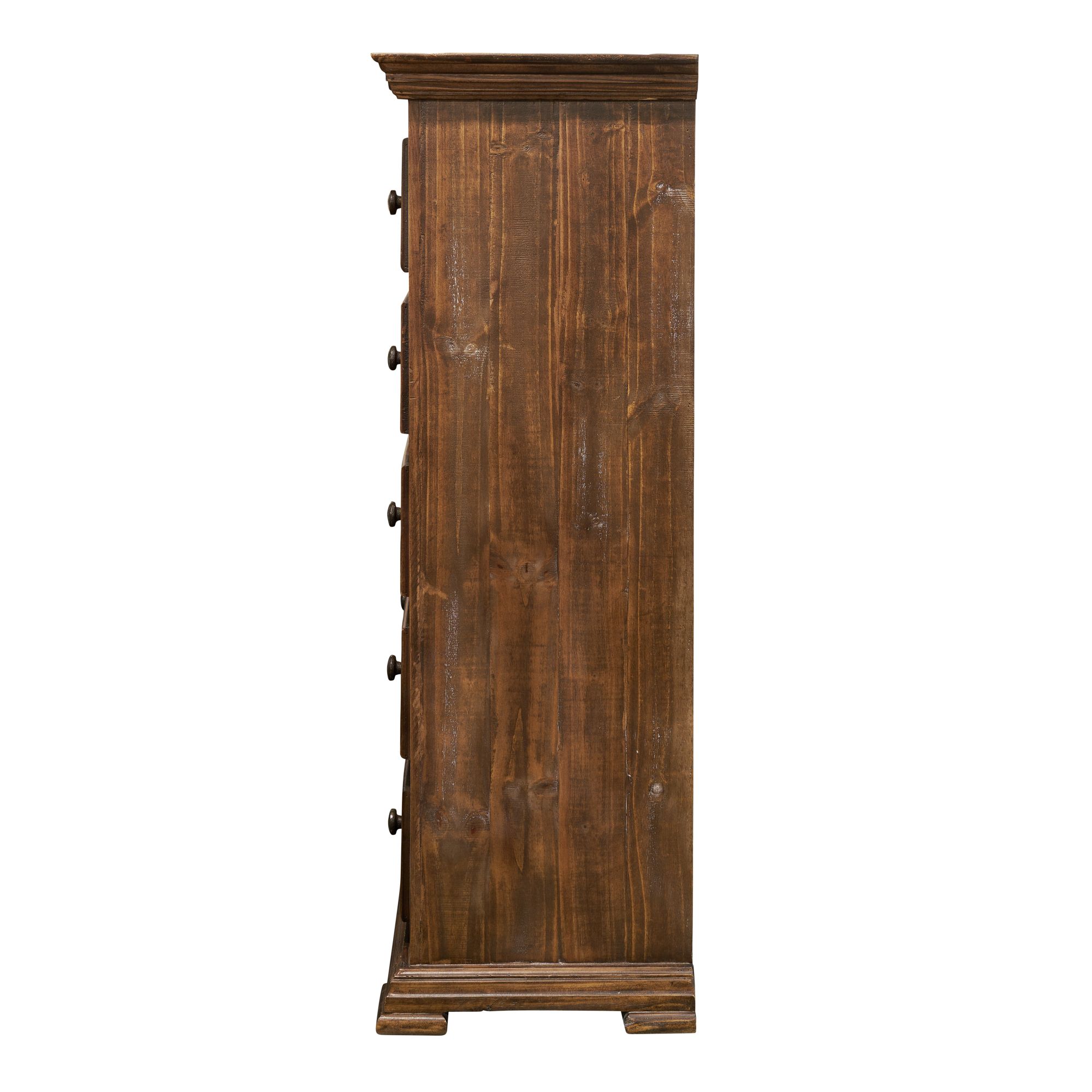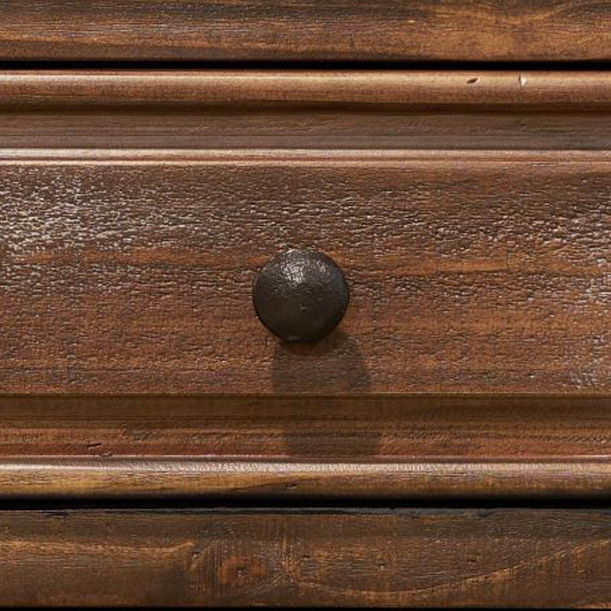 The Olivia Brown bedroom collection, has a rustic appeal with heavy distressing created through rasping and other saw marks, adding to the rugged feel. The western charm of the aged and weathered wood is all enhanced by the handcrafted refined moldings on all case pieces. This unique sophisticated design will warm a traditional home, soften a wood cabin, enhance a rustic lodge, or add a touch of nature to a western ranch. 1 Year Limited Manufacturer Warranty