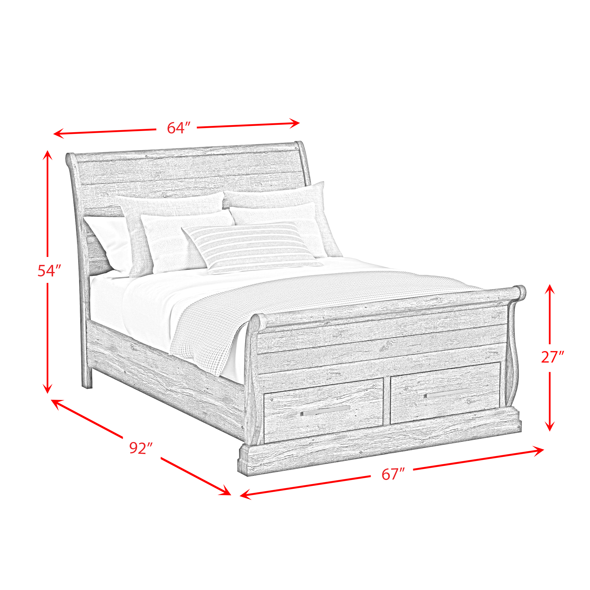 The Park Ridge Queen Sleigh Storage Bed is the perfect addition of charming farmhouse style in your bedroom. The tall, elegantly curving headboard creates an impressive focal point, perfectly complementing the footboard’s matching silhouette which additionally features two convenient storage drawers. The bed’s robust and sturdy frame offers a solid foundation, while hook and pin bed rails enhance safety with easy assembly. With its timeless design, grained wood finish, and practical design, the Park Ridge Queen Sleigh Storage Bed is a perfectly classic addition to your home. 1 Year Limited Manufacturer Warranty