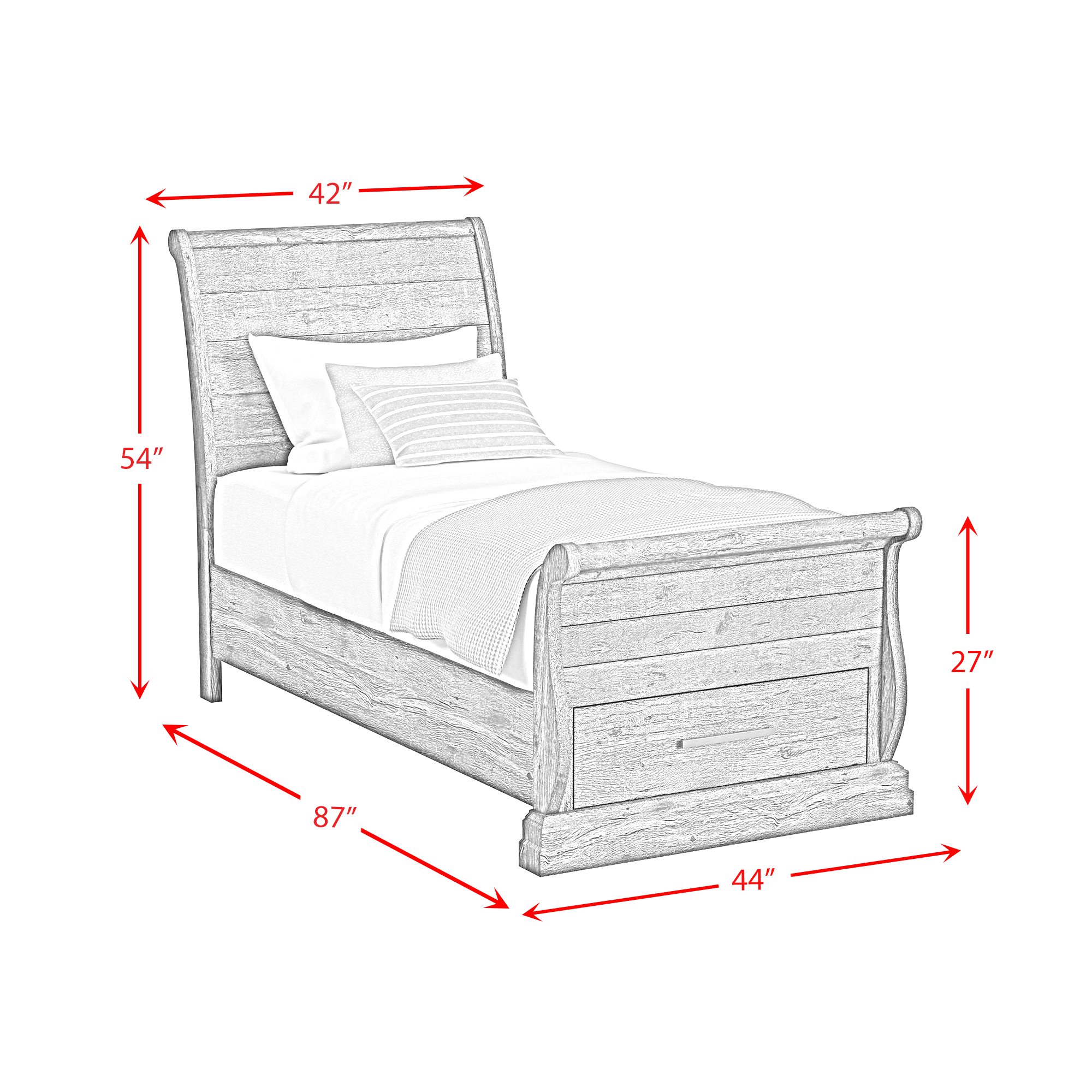The Park Ridge Twin Sleigh Storage 5-Piece Bedroom Set seamlessly blends ageless, farmhouse style with practical utility in a warm and inviting manner. The bed’s elegantly curving silhouette creates an impressive focal point, while the footboard’s built-in storage streamlines organization. Case pieces with spacious and sturdily constructed drawers offer additional storage options, and the elegantly beveled, landscape-oriented framed mirror lends itself to practical daily use. With its timeless elements, textured wood finish, and practical design, the Park Ridge Twin Sleigh Storage 5-Piece Bedroom Set creates a cozy and complete bedroom. 1 Year Limited Manufacturer Warranty