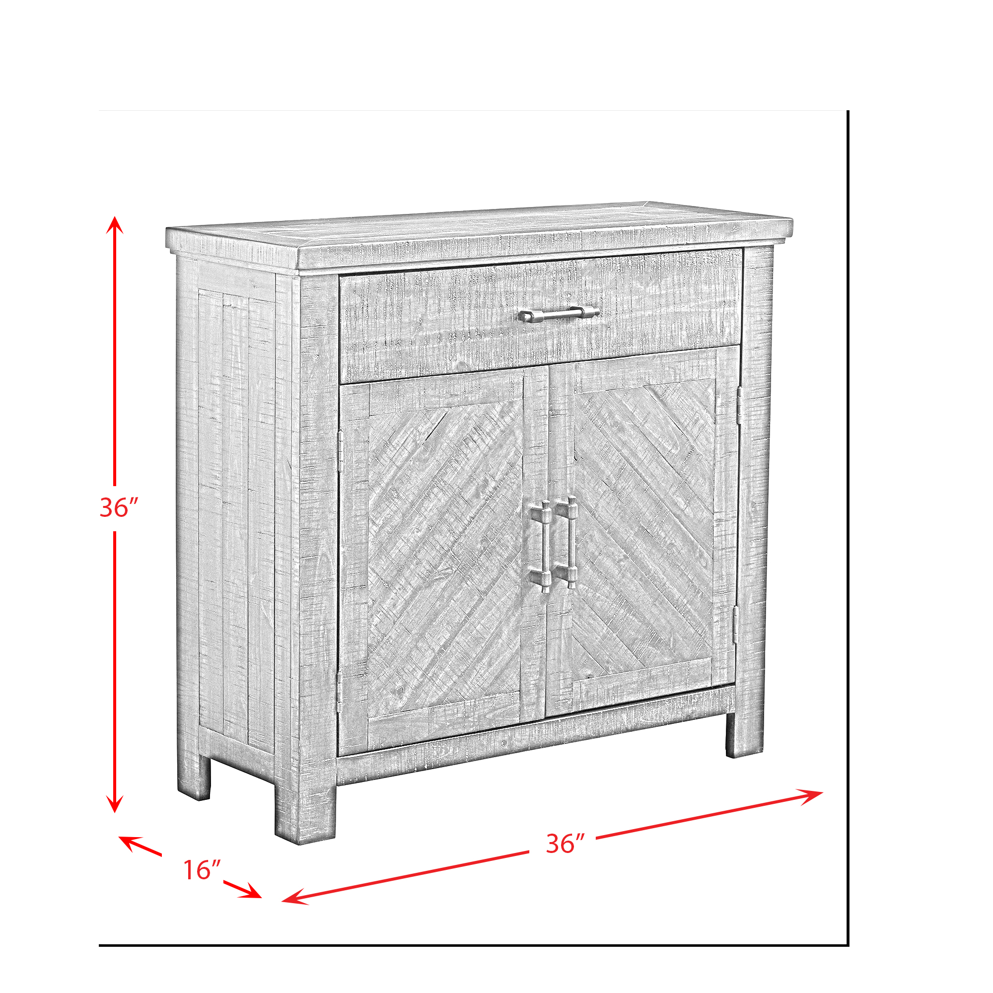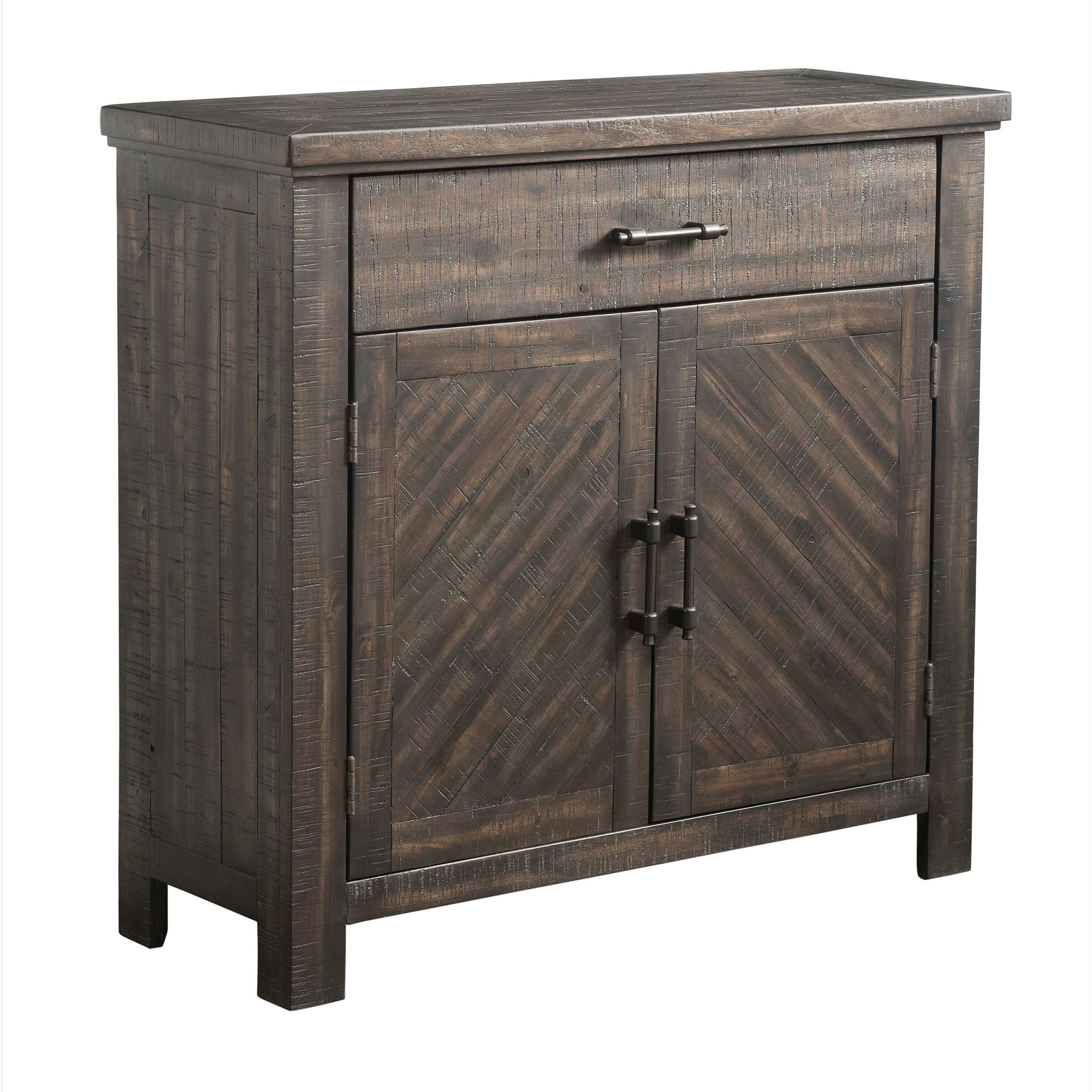 The Parker Accent Chest updates any room with a cool, rustic vibe. This piece features distressed markings throughout, in a transitional color. Open the cabinet to find additional storage space, along with an adjustable shelf. Straight legs and a top drawer complete the look. 1 Year Limited Manufacturer Warranty