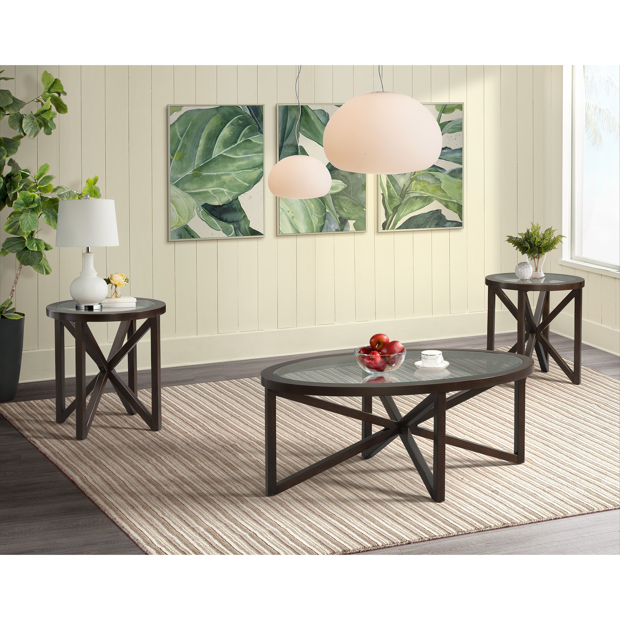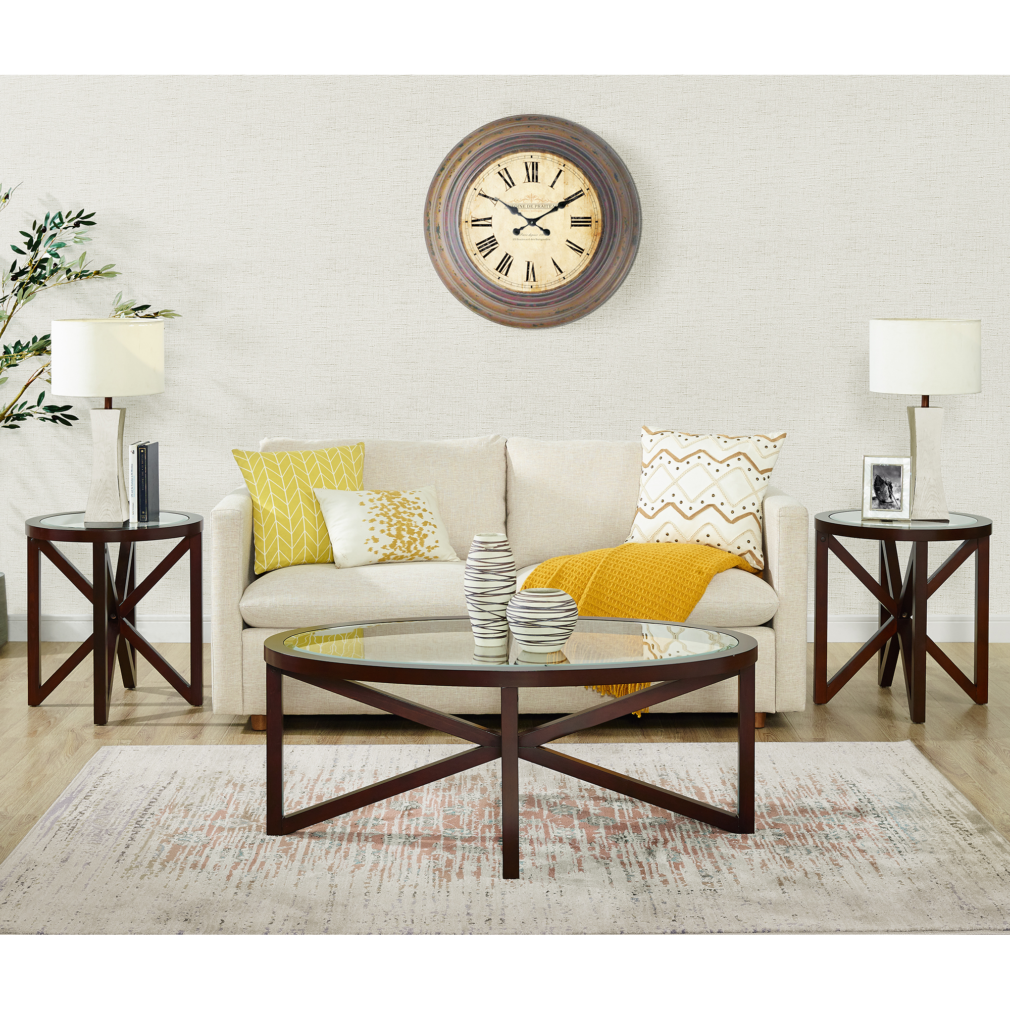 The Sandie 3PC Occasional Table Set is the perfect addition to your living room! This trio comes with a coffee table and two end tables. All of the tables feature a glass table top, adding a contemporary vibe to this traditional set. The base of the tables features an intricate design, adding extra flair to this already stylish set. The base of the table comes in a rich, espresso finish; making it easy to match with any existing decor. Add this trio to your home today for a look that will never go out of style. 1 Year Limited Manufacturer Warranty