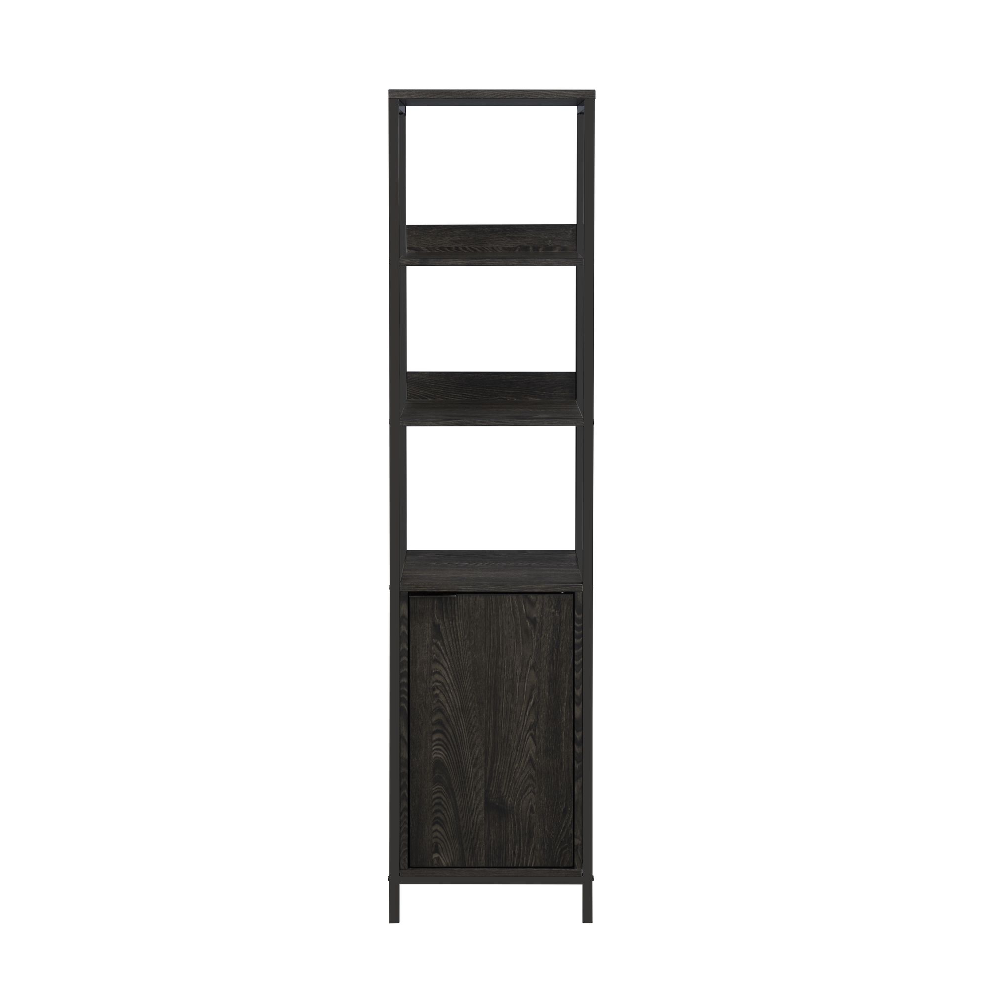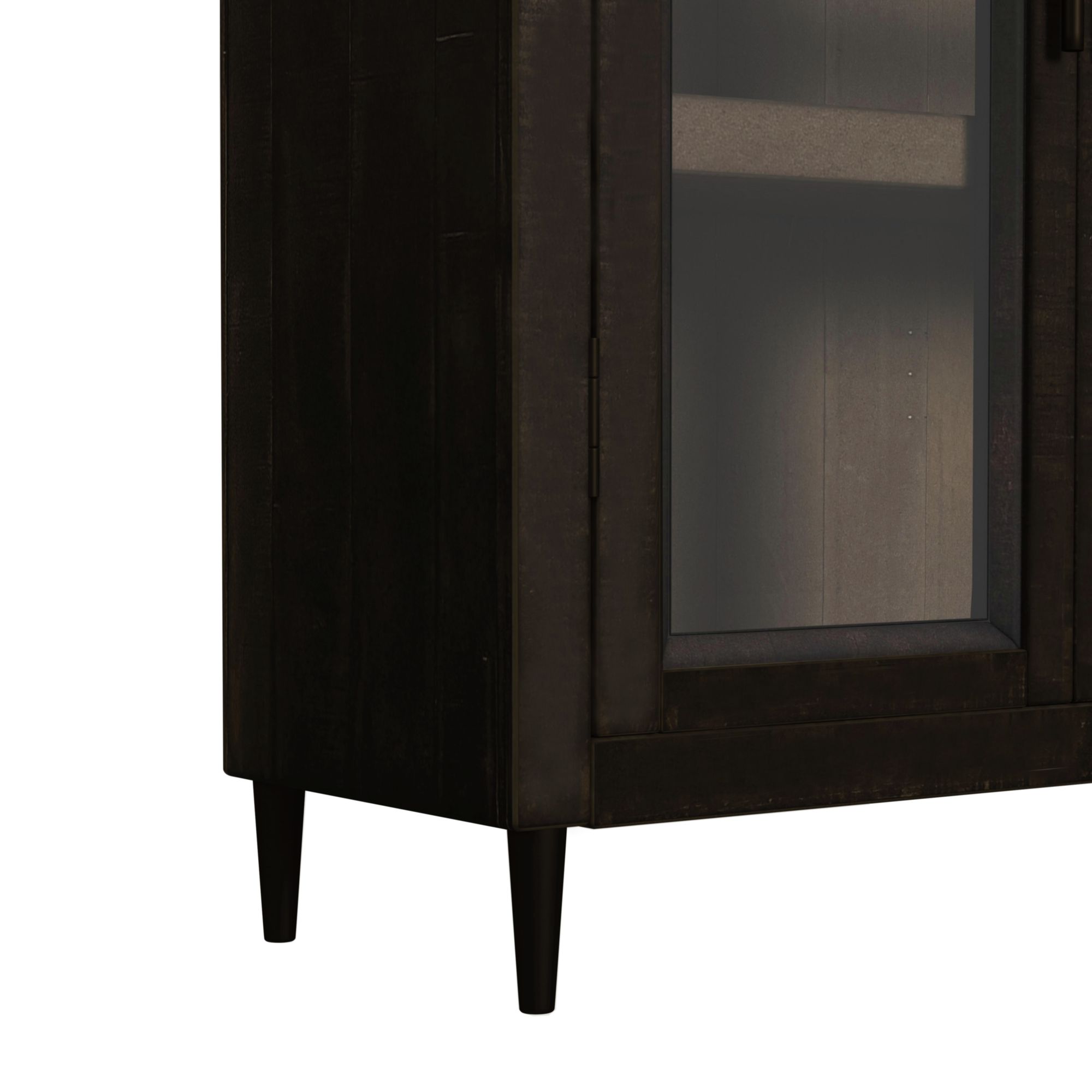The Santiago Bookcase combines modern design with timeless functionality, offering a stylish and practical storage solution for your books and decorative trinkets. This piece features doors with sturdy tempered glass that protects your belongings while effortlessly adding a sleek touch to the design. Adjustable shelving allows you to customize the layout to accommodate staging various items and regularly updating your display. The espresso iron base provides stability and durability, while the rich, distressed dark finish creates an inviting essence. For an organized and elegant addition to your space, choose the Santiago Bookcase. 1 Year Limited Manufacturer Warranty