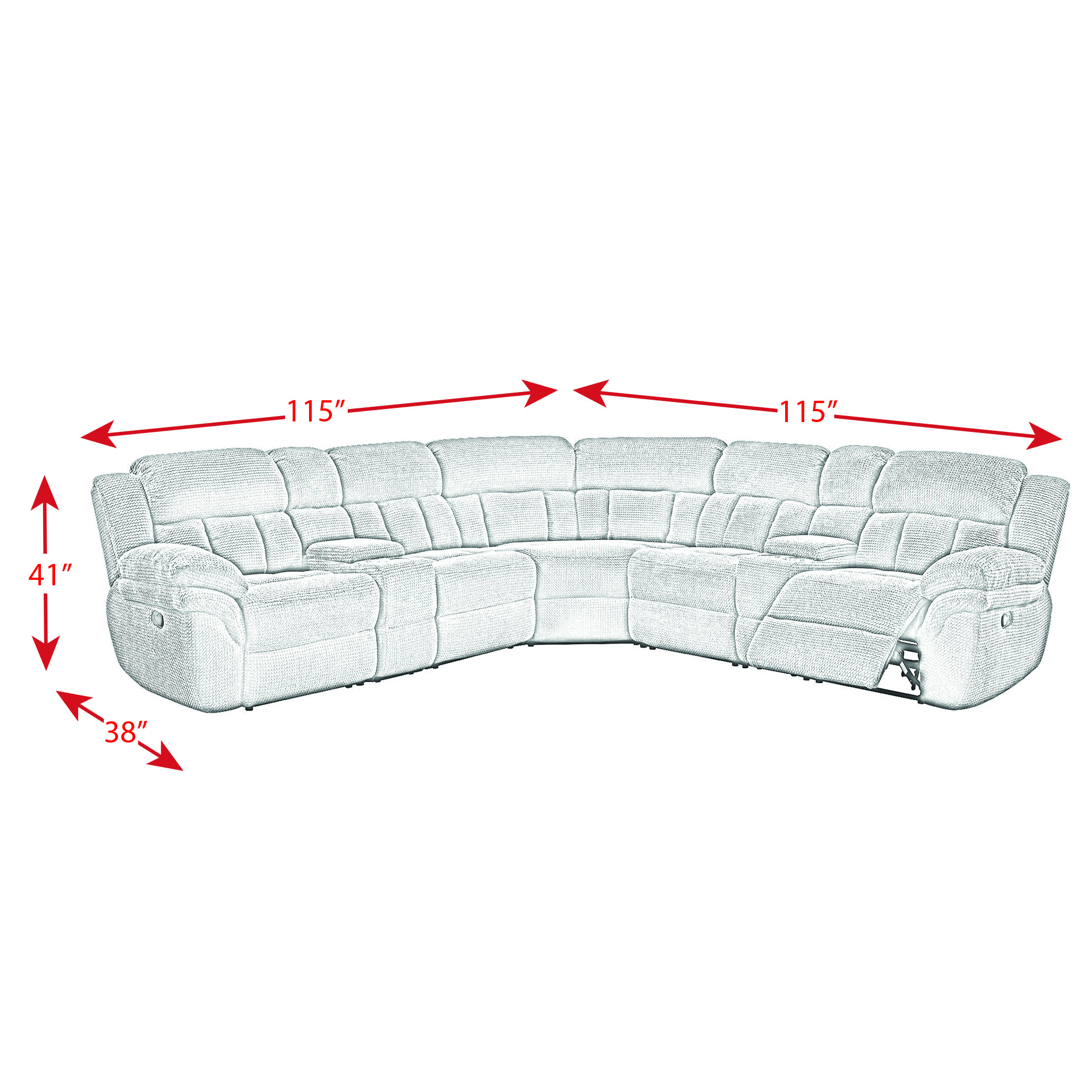 The Santorini 7PC Reclining Sectional will have you drifting into dreamland in no time! This sectional offers plenty of room for everyone to curl up and get cozy for a night in. This sectional features two consoles, each offers two cup holders. Perfect for making sure your drinks dont spill and to easily store away remotes. One of the best things about this sectional is the amazingly super soft fabric. Think plush blanket meets faux sherpa, thats how soft this fabric is. Kick your feet up with the reclining chairs on the end and for ultimate relaxation, go ahead and push back and recline the full 64″”. 1 Year Limited Manufacturer Warranty