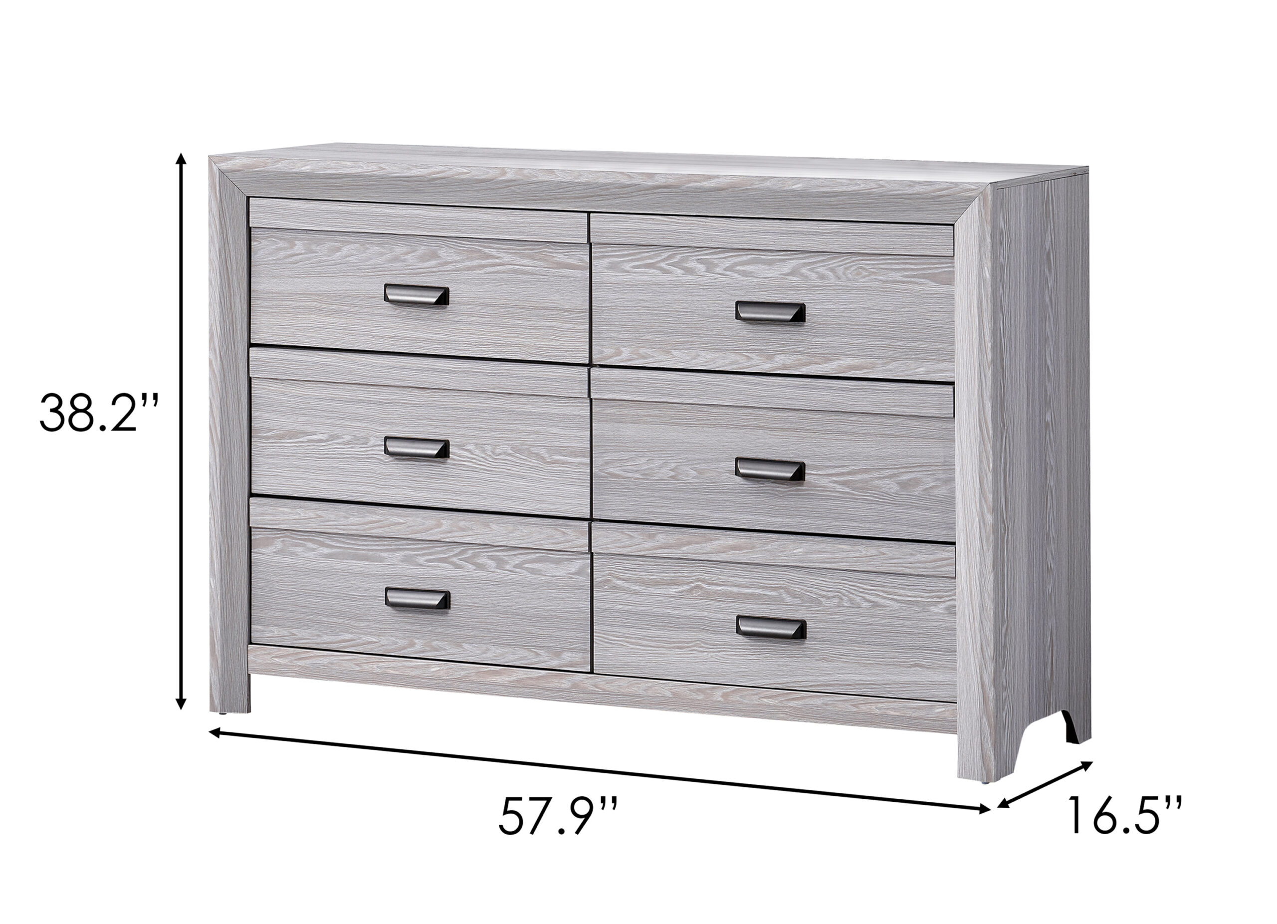 This exquisite bedroom collection epitomizes timeless elegance, with its classic silhouettes and refined antique finish. The bed, distinguished by its beautifully paneled headboard, anchors the space with its traditional charm. An integrated footboard bench provides a comfortable spot for getting ready for the day. The accompanying pieces, including a stately dresser and mirror set, tall chest, and nightstand, feature detailed molding and vintage-inspired metal hardware, offering a luxurious feel to the room. The gentle light gray palette is soothing to the eye, making the collection a perfect choice for creating a serene and sophisticated bedroom oasis.