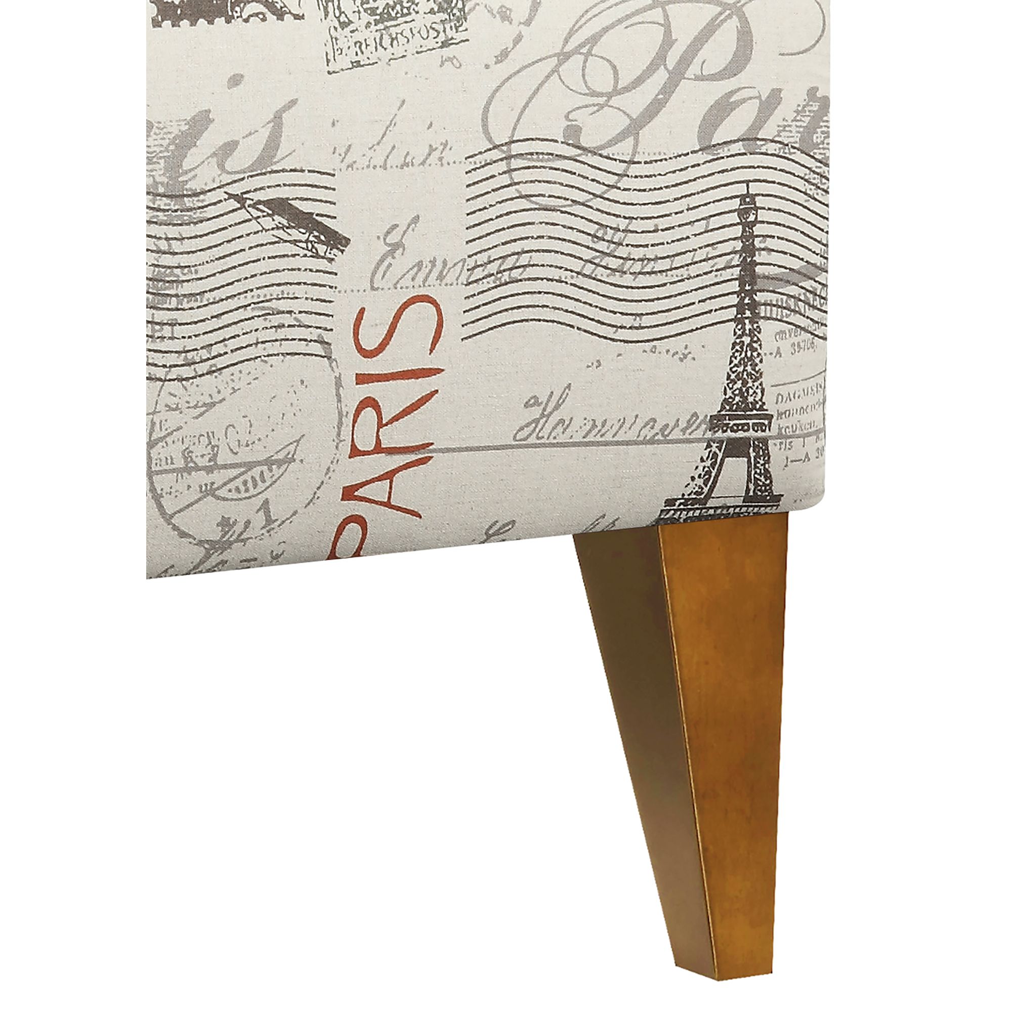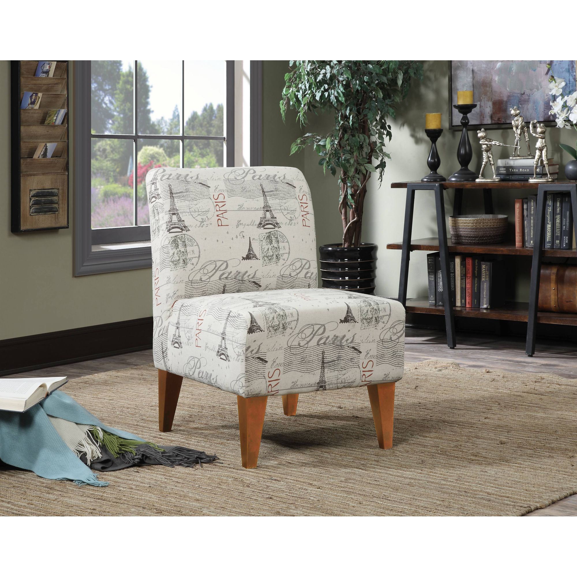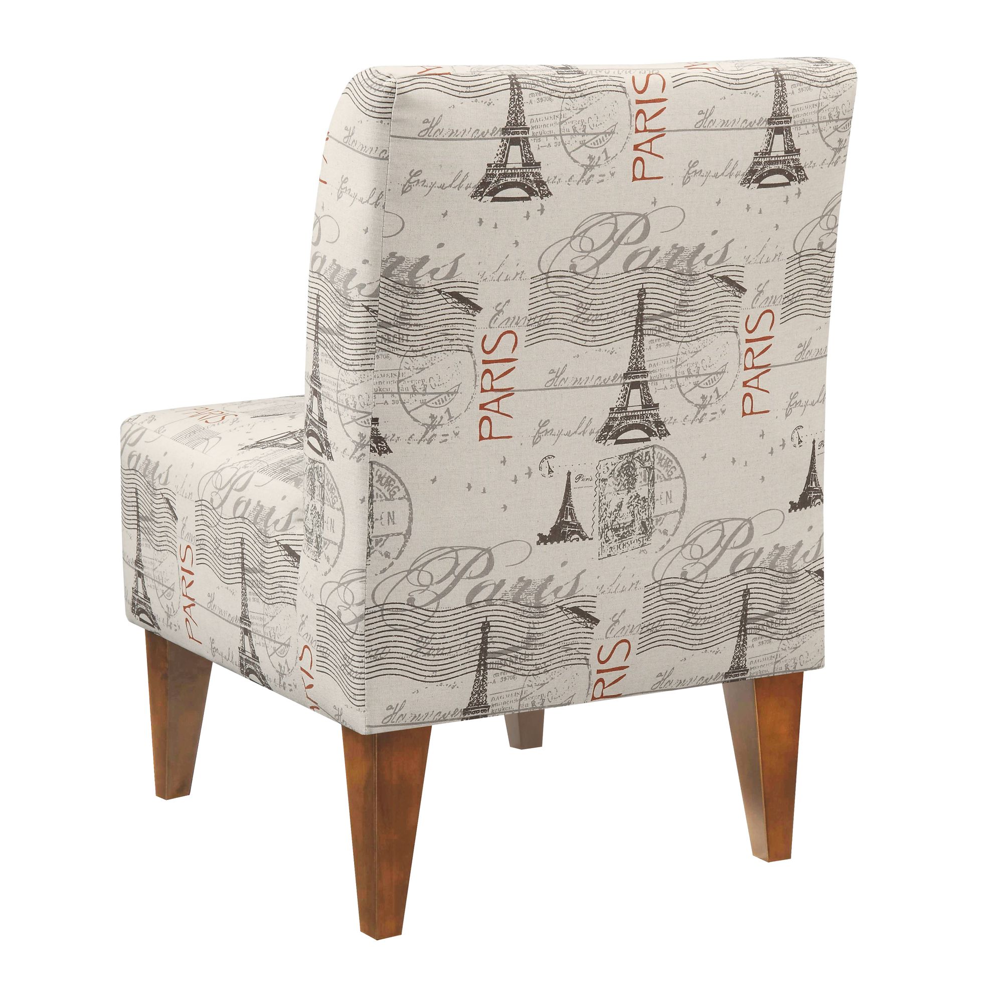 The Scarlett Accent Slipper Chair is a charming piece covered with a stylish French script fabric upholstery. Its chic armless design sits low to the ground, making it the perfect complement to a dressing room or vanity space. Tapered squared feet complete this fashion forward piece. 1 Year Limited Manufacturer Warranty