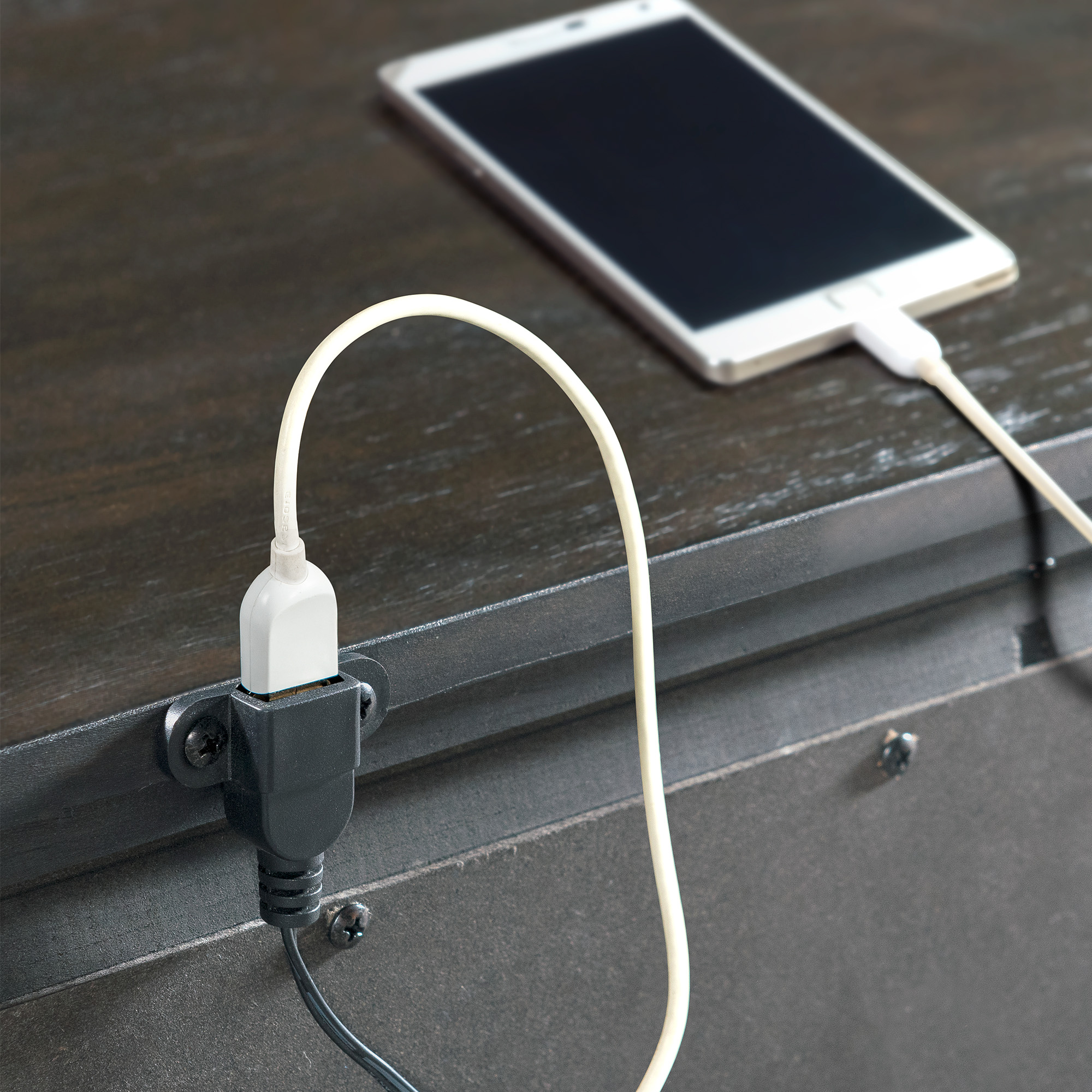 The Shelby 2-Drawer Nightstand is the perfect addition to your bedroom! This nightstand comes with two, spacious drawers; perfect for storing away all of your bed side needs. Keep your devices charged while you sleep thanks to the two USB ports located in the back of the nightstand. The top drawer is felt-lined to help protect your more valuable items. The bottom drawer features a dust proofing layer to help extend the life of your clothes. Rich, wire brush walnut finish makes it easy to pair with existing decor. Dark metal drawer pulls and straight feet complete the look of this stylish, transitional chest, that is sure to be a staple in your home for years to come. 1 Year Limited Manufacturer Warranty