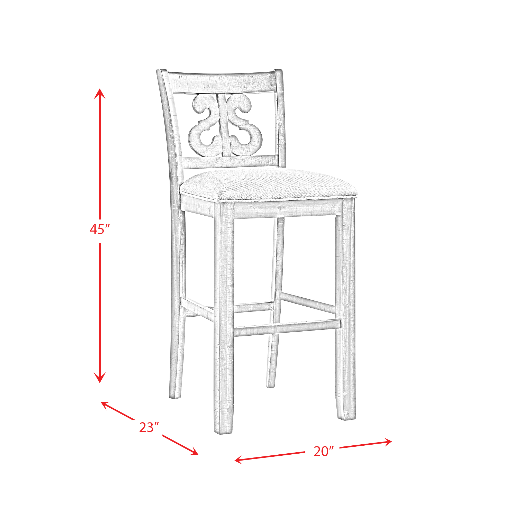 The Stone 30″” Swirl Back Bar Stool Set is the perfect addition to your Stone Dining Collection! This set comes with two bar stools. The backs feature a swirl back design adds extra flair to this already stylish set. The foam cushion seat will keep you comfy for hours. Distressed markings are present throughout that complements the smokey walnut finish. Expand your Stone Dining Collection with these bar stools! 1 Year Limited Manufacturer Warranty
