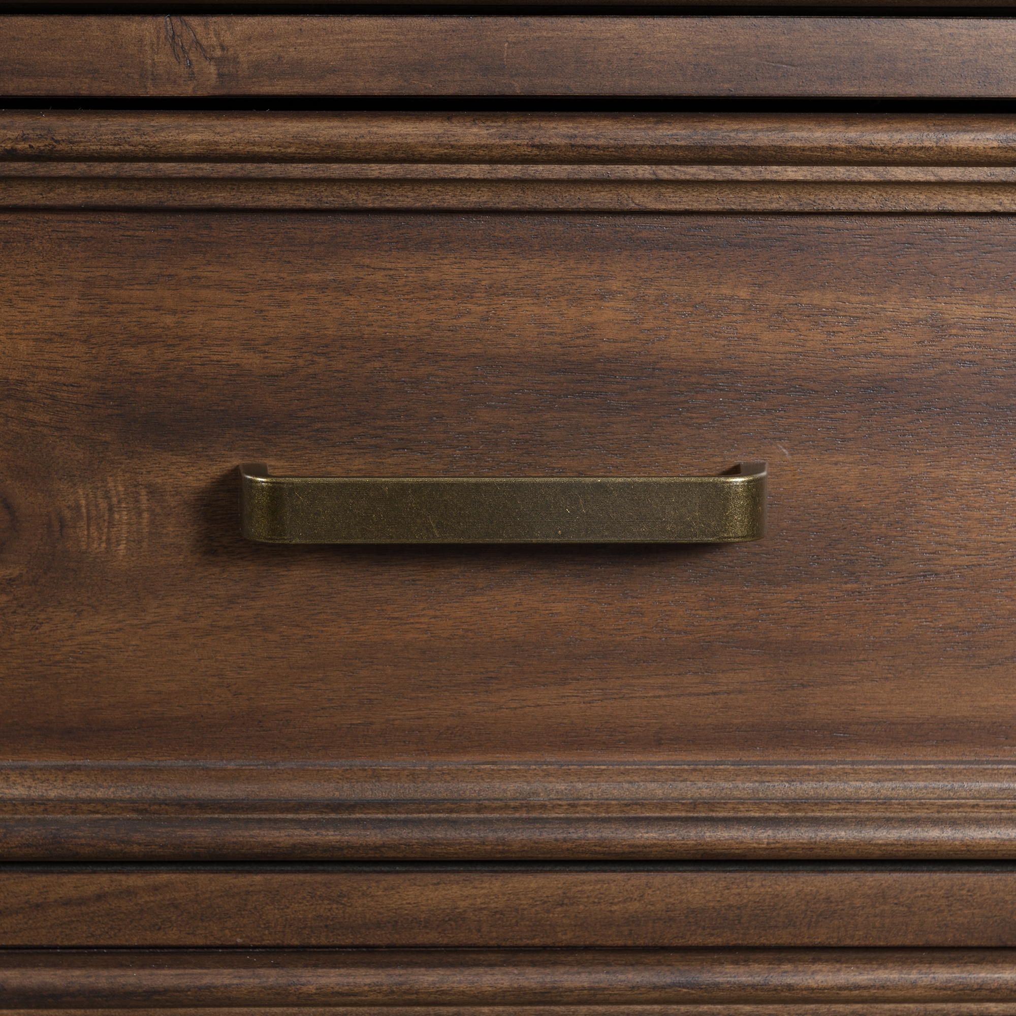 The Sullivan Queen 6-Drawer Platform Storage Bed is more than a pretty piece, its also super functional! This platform storage bed offers two drawers in the front, as well as two drawers on each side rail, making it easy to find a home for extra linens and blankets. The traditional, warm chestnut finish pairs beautifully with the bronze drawer pulls. Add this stylish, yet functional platform storage bed to your home today! 1 Year Limited Manufacturer Warranty
