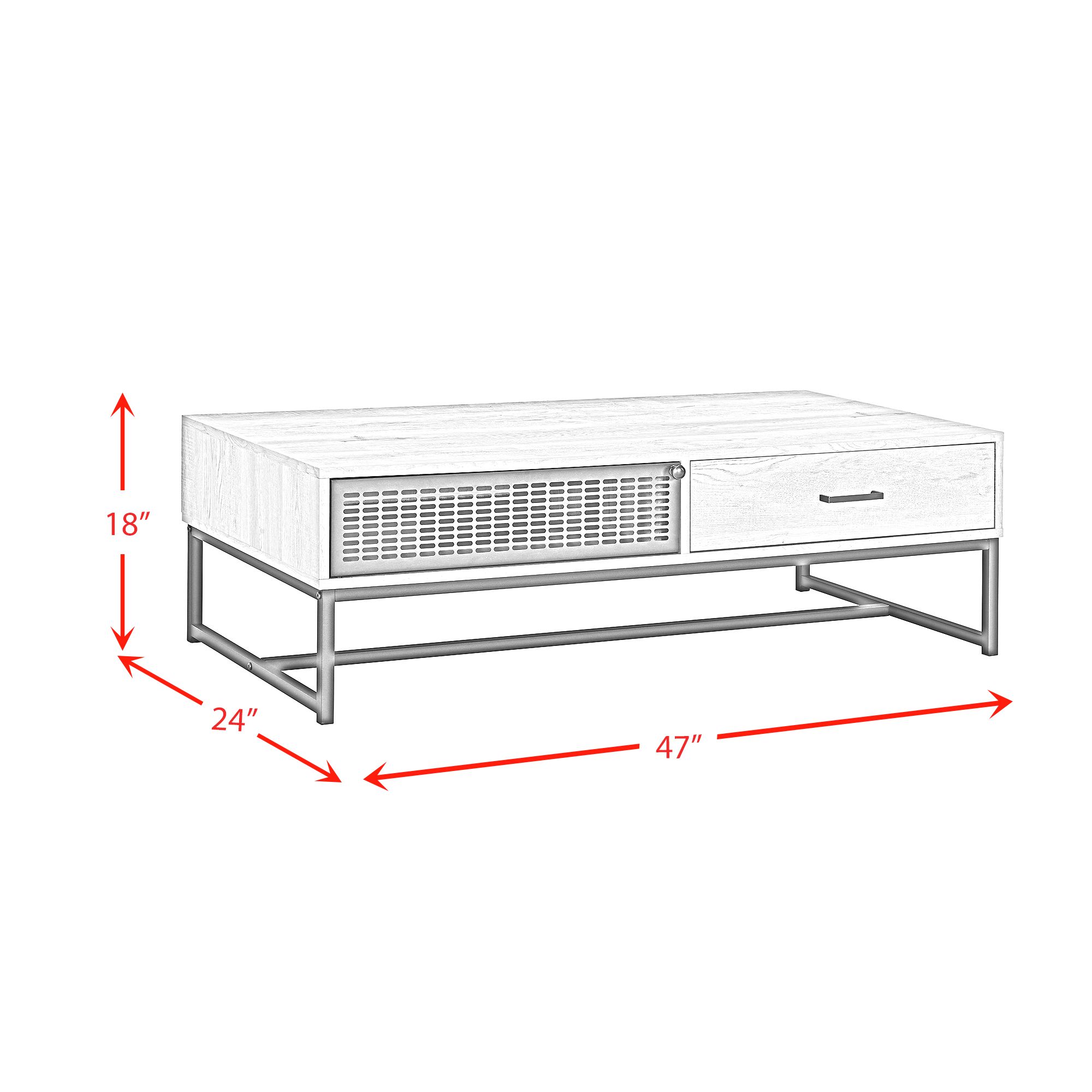 Introducing the Tatiana Coffee Table, a stylish and versatile addition to any contemporary living space. This table features elegant metal accents that add a touch of sophistication to the overall design. With ample storage space, it offers convenient organization for books, magazines, or other small items. The sturdy metal legs provide durability and stability, ensuring long-lasting use. Whether placed in a living room or study, the Tatiana Coffee Table is perfect for adding both functionality and aesthetic appeal to your home. 1 Year Limited Manufacturer Warranty