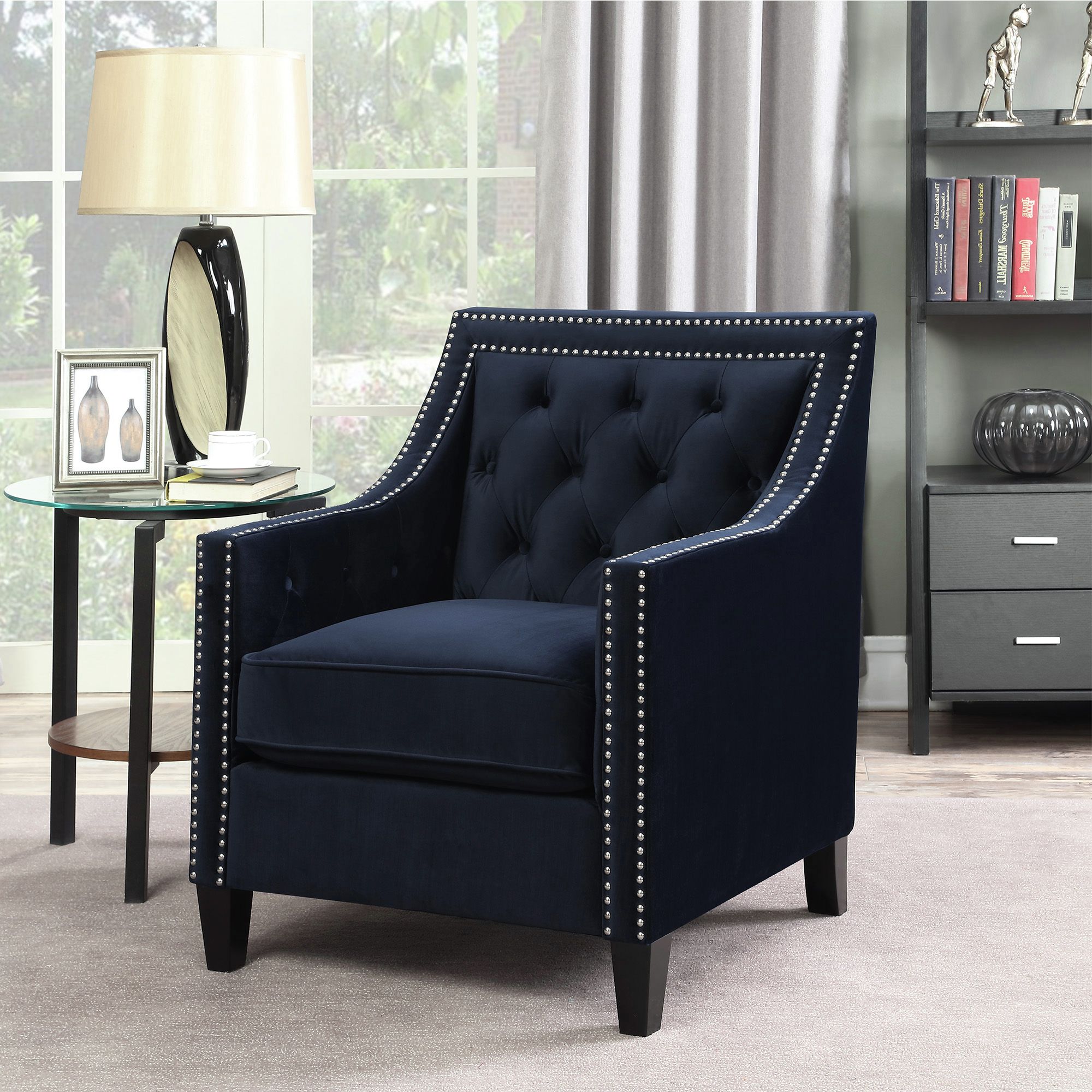 If you are looking for a piece that will add instant traditional glam to your living area, bedroom, or office space, you’ve come to the right accent chair. Slim track arms are adorned with a shiny, nail-head trim that runs up and across the backrest—while part of the interior is carefully upholstered with button tufting featuring a diamond-shaped stitching that will prevent any fabric from shifting. An overall accomplished look for your home and a chair that will always be a pleasure to sit in. 1 Year Limited Manufacturer Warranty