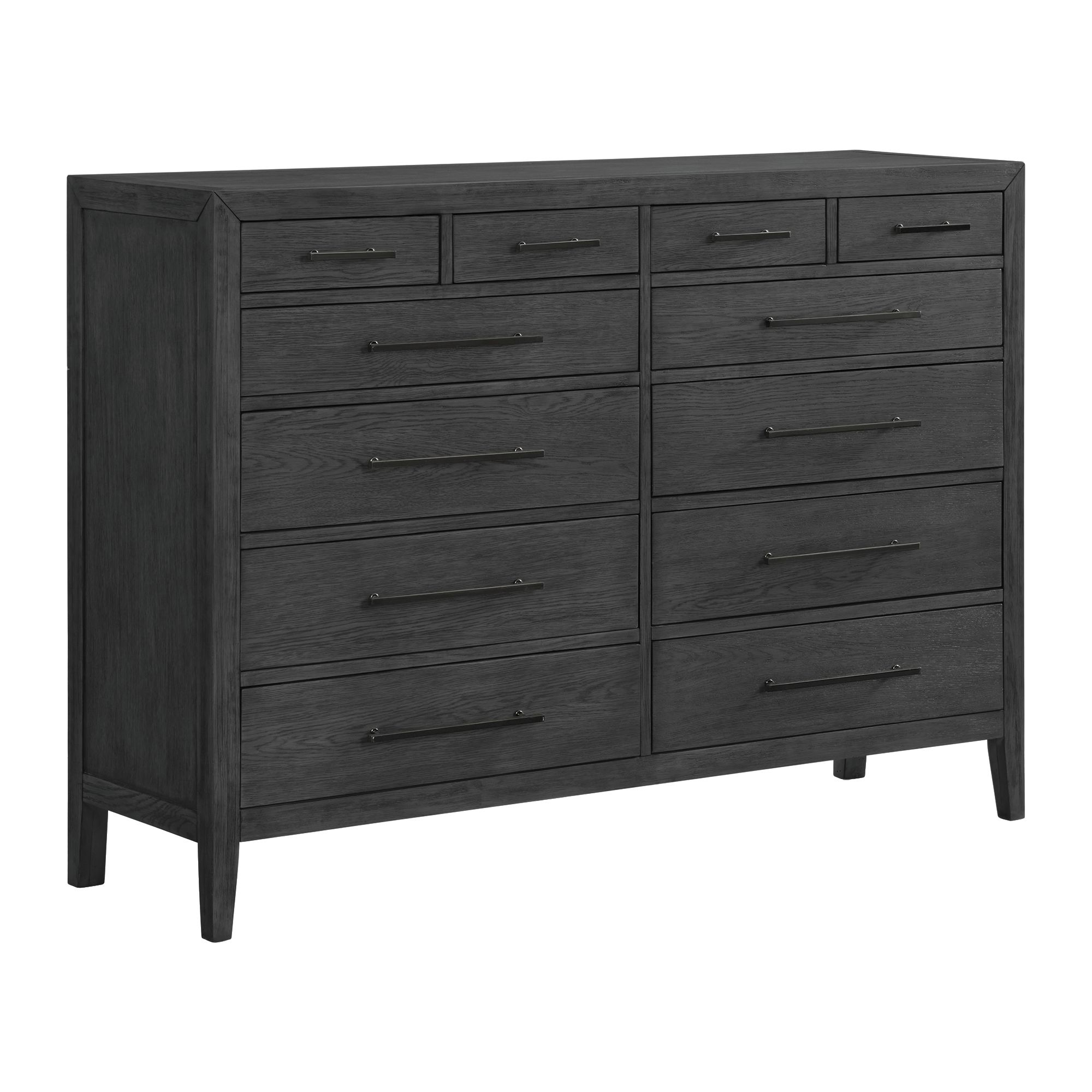 The Versailles Contemporary 12-Drawer Dresser is the epitome of modern elegance. It showcases an oak veneer in a black finish with black metal handles. You will have plenty of room to keep your things organized and out of sight with the added functionality of this tall 12-drawer dresser. The top drawers are lined with grey felt to protect your precious belongings, while the dust-proofing bottom layer ensures everything stays clean and pristine. Upgrade your space with this Versailles Contemporary dresser and enjoy both style and functionality in one beautiful package. 1 Year Limited Manufacturer Warranty