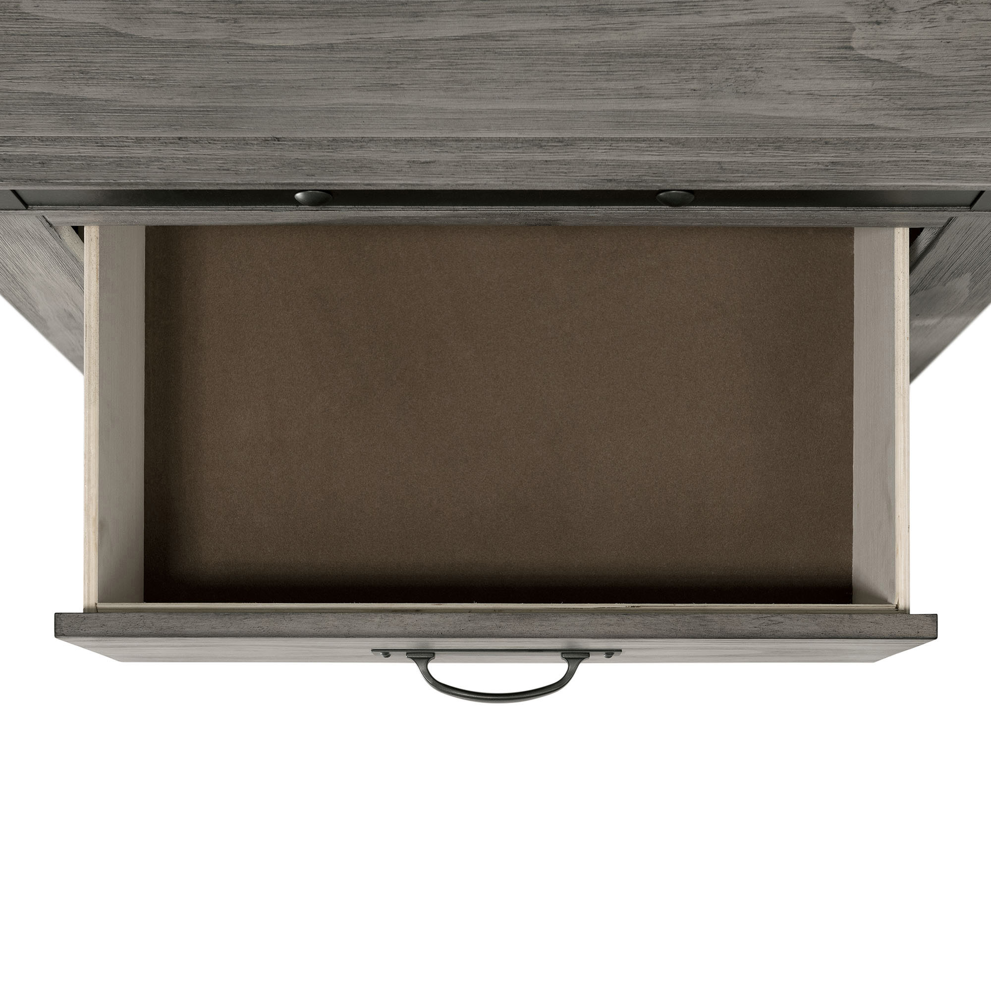 The Wade 5-Drawer Chest is the ultimate chest for your home! This chest comes with five, spacious drawers; perfect for easily keeping all of your belongings neatly stored away. The bottom drawer features a dust proofing layer to help protect your belongings. The drawer pulls and trim along the top of the chest are both metal with a black finish. Along the trim on the chest are decorative bolts, adding a little extra flair. This chest is finished in a neutral gray, making it easy to pair with any existing decor or to find an excuse to completely redo your bedroom. Please note wood grains vary piece by piece and will not look exactly like the picture. 1 Year Limited Manufacturer Warranty