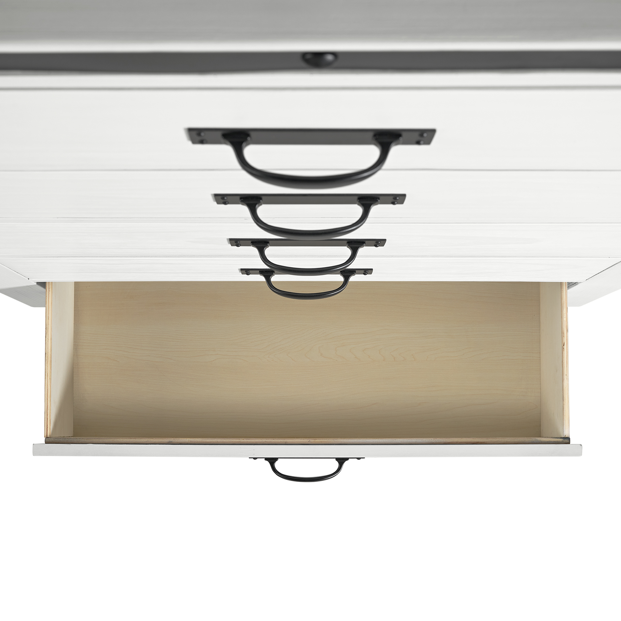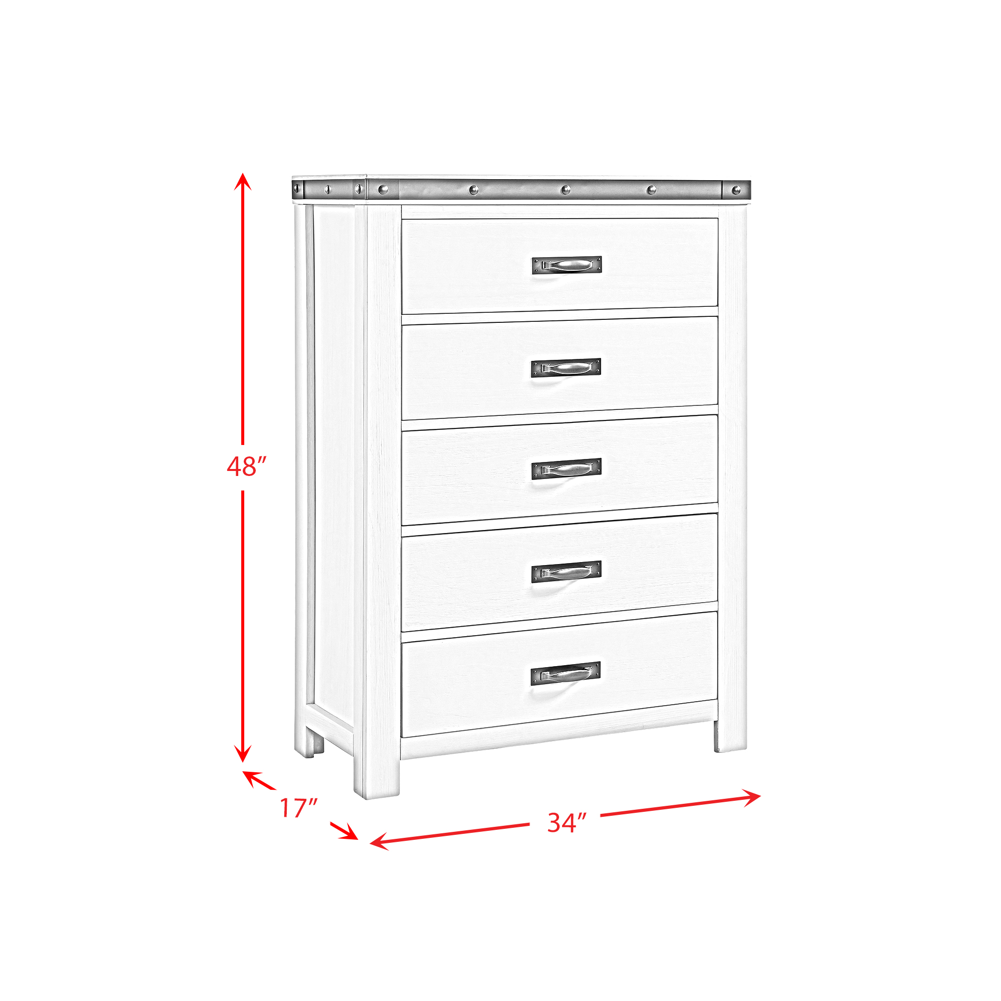The Wade Youth Full 3PC Bedroom Set in White blends modern style with smart functionality. Its crisp white finish, paired with sleek black accents and black rivet detailing on the metal trim, offers a contemporary, industrial look. Each case piece features spacious drawers with ball bearing glides, while the bed’s center metal glide ensures smooth drawer operation. The top drawers on the case pieces are lined with black felt to protect delicate items, and a dust-proofing layer on the bottom drawer keeps everything clean. The bed’s bookcase headboard adds convenient storage, making this set perfect for smaller bedrooms. 1 Year Limited Manufacturer Warranty